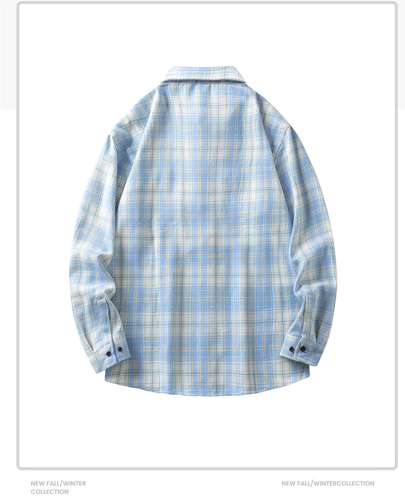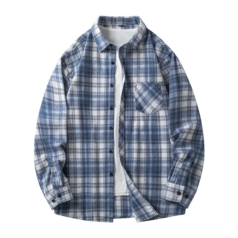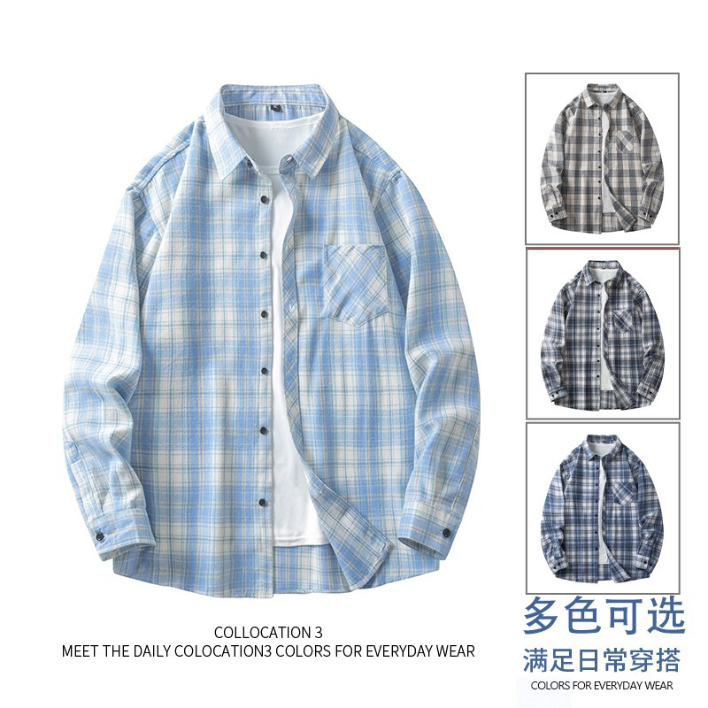 격자무늬 라운드넥 셔츠 긴팔 봄가을 남성용 2025 신상 빈티지 남성 이너웨어 셔츠 반팔스토어 가기