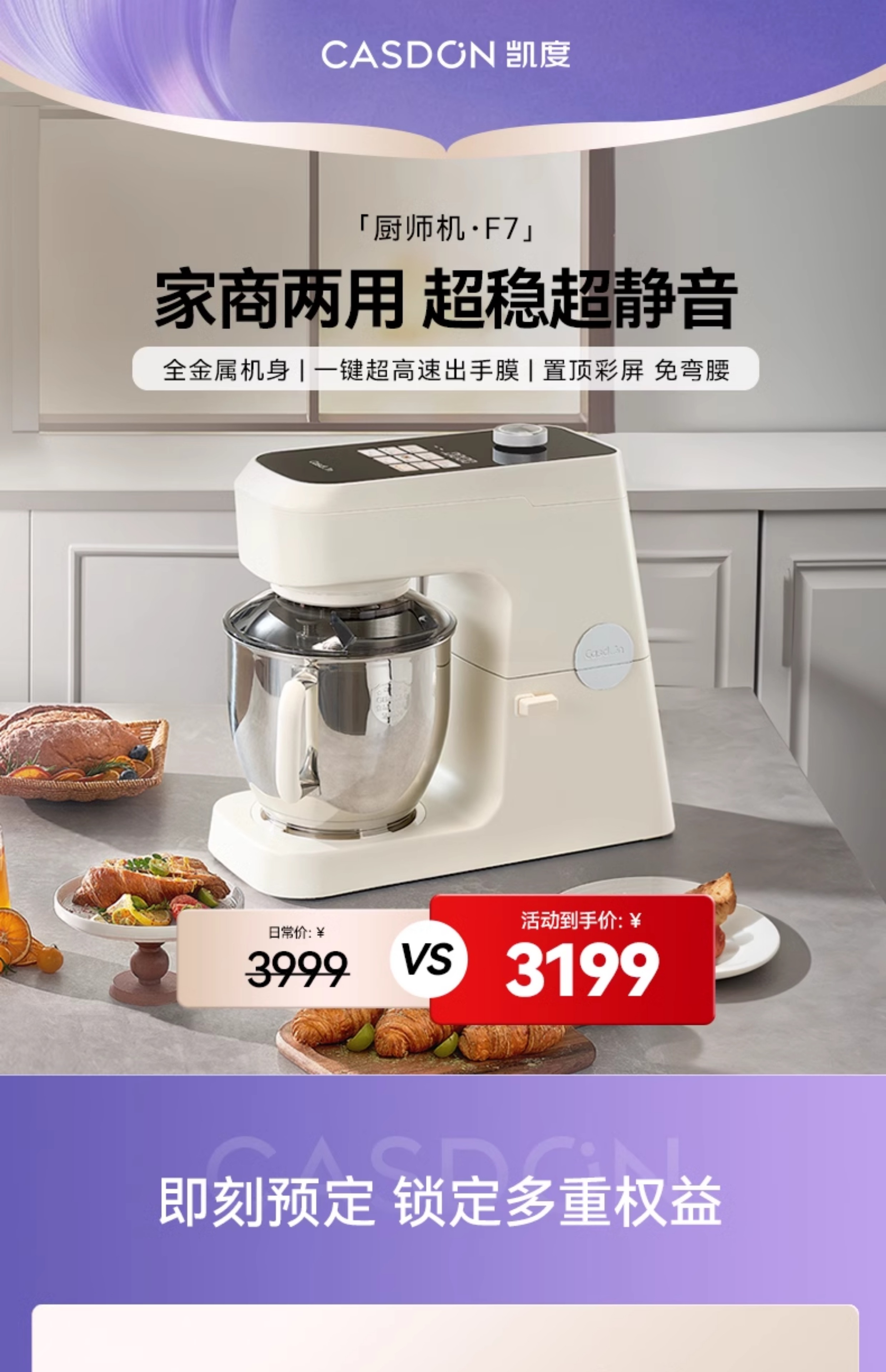 [15% 보조금] Kadi Chef Machine 컬러 스크린 상업용 가정용 완전 자동 반죽 및 무소음 및 직물 관리 기계 F7