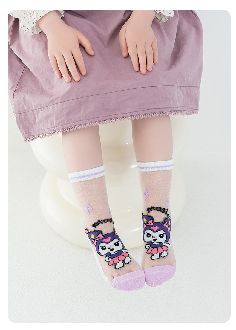 Kuromi 소녀 양말 여름 유리 실크 어린이 양말 귀여운 달콤한 소녀 중간 튜브 양말 얇은 통기성 아기 양말