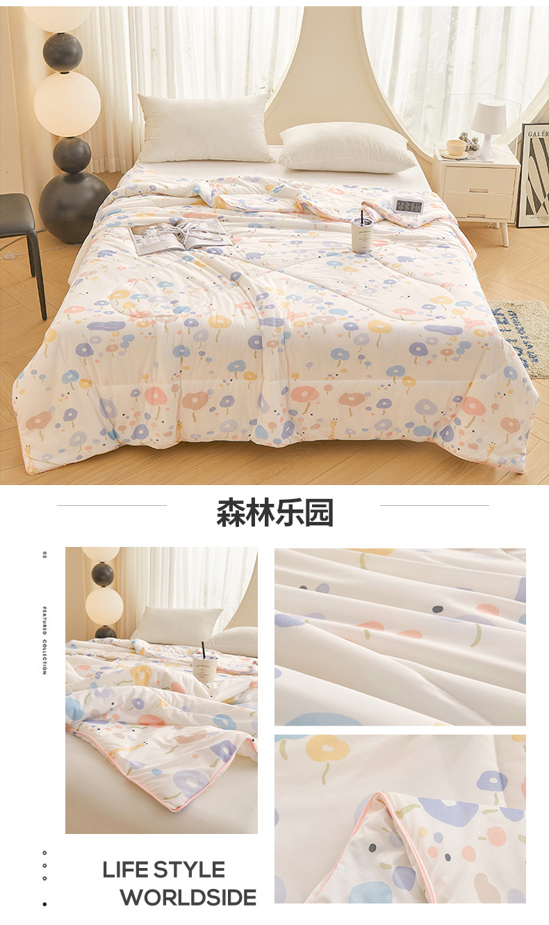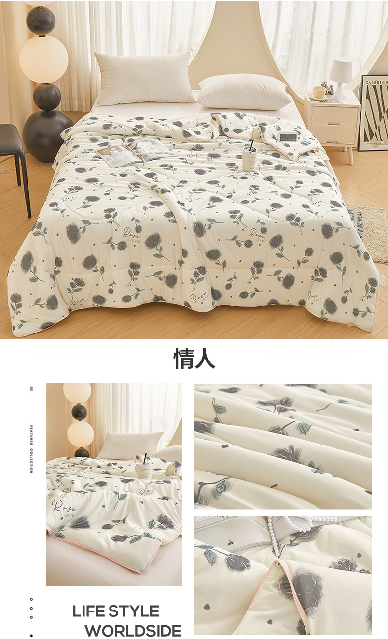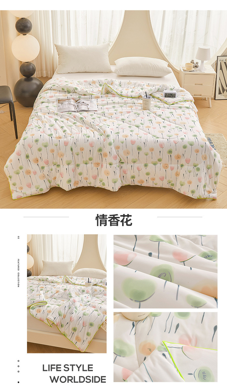 • 시원한 실크 프린트 여름 이불 행복이 가득