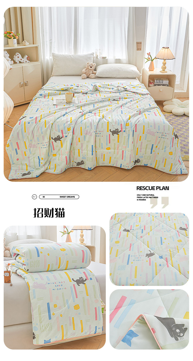 • 시원한 실크 프린트 여름 퀼트 행운의 고양이