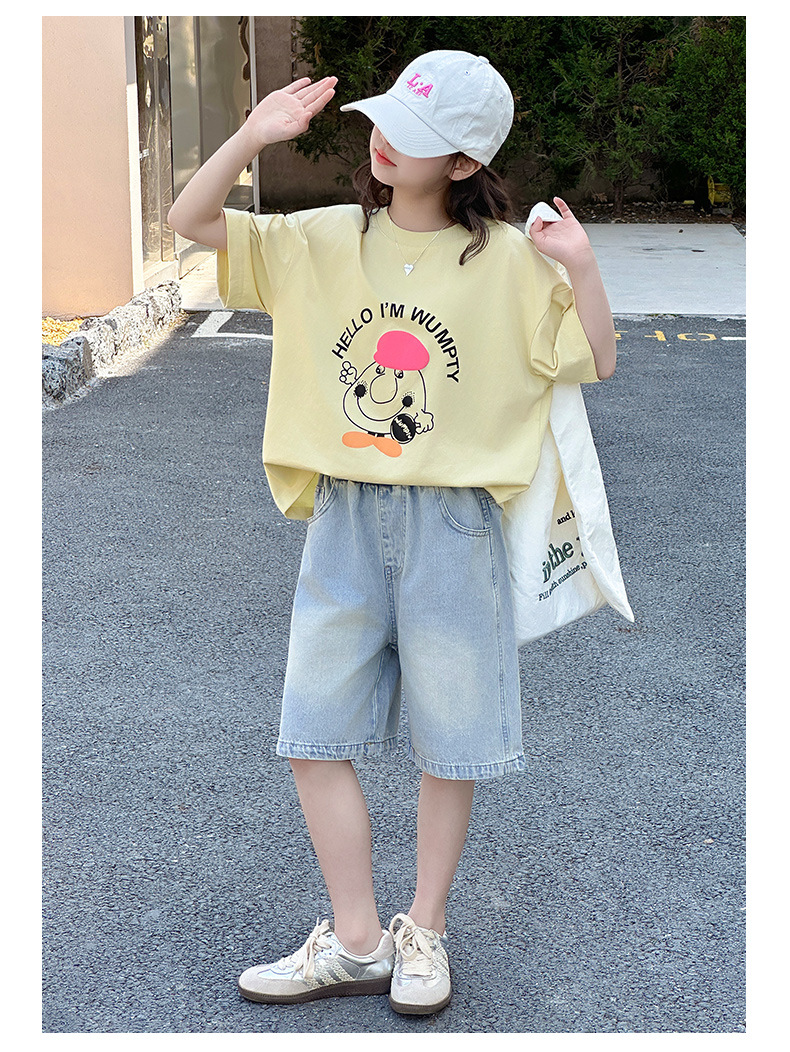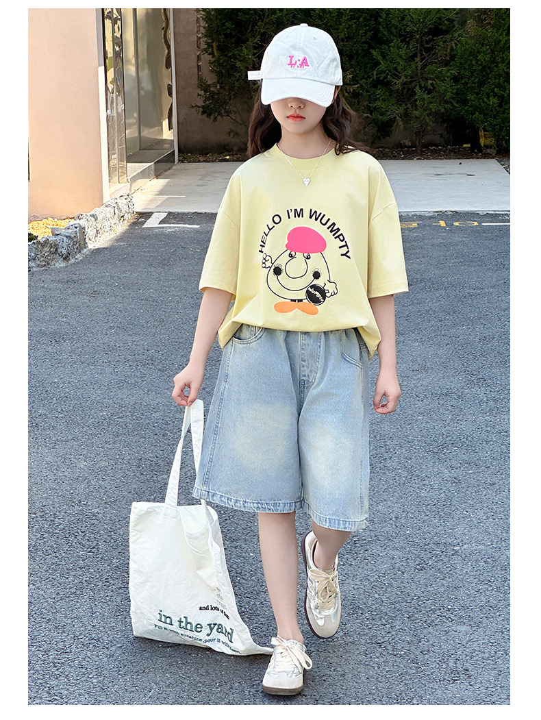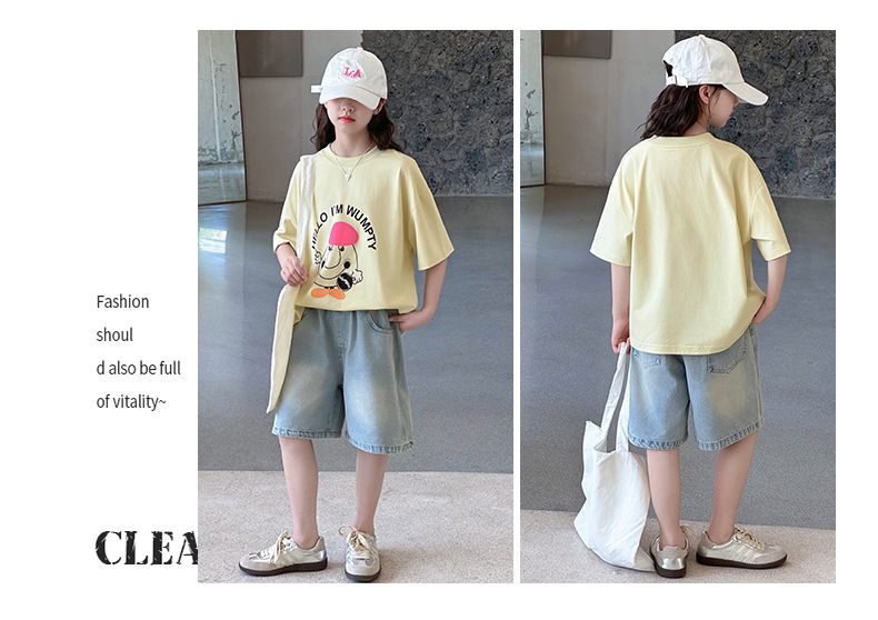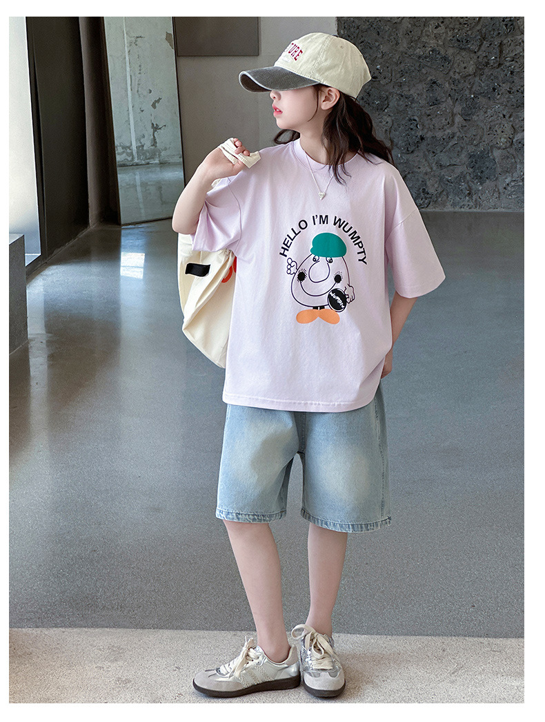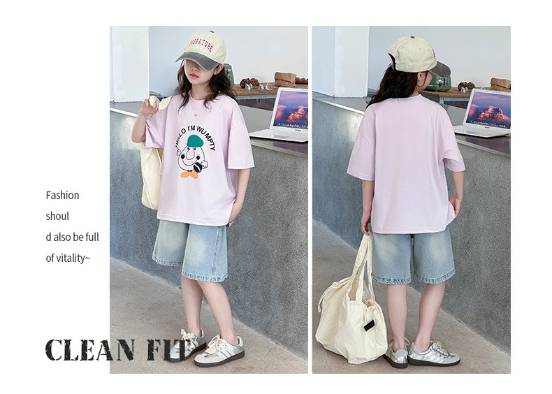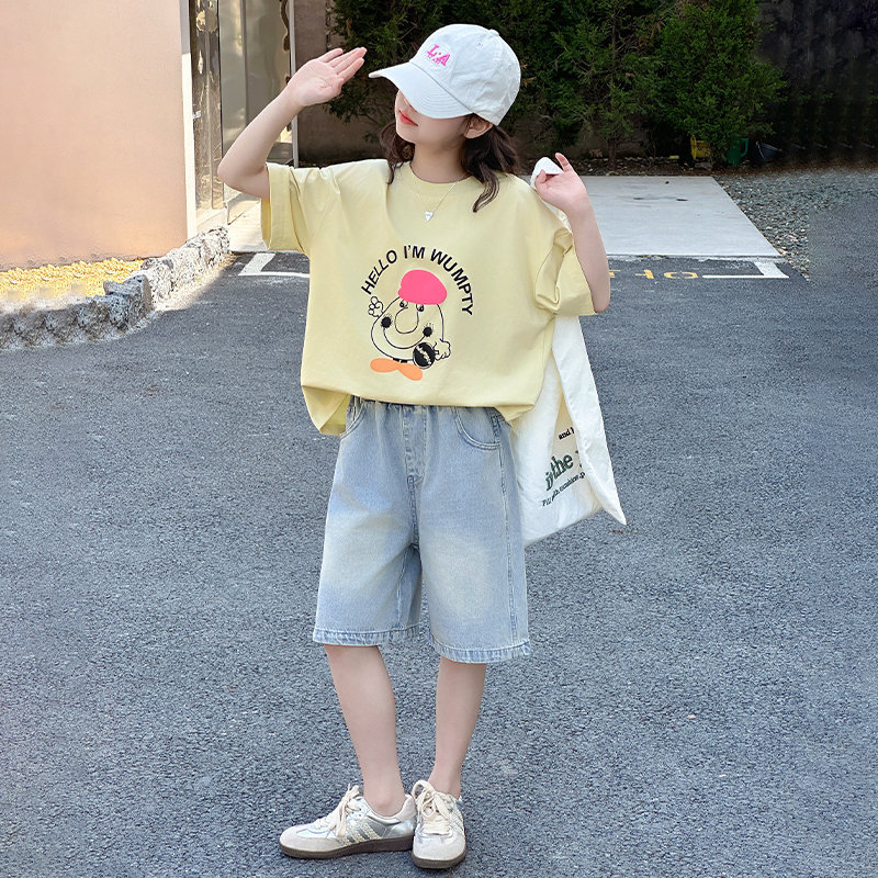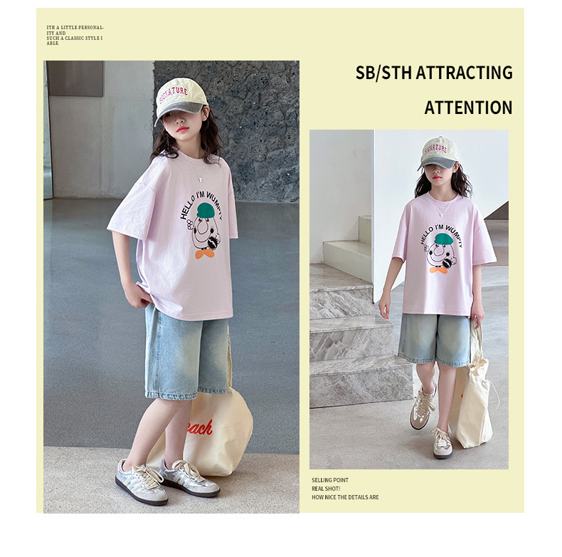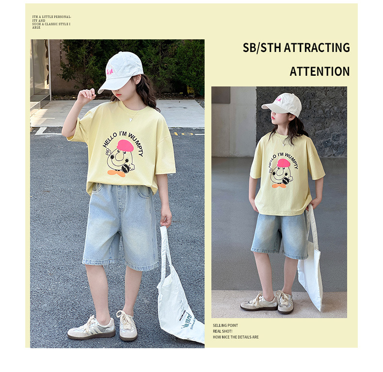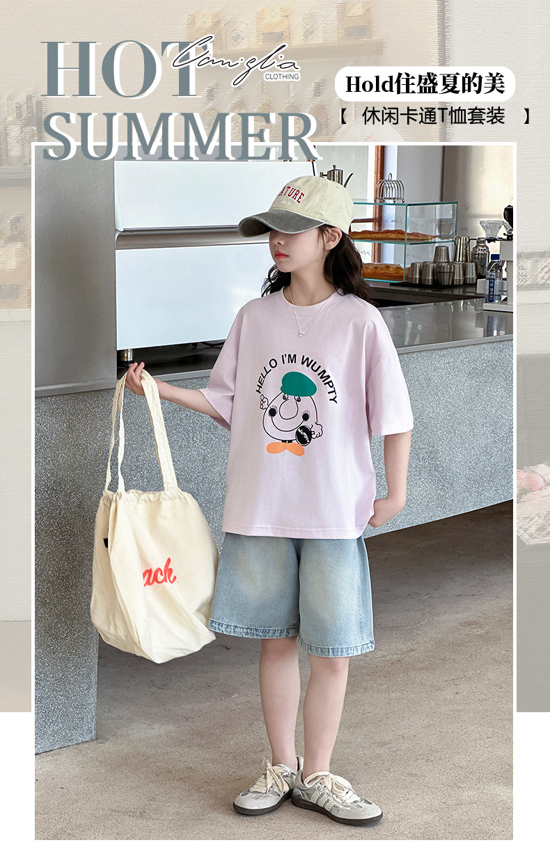 여자 여름 반팔 티셔츠 바지 투피스 세트 2025 새로운 여성 빅 아동복 서양식 레저 스포츠 세트 트렌디스토어 가기