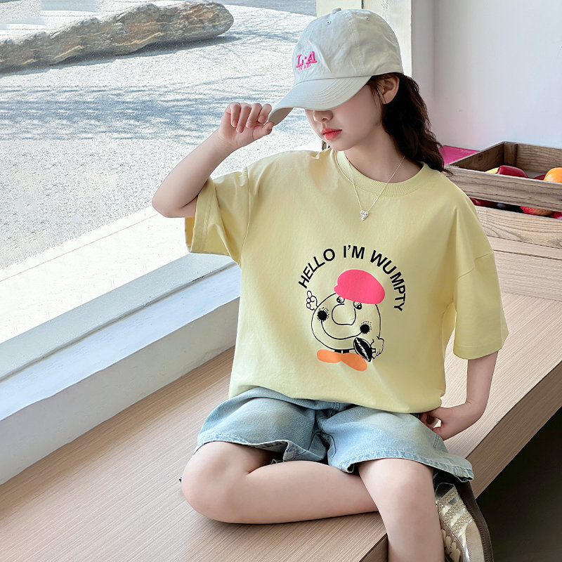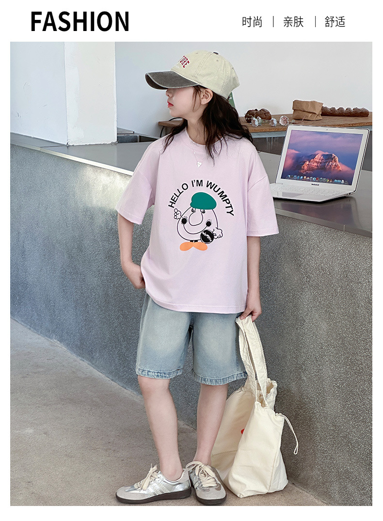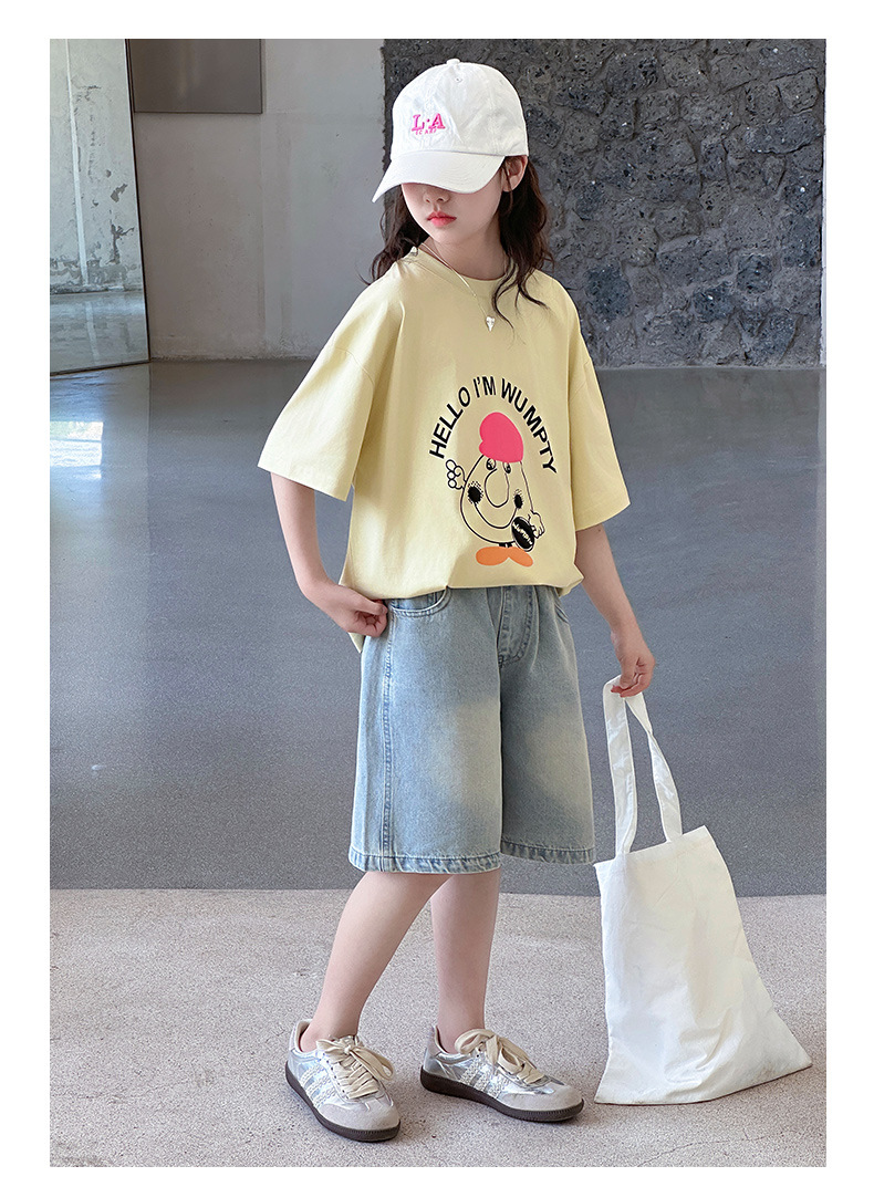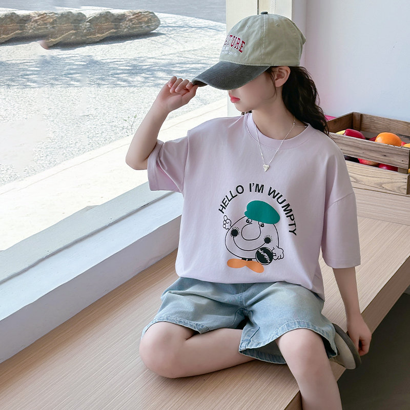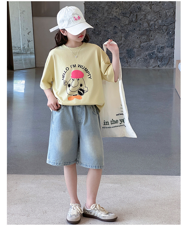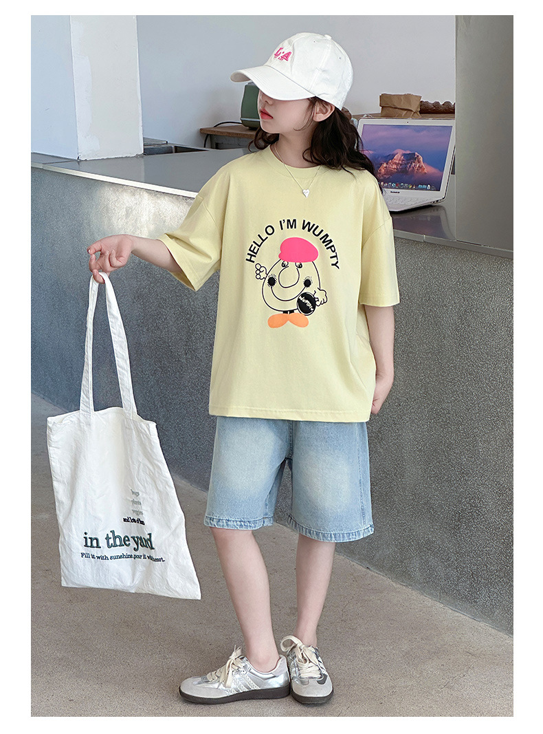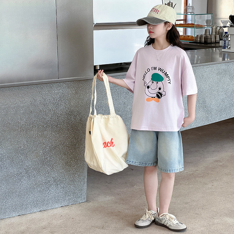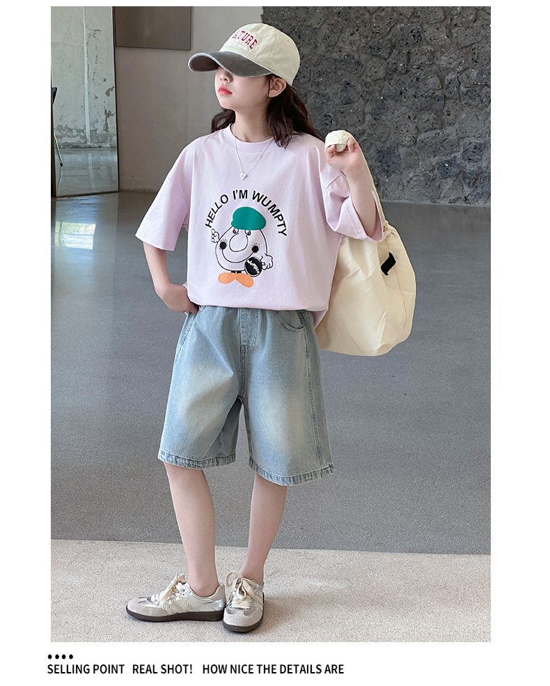 여자 여름 반팔 티셔츠 바지 투피스 세트 2025 새로운 여성 빅 아동복 서양식 레저 스포츠 세트 트렌디스토어 가기
