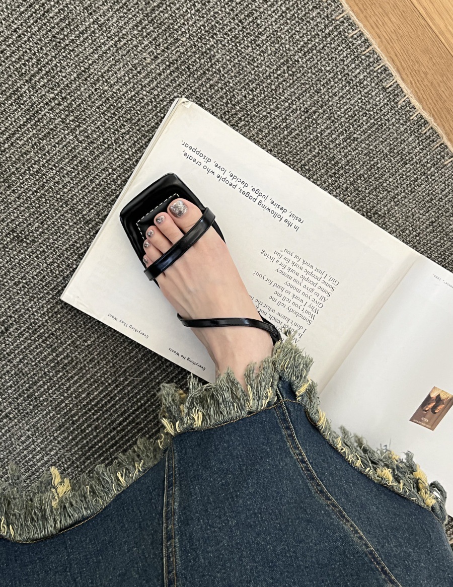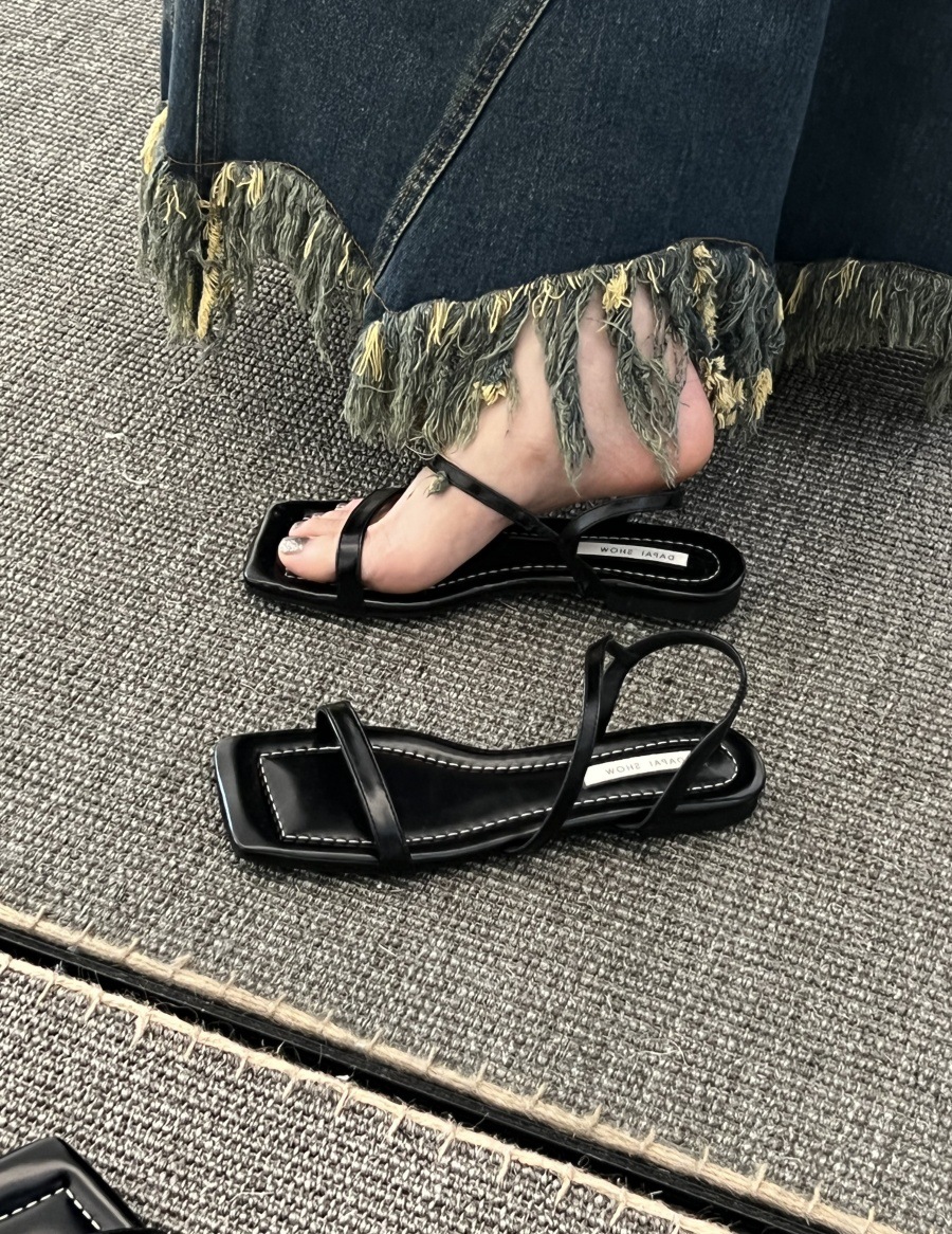 한국판 2025 여름 새 스타일 한 단어 두 착용 평면 로마 샌들 여성 휴가 해변 스타일 샌들 도매스토어 가기