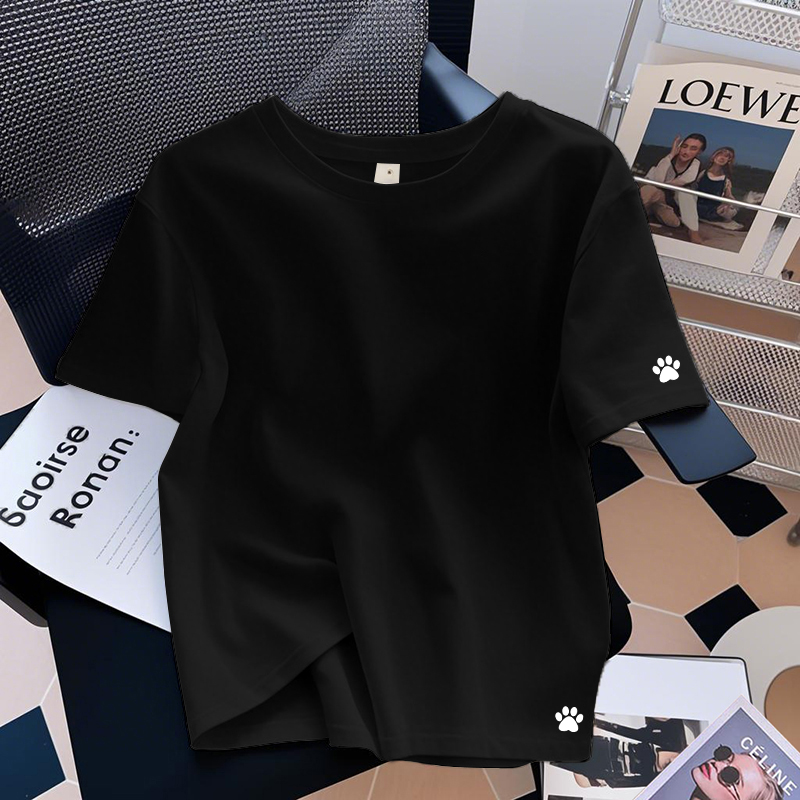 화이트 코튼 디자인 센스 어깨 반팔 티셔츠 여성의 2025 여름 새 우유 살구색 느슨한 간단한 둥근 목 탑스토어 가기