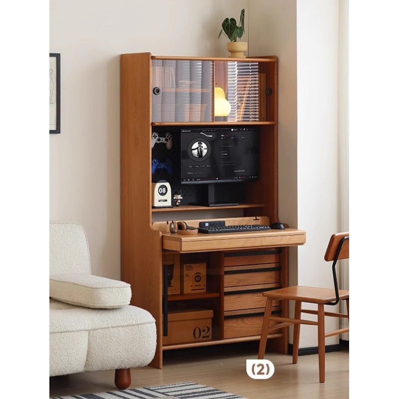 북유럽 솔리드 우드 침실 통합 벽 기울기 간단한 접는 데스크 텔레스코픽 그린 컴퓨터 데스크 책장 책장 집스토어 가기