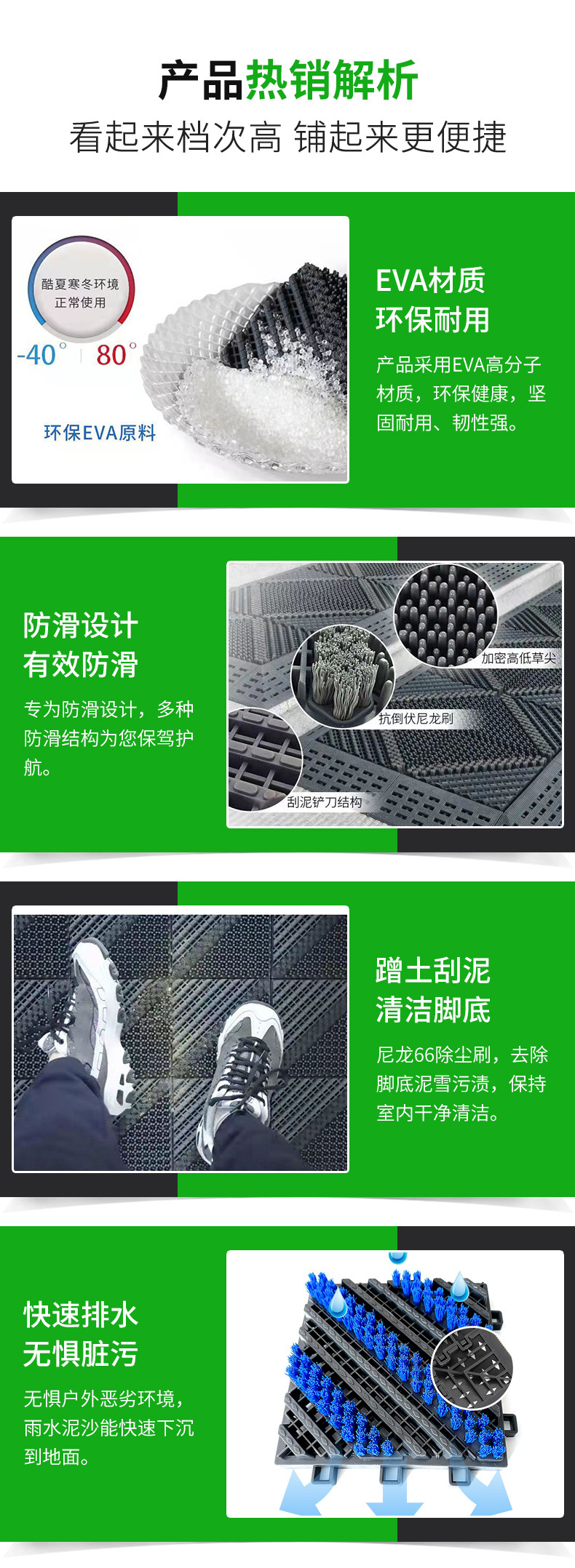 야외 미끄럼 방지 방수 바닥 매트 플라스틱 접합 먼지 제거 바닥 호텔 입구 문 브러시 중공 스타일