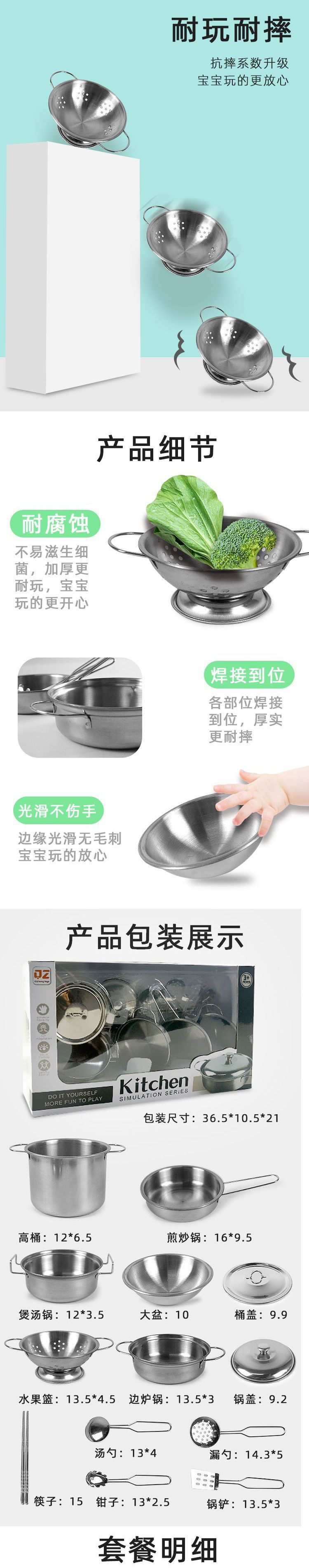 어린이 주방 장난감 세트 소년과 소녀 놀이 집 스테인레스 스틸 요리 아기 요리 주방 용품스토어 가기