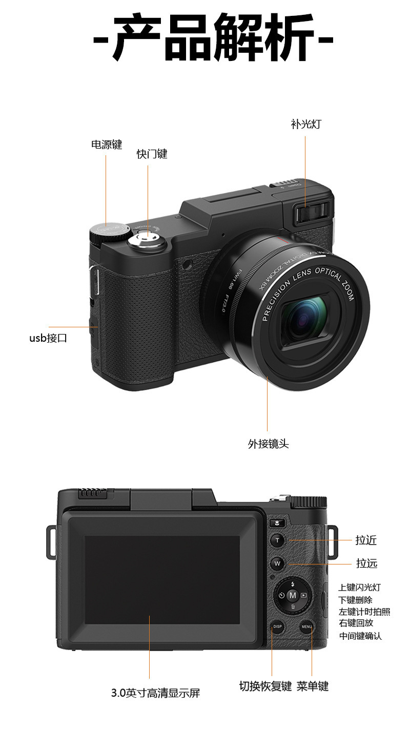 Zhixin Yi Amazon의 인기 있는 미러리스 5배 광학 줌 디지털 카메라 4,800만 화소 고화질 촬영 및 비디오