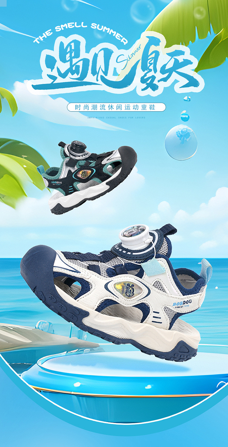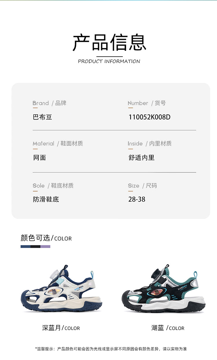 Babu Bean 어린이 신발 소년 Baotou 샌들 여름 새로운 대형 키즈 소년 버튼 스포츠 비치 신발 어린이
