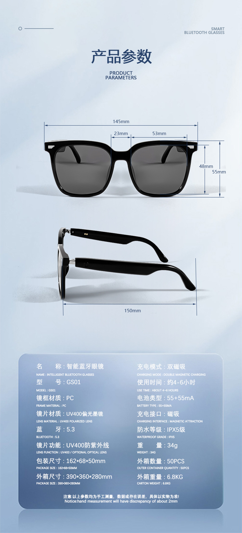 스마트 블루투스 안경 GS01 노래 듣기 안티 UV 편광 렌즈를 운전하는 전화스토어 가기