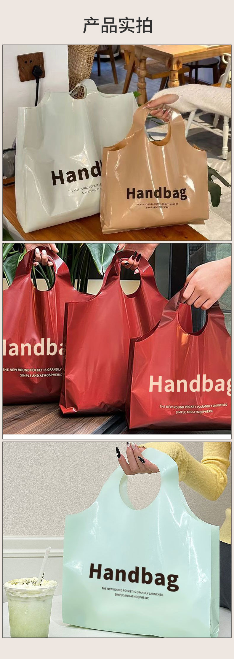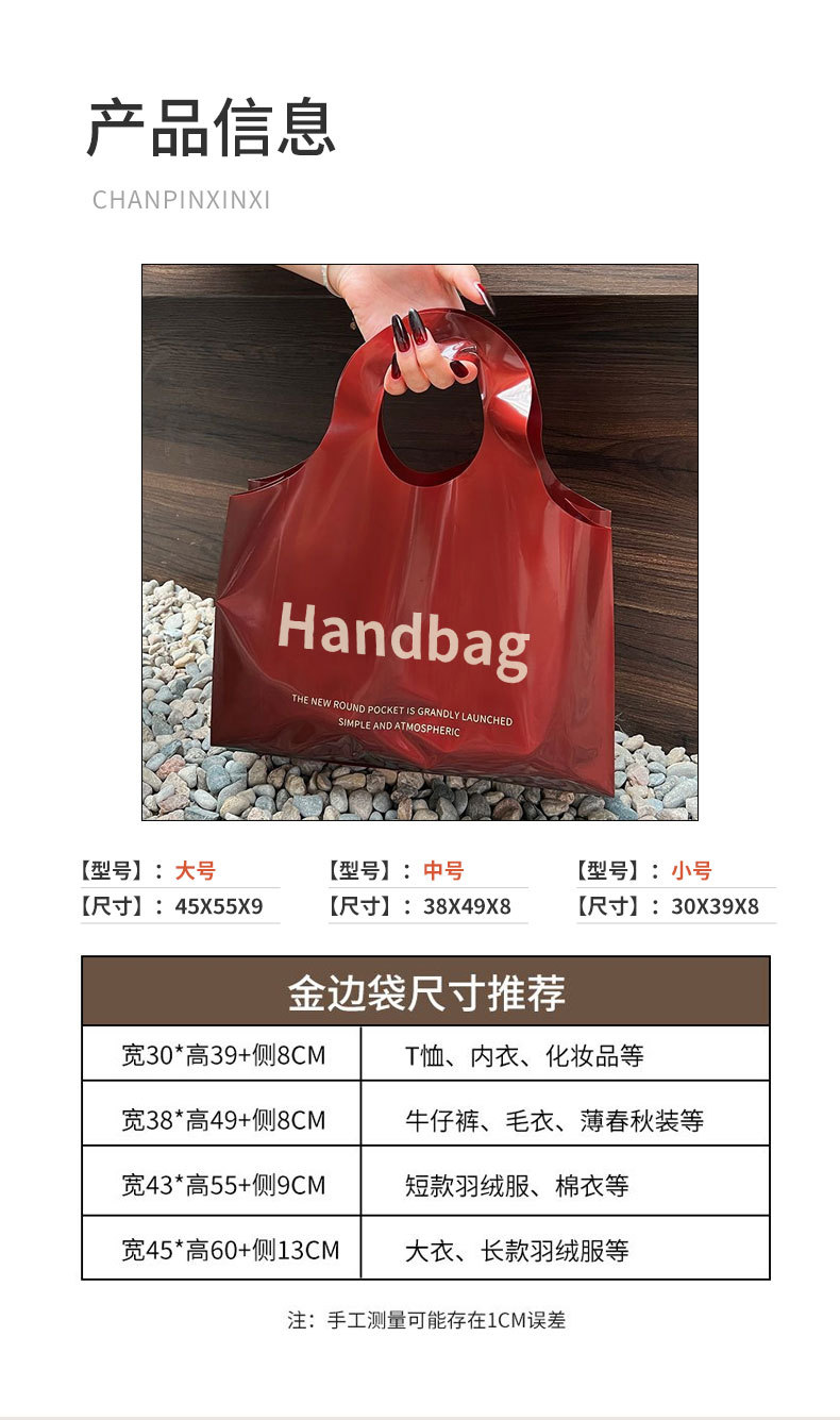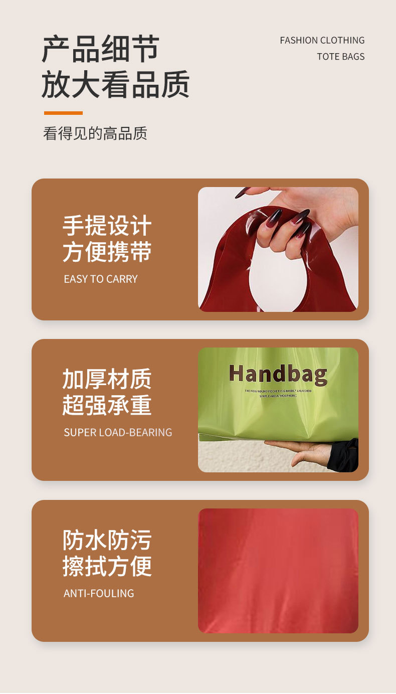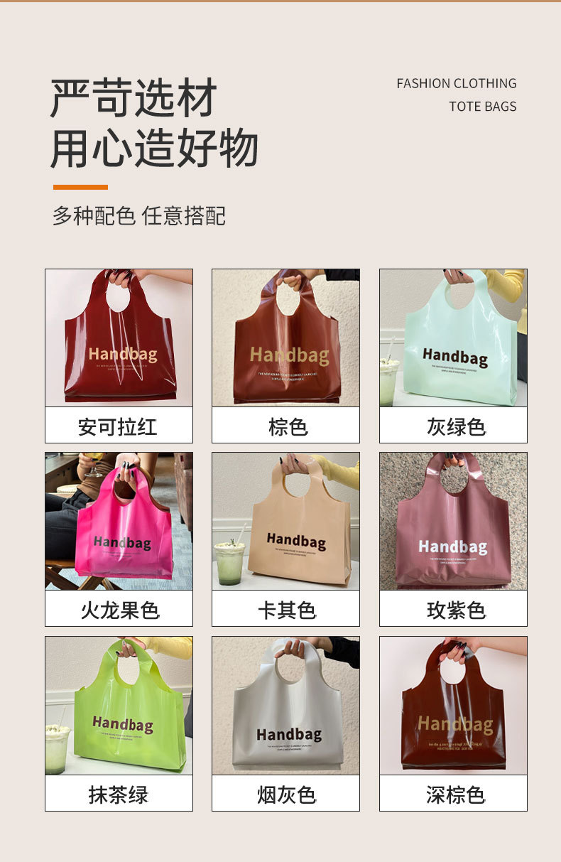 새로운 의류 매장 플라스틱 핸드백 두꺼운 선물 여성 쇼핑 가방 의류 포장 가방 재고 도매