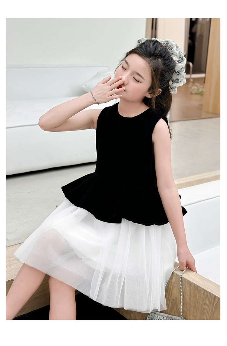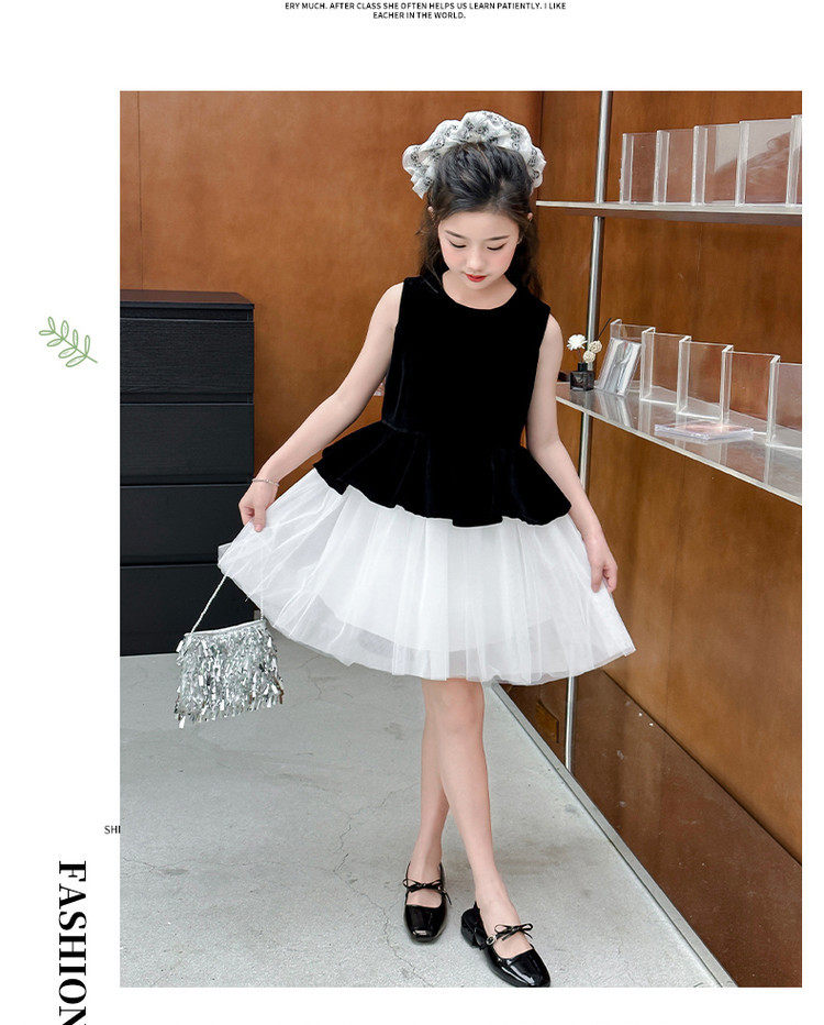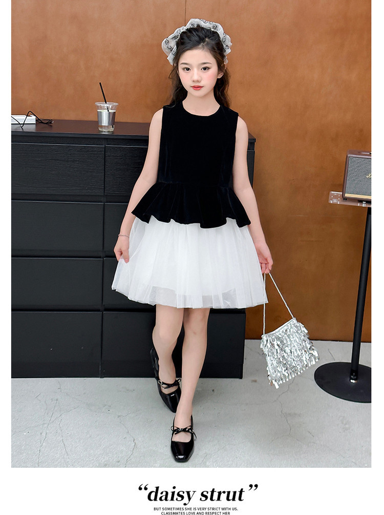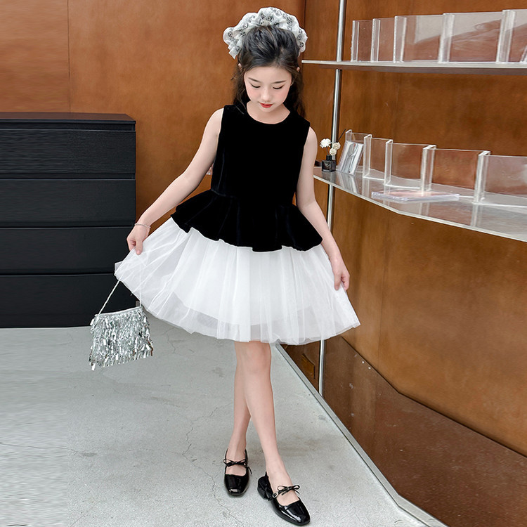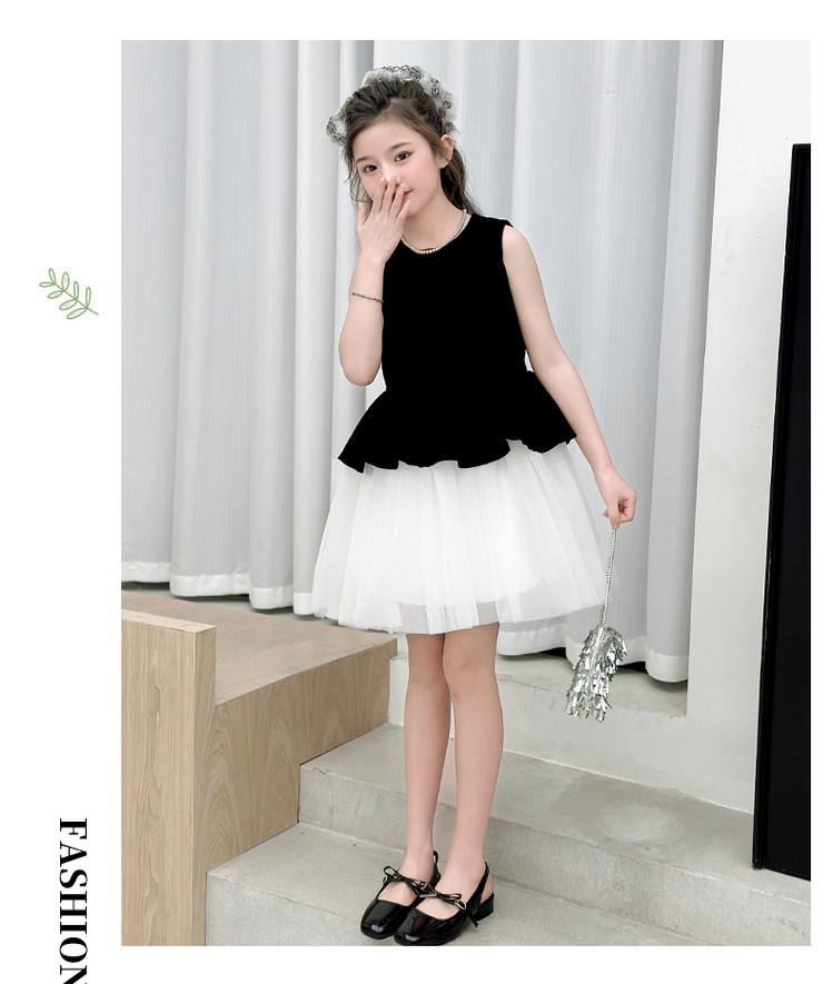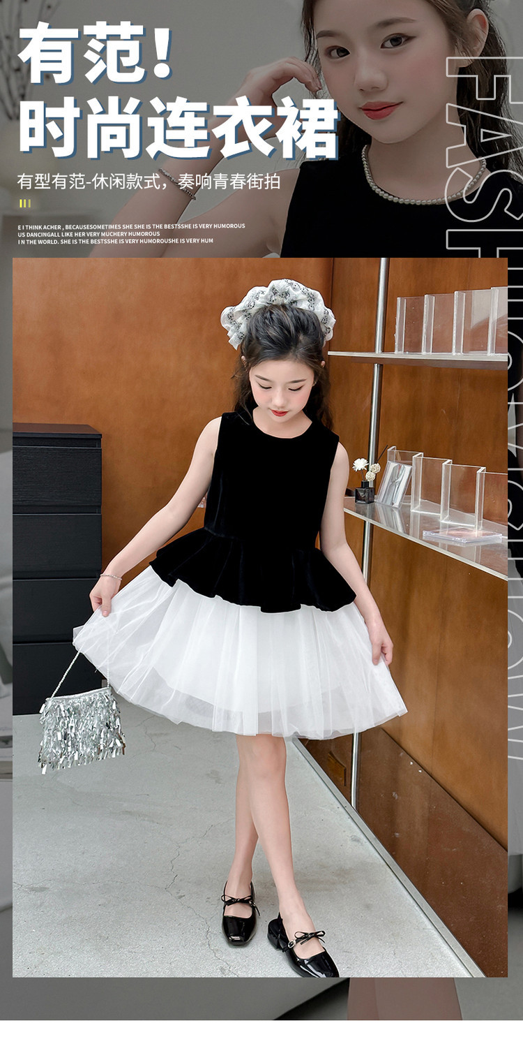 여자 여름 원피스 2025 새로운 스타일 발레 공주 원피스 패션 세련된 바느질 메쉬 민소매 원피스스토어 가기