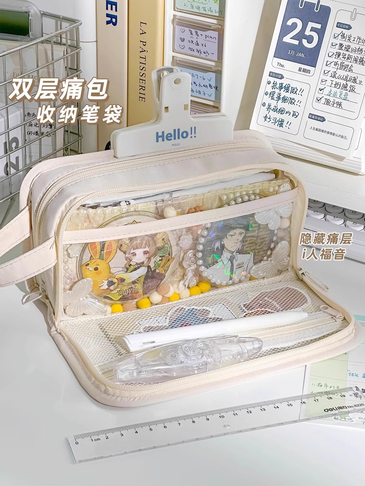 2025 통백색 필통 대용량 오염방지 초중학생 문구함 독특한 디자인 문구 연필케이스 수납함스토어 가기