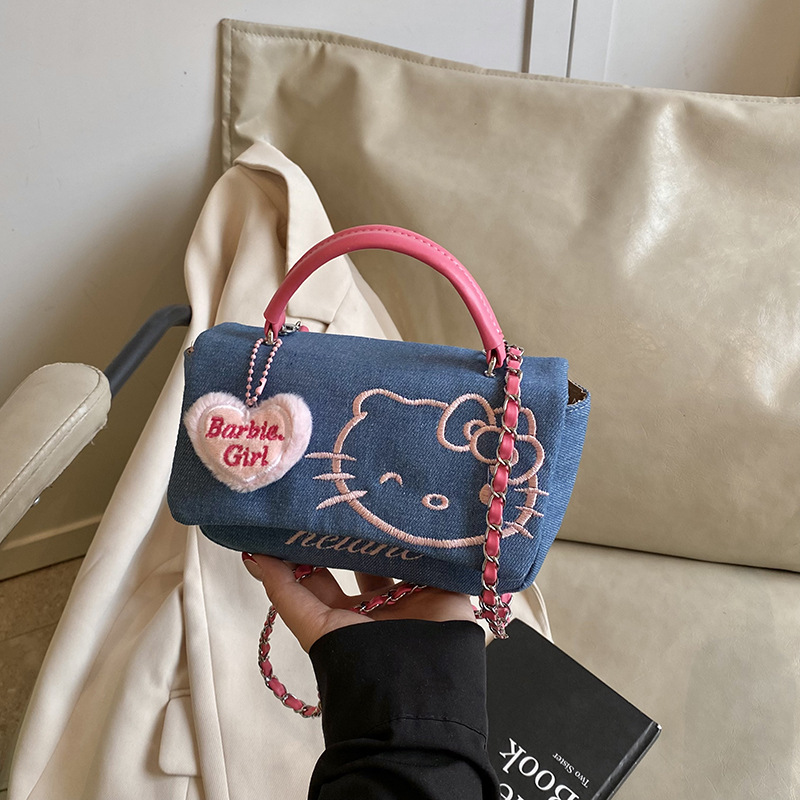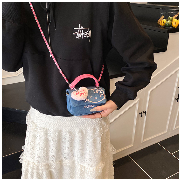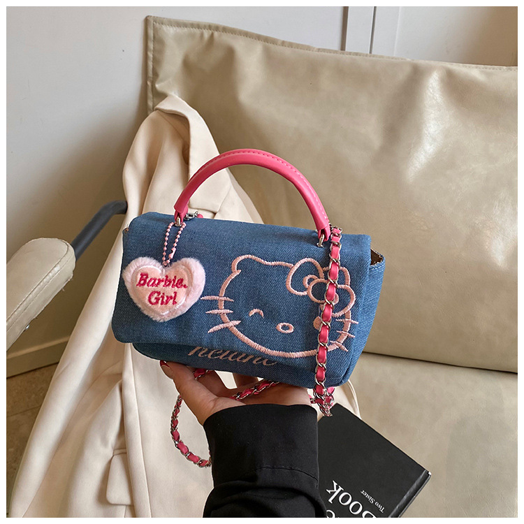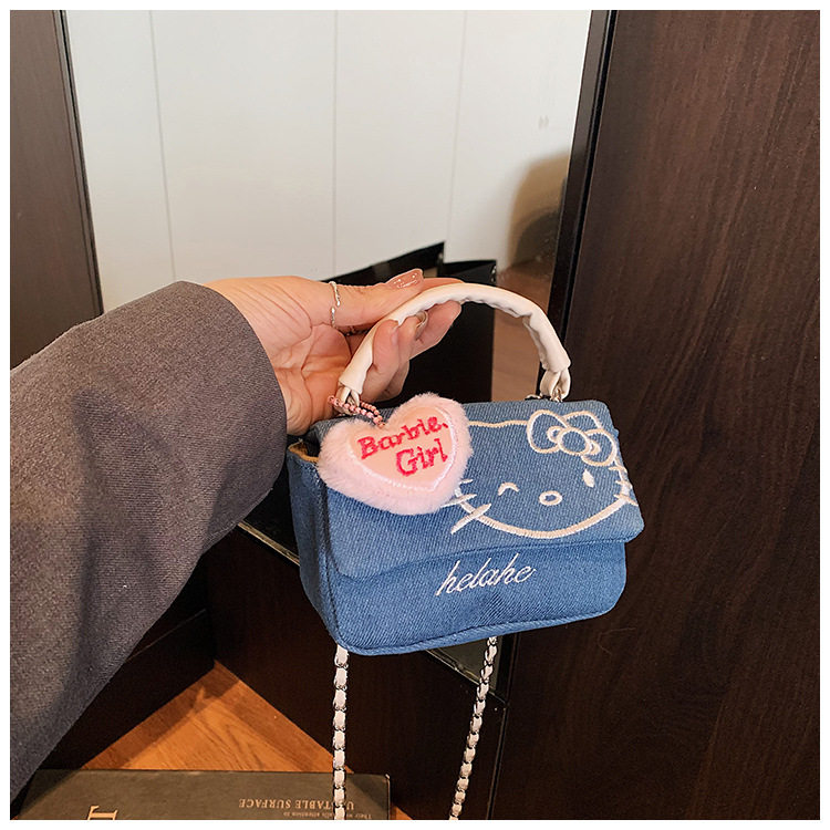 2025 새로운 어린이 데님 핸드백 어린 소녀 고양이 수 놓은 Crossbody 가방 숙녀 틈새 체인 휴대 전화 가방스토어 가기