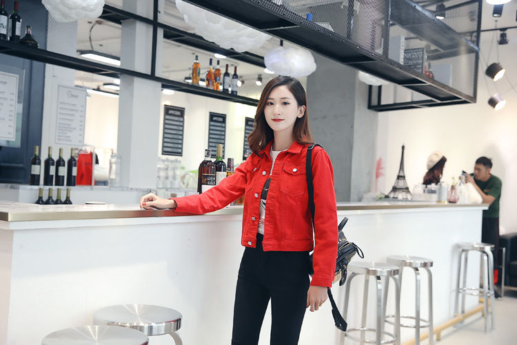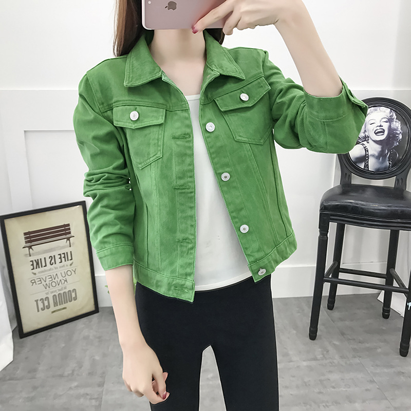 데님 코트 여자 2025 짧은 한국 스타일 캔디 컬러 학생 긴 소매 여성 자켓 유럽과 미국의 봄 여성 의류스토어 가기
