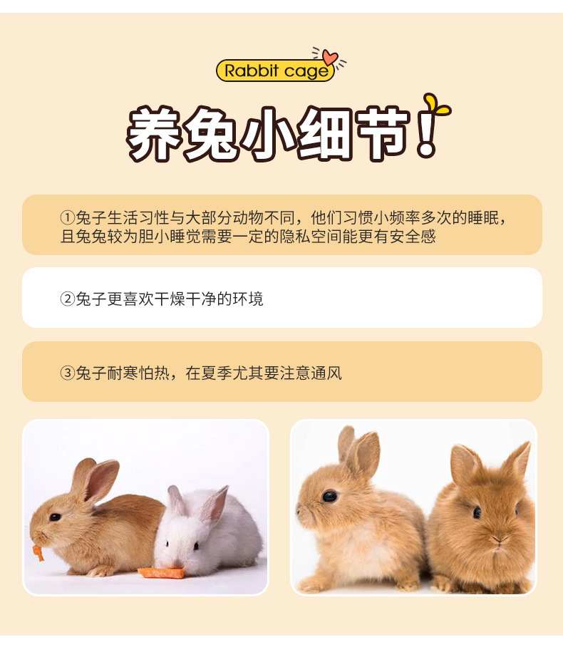 • 토끼의 두 칸으로 이루어진 작은 집은 뒷면에 물림 방지 토끼 둥지가 있습니다.