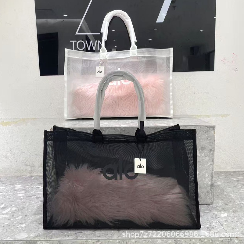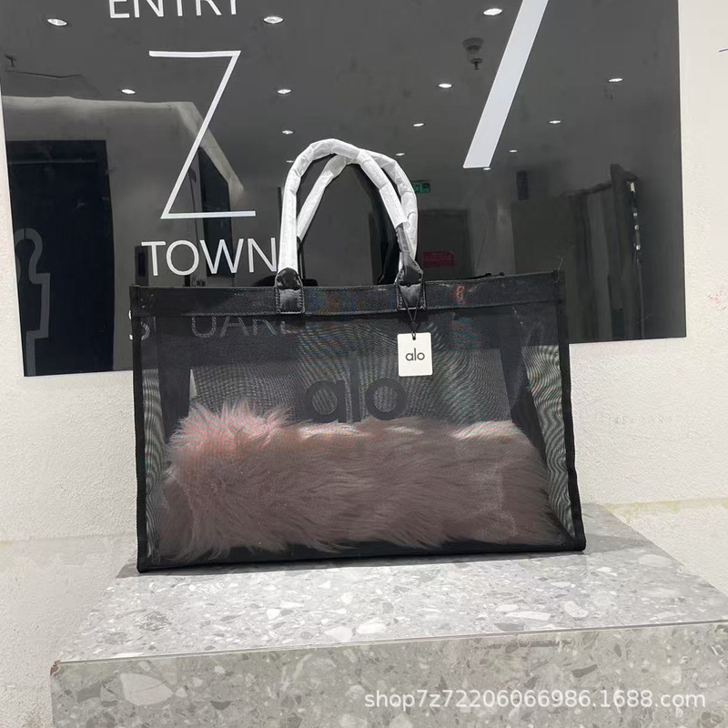 AIo 투명한 토트 백 요가 목욕 피트니스 큰 포켓 메쉬 비치 스포츠 토트 백 쇼핑백