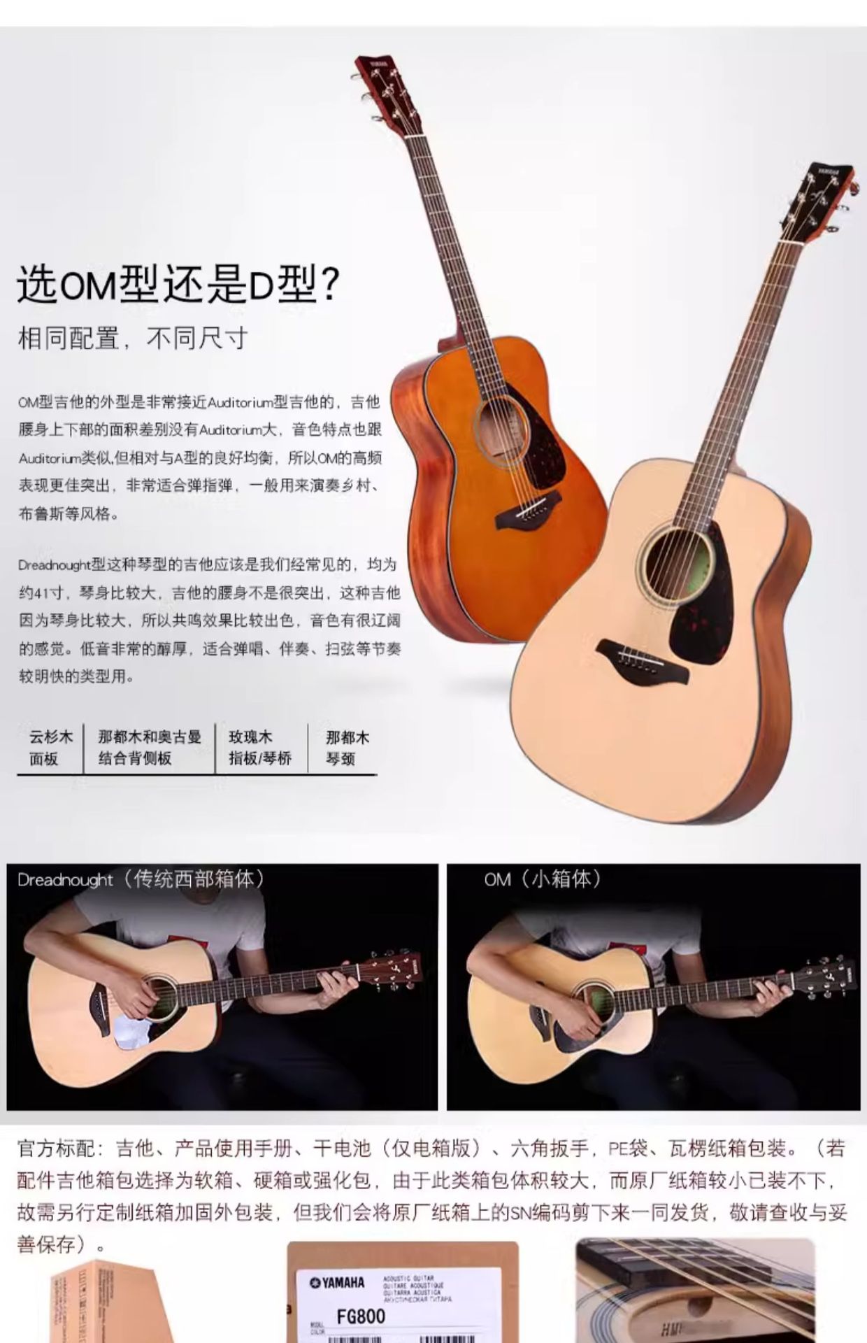 YAMAHA 야마하 기타 fg800 베니어 민속 목재 전기 박스 초급 학생 남성과 여성 41/ 40inch