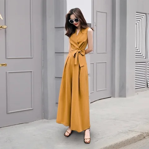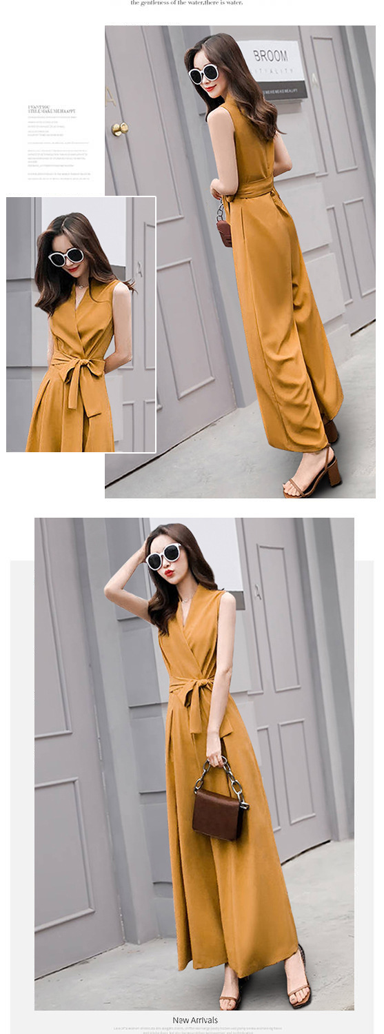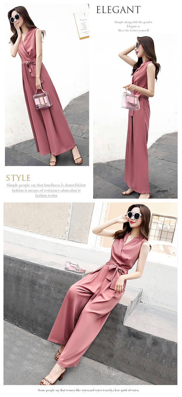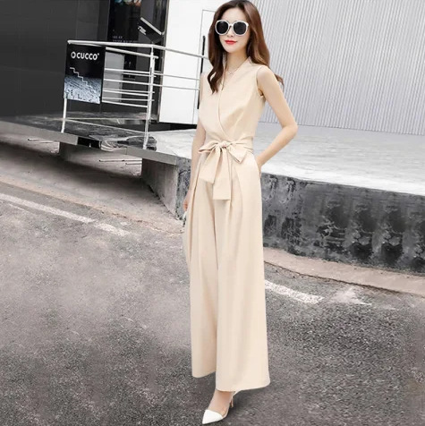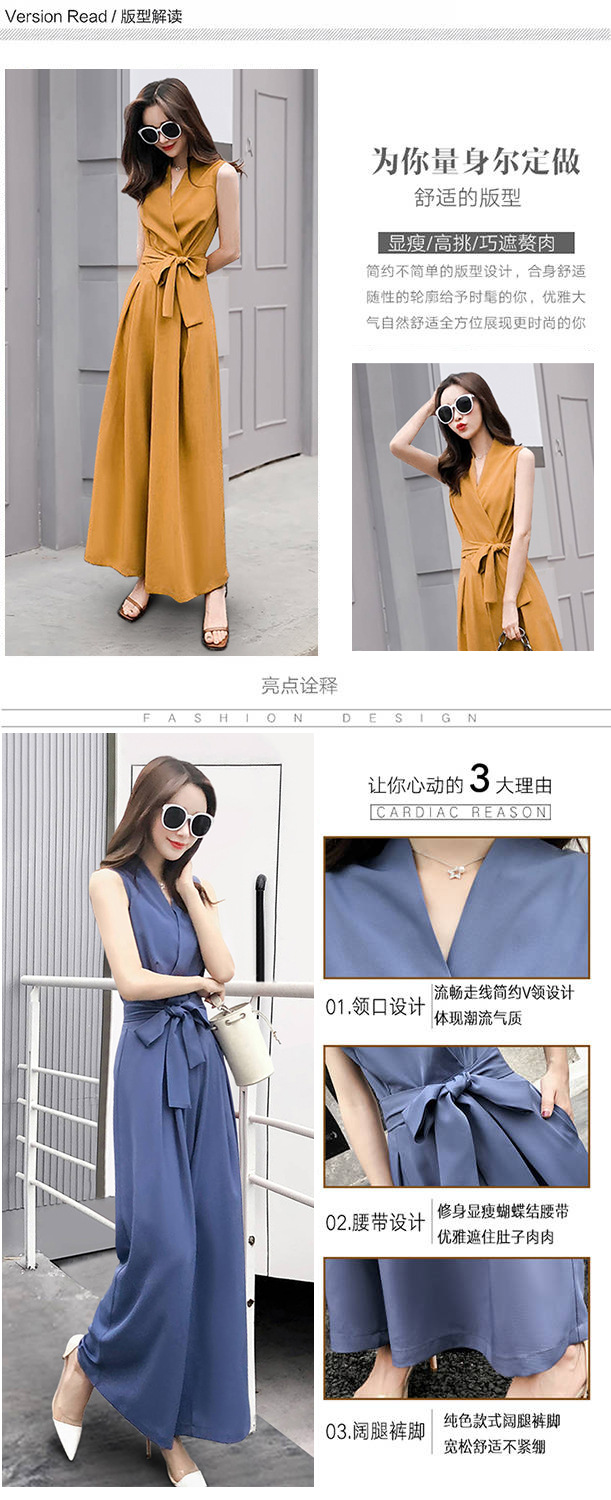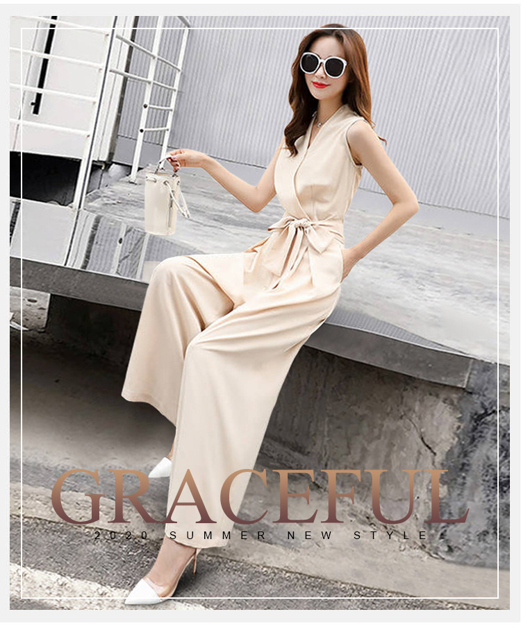 여성 인터넷 연예인을위한 원피스 와이드 레그 팬츠 2025 여름 패션 캐주얼 브이넥 슬림핏 레이디 젊어지게하는 점프 슈트 트렌디스토어 가기