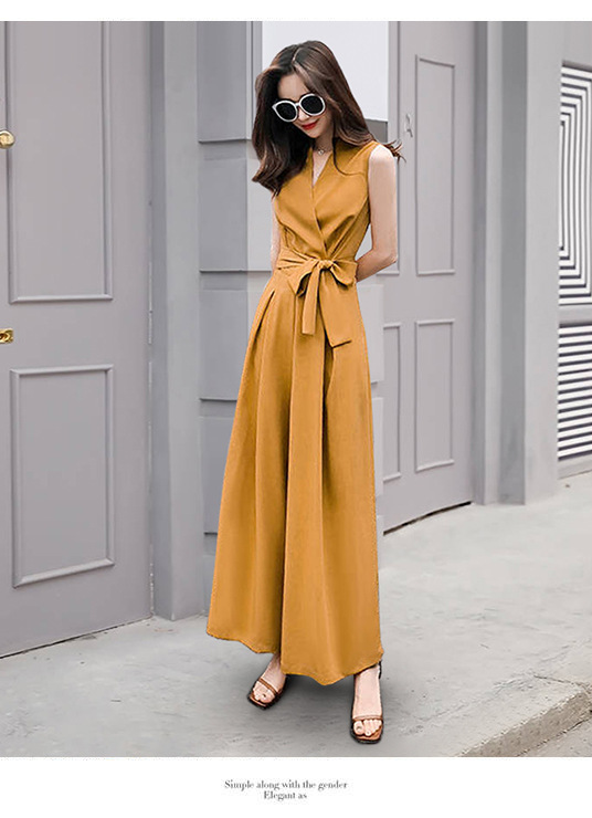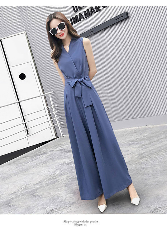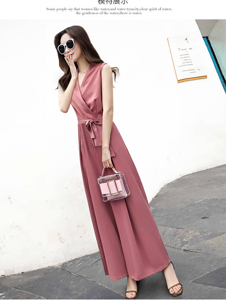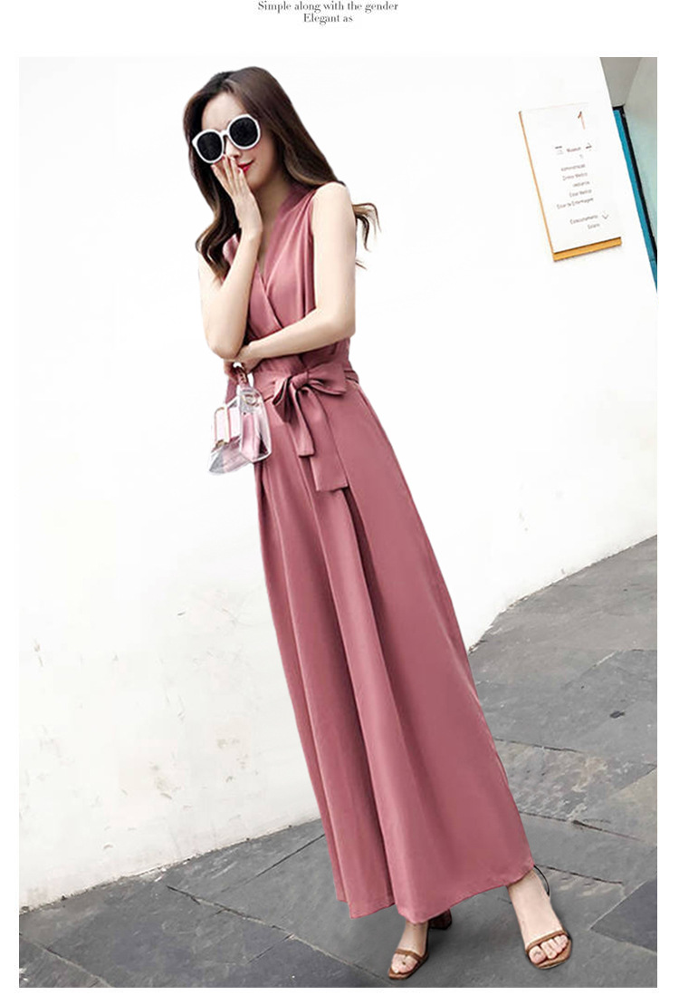 여성 인터넷 연예인을위한 원피스 와이드 레그 팬츠 2025 여름 패션 캐주얼 브이넥 슬림핏 레이디 젊어지게하는 점프 슈트 트렌디