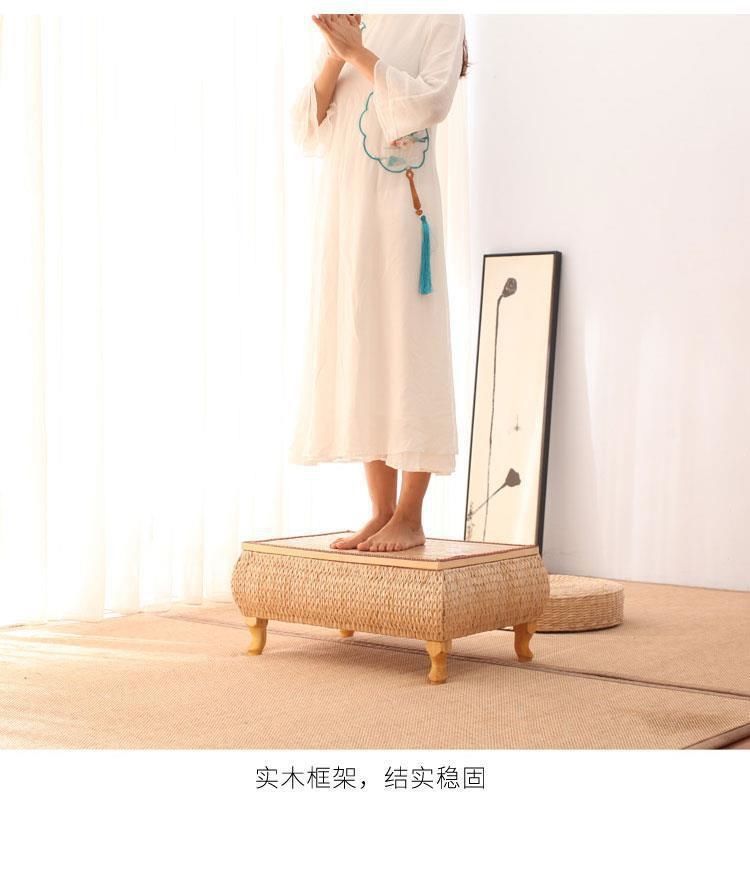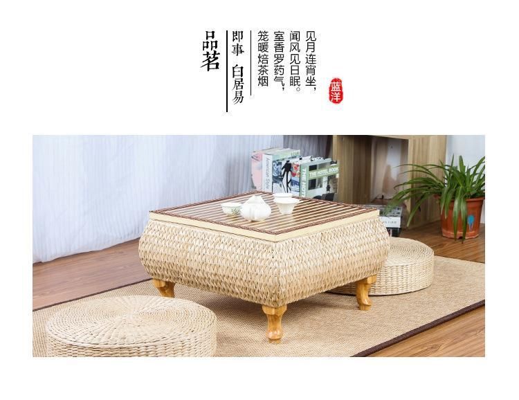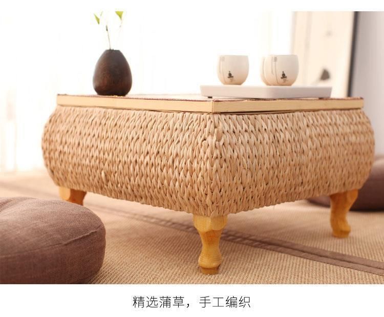 밀짚 다다미 커피 테이블 일본 선 스타일 낮은 테이블 베이 창 테이블 저장 작은 사각형 테이블 등나무 강 테이블 발코니 차 테이블