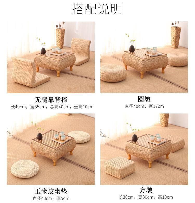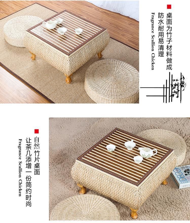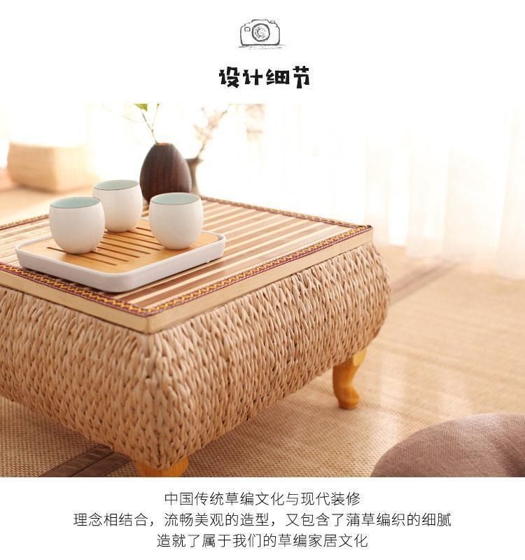 밀짚 다다미 커피 테이블 일본 선 스타일 낮은 테이블 베이 창 테이블 저장 작은 사각형 테이블 등나무 강 테이블 발코니 차 테이블스토어 가기