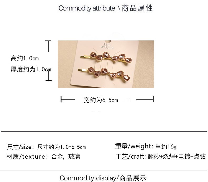 새로운 크리스탈 더블 클립 활 이마 앞머리 클립 헤어 액세서리 모조 다이아몬드 머리 장식 사이드 클립 제조 업체 도매스토어 가기