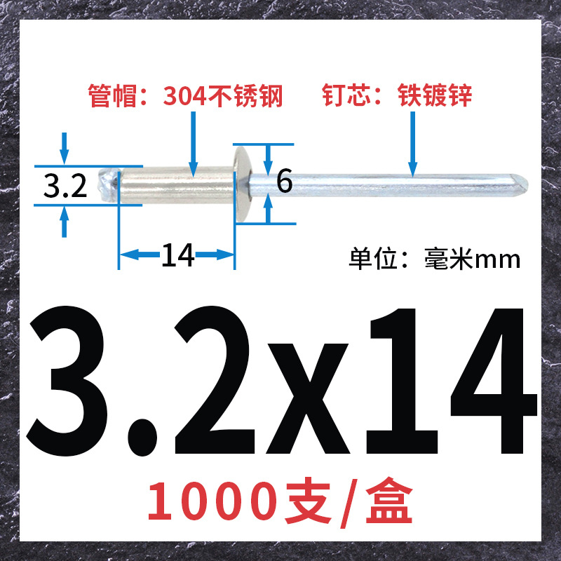 스테인레스 스틸 304 오픈 타입 플랫 라운드 헤드 코어 리벳 플랫 팬 헤드 풀 리벳 M3/3.2/4/5/6/6.4스토어 가기