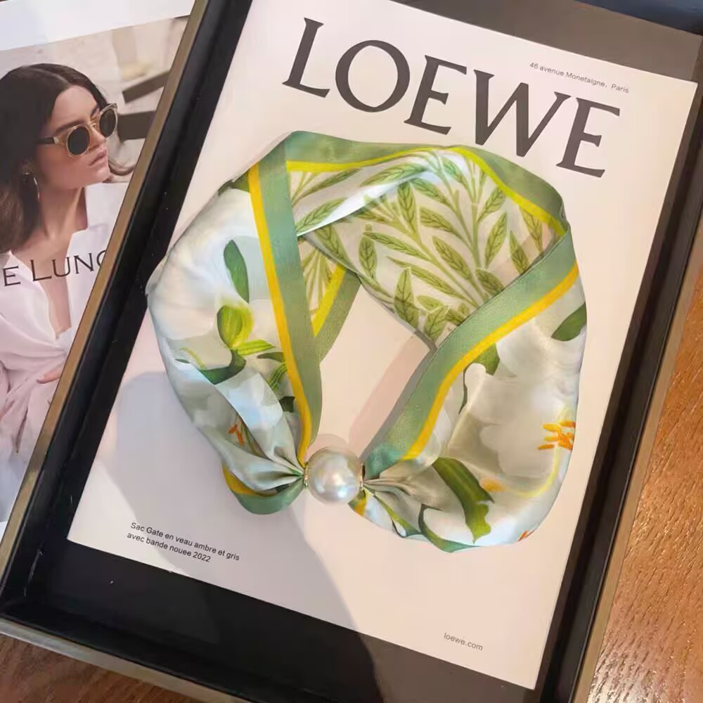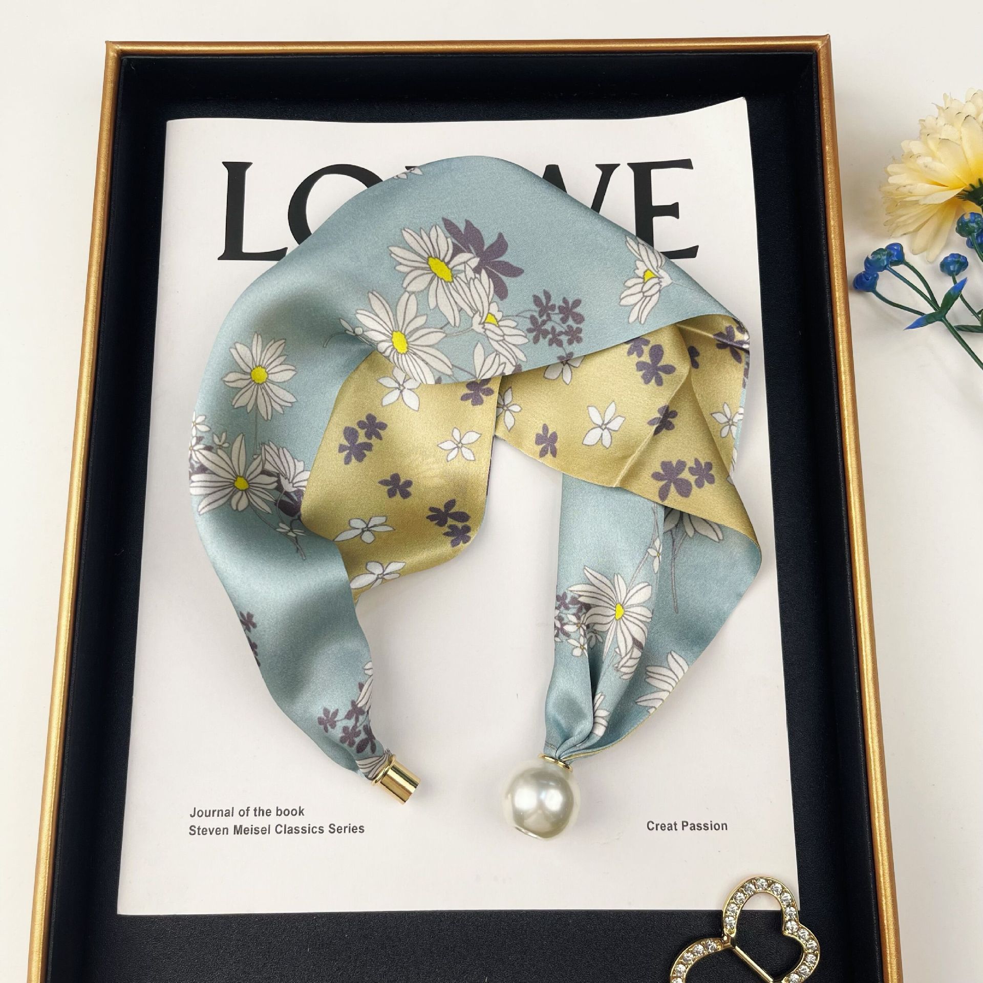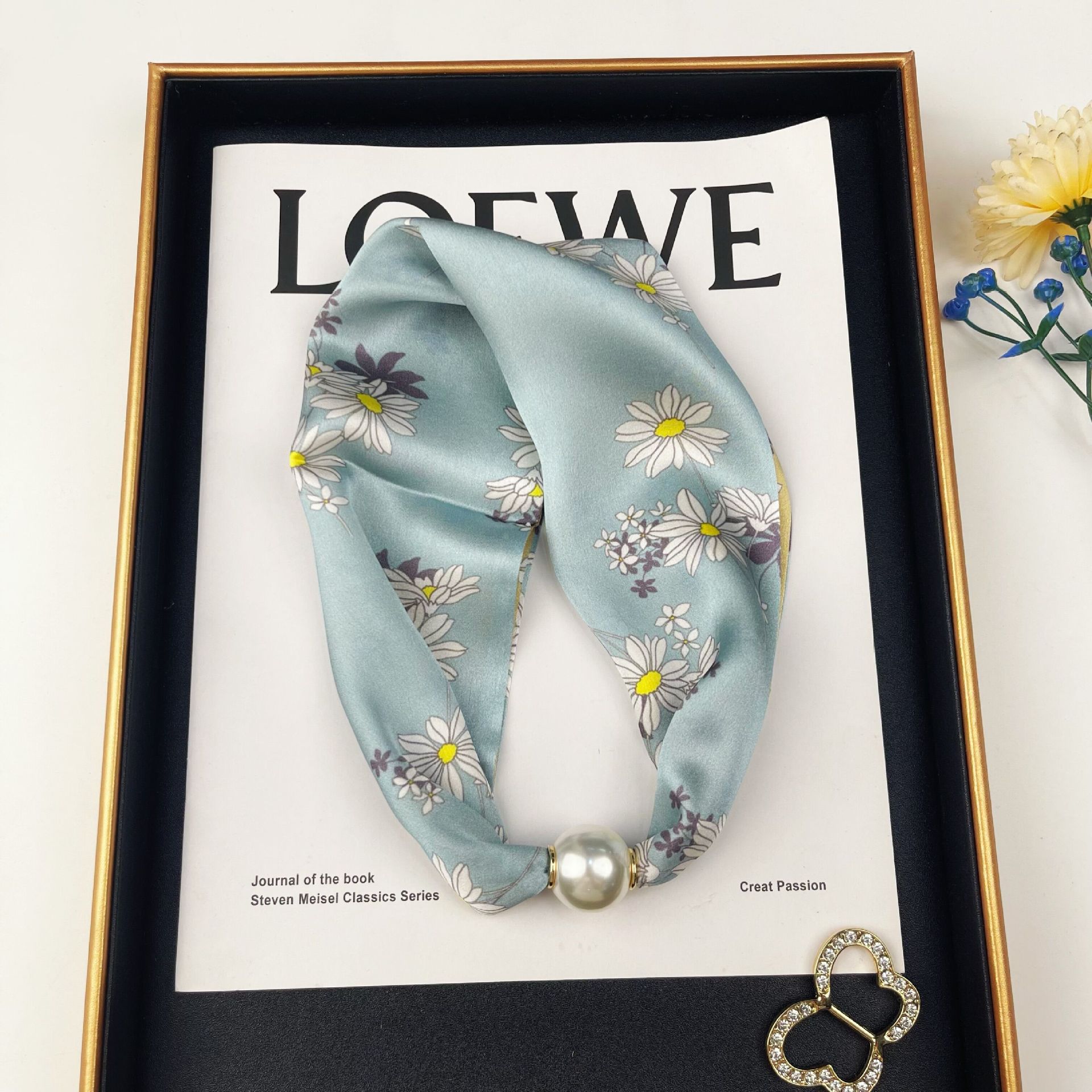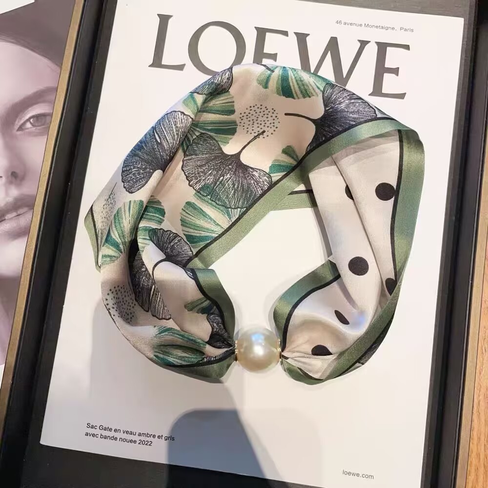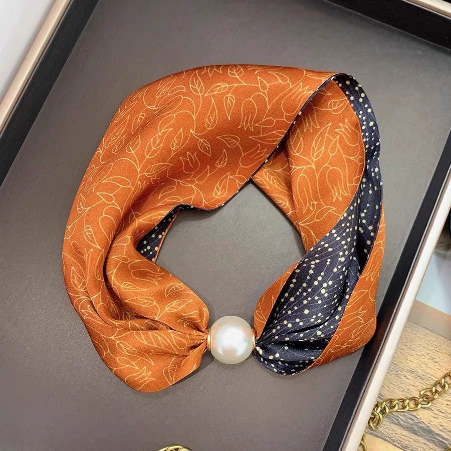큰 진주 자석 버클 쇄골 목걸이 실크 스카프 여성의 봄과 여름 모든 경기 얇은 100 뽕나무 실크 장식 스카프