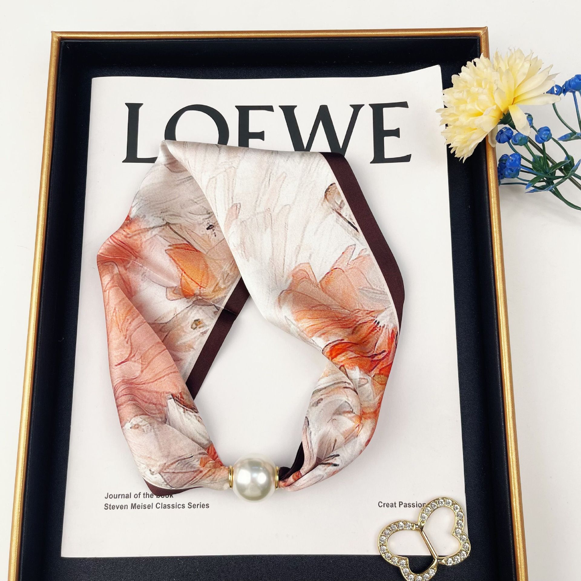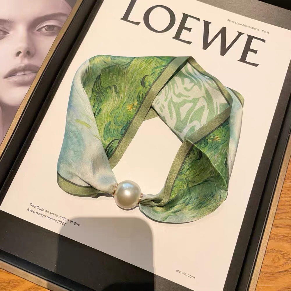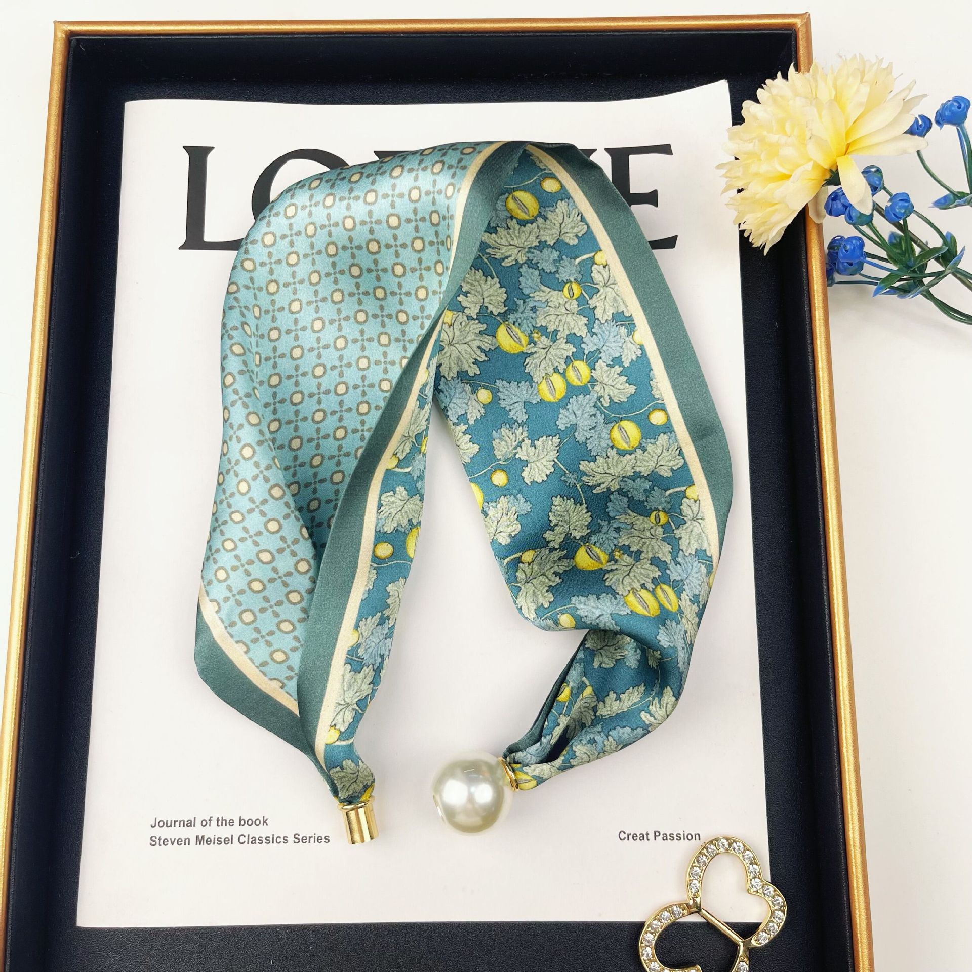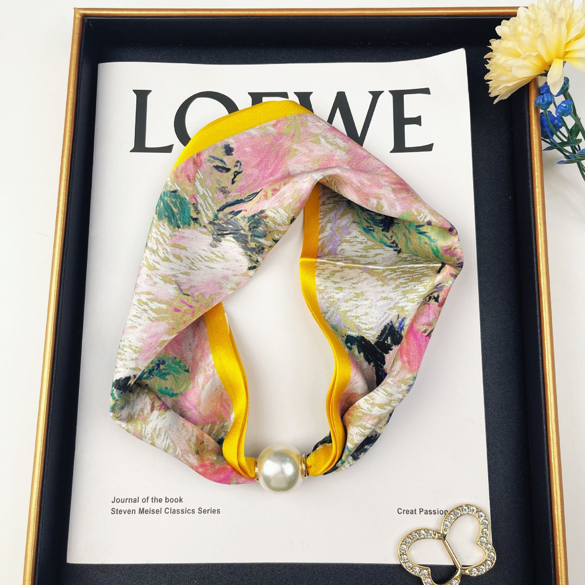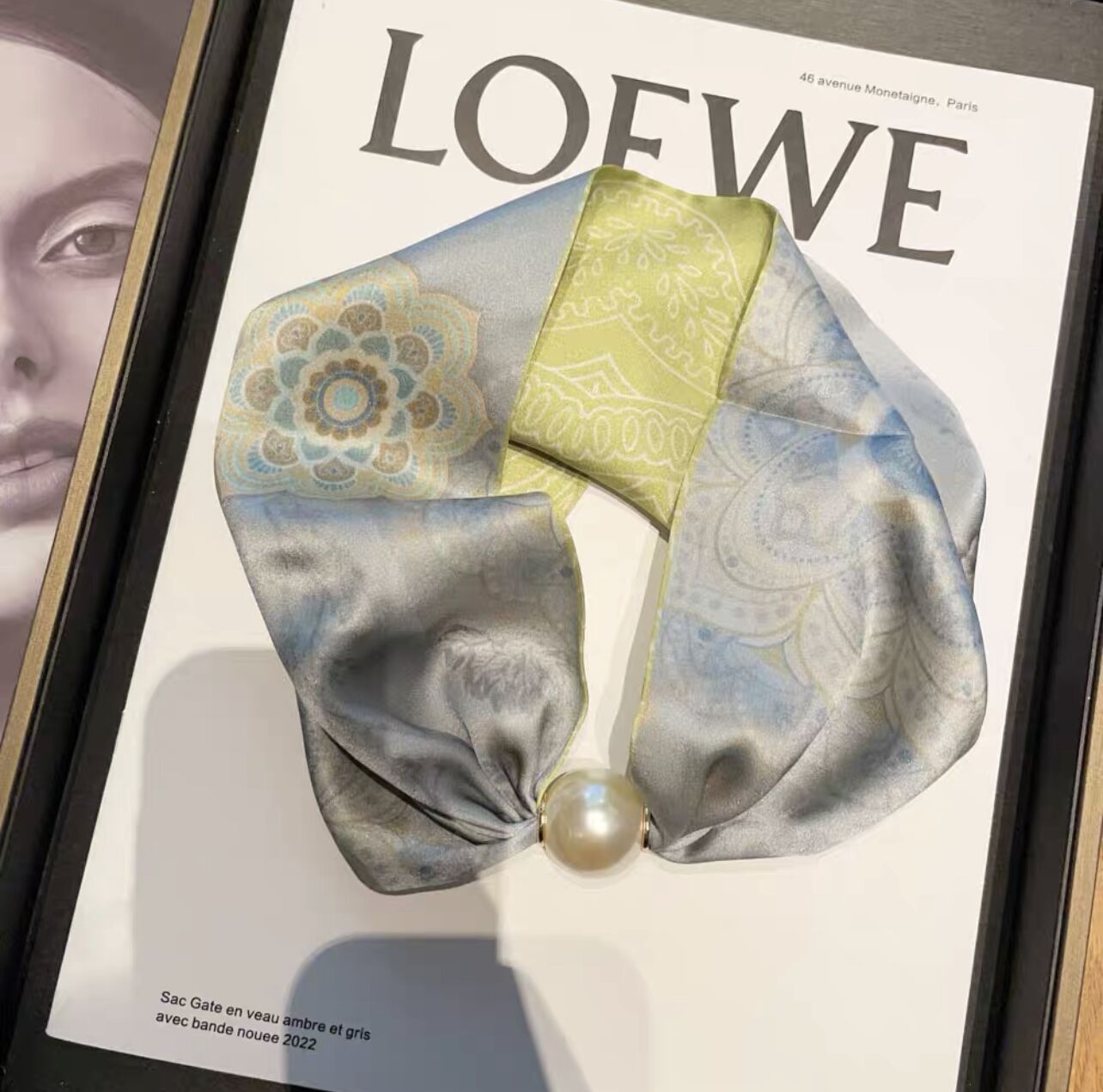 큰 진주 자석 버클 쇄골 목걸이 실크 스카프 여성의 봄과 여름 모든 경기 얇은 100 뽕나무 실크 장식 스카프