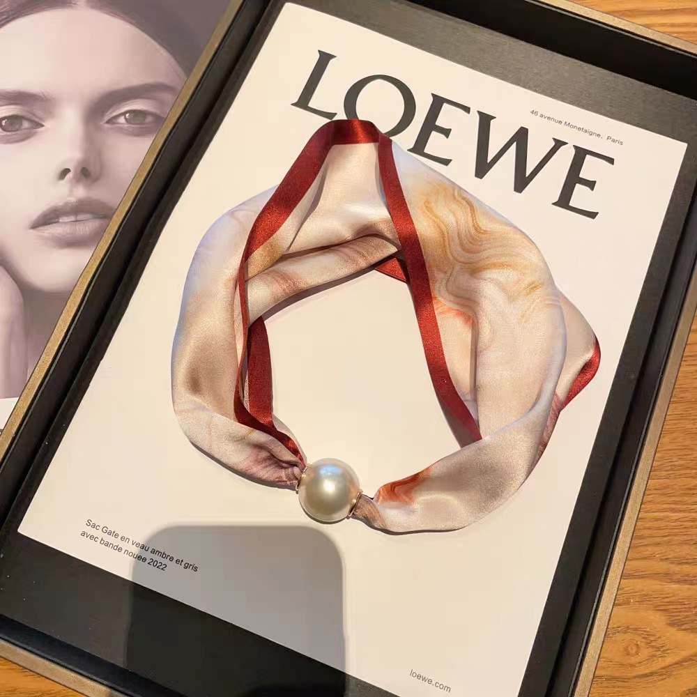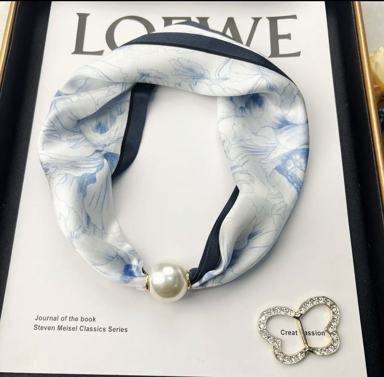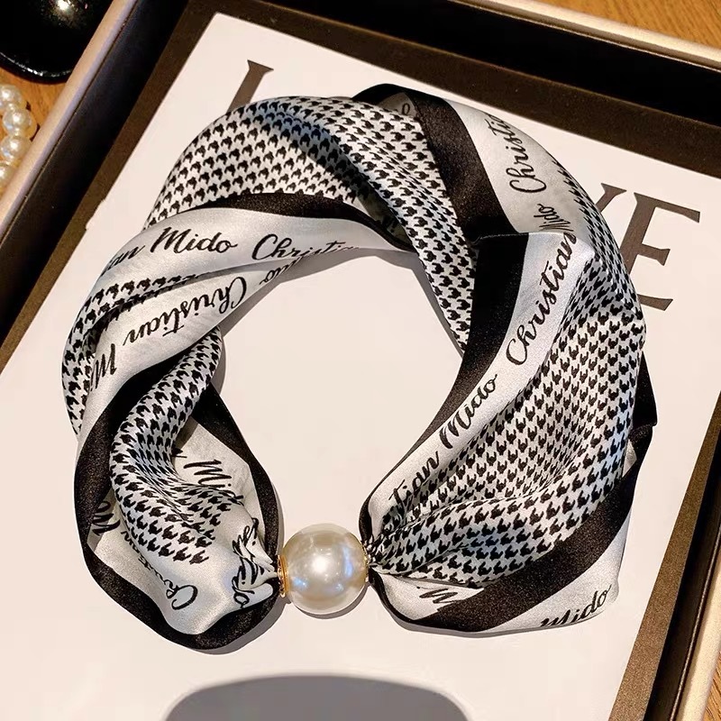 큰 진주 자석 버클 쇄골 목걸이 실크 스카프 여성의 봄과 여름 모든 경기 얇은 100 뽕나무 실크 장식 스카프스토어 가기