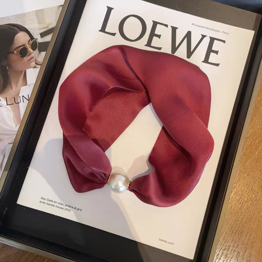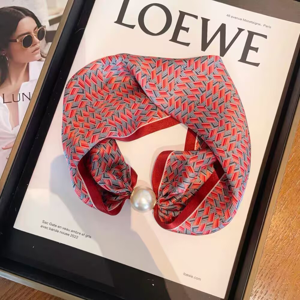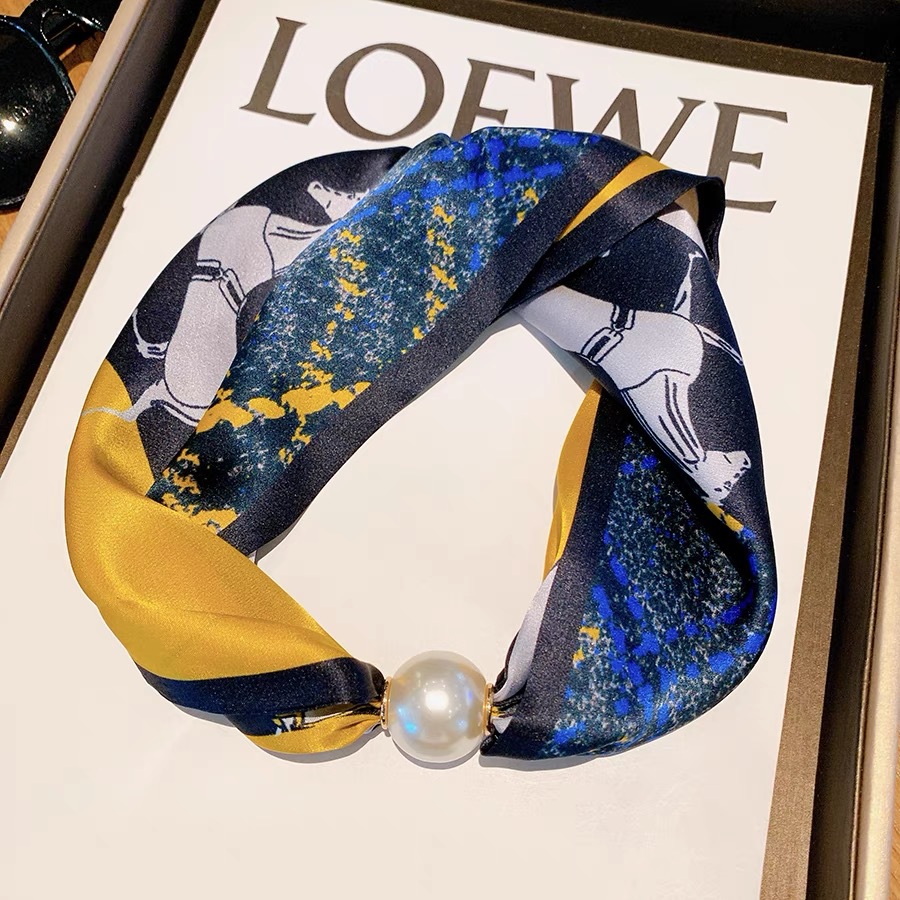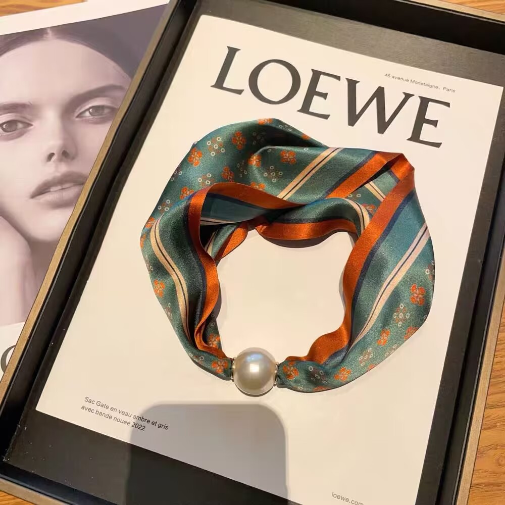 큰 진주 자석 버클 쇄골 목걸이 실크 스카프 여성의 봄과 여름 모든 경기 얇은 100 뽕나무 실크 장식 스카프스토어 가기