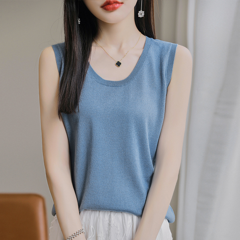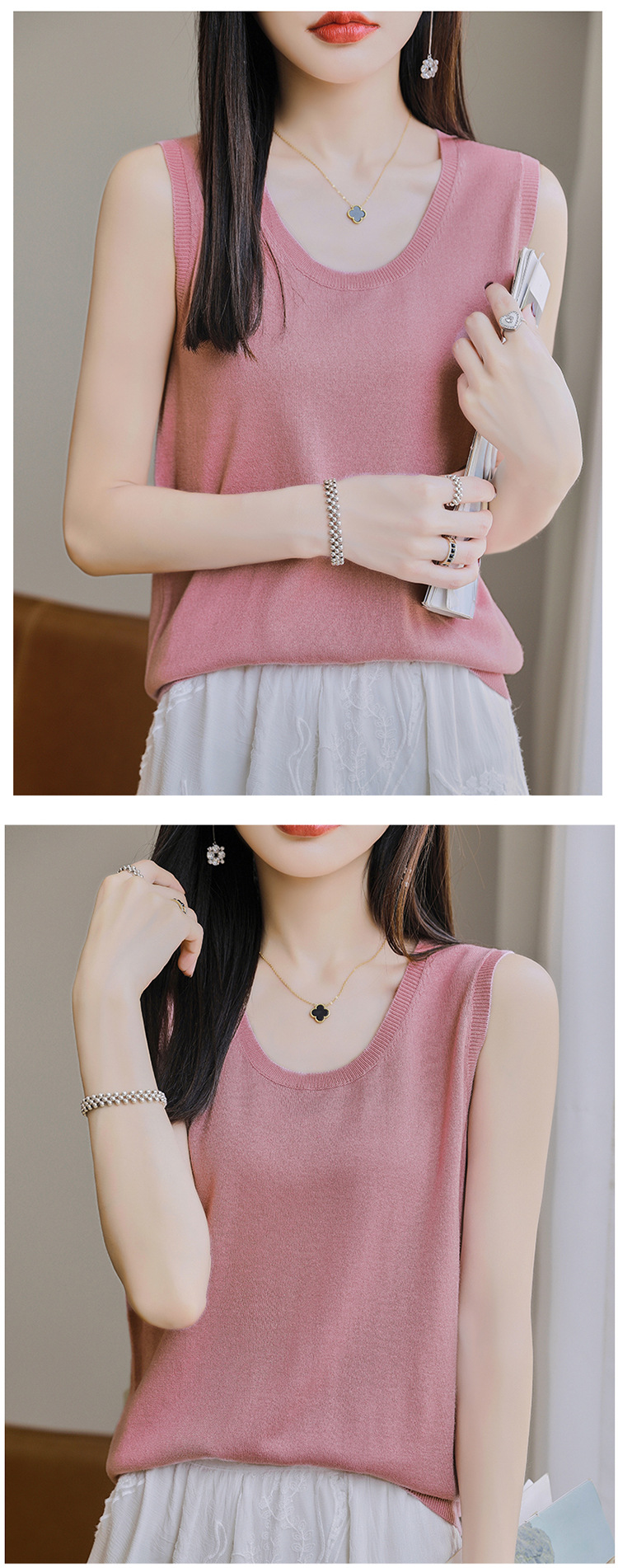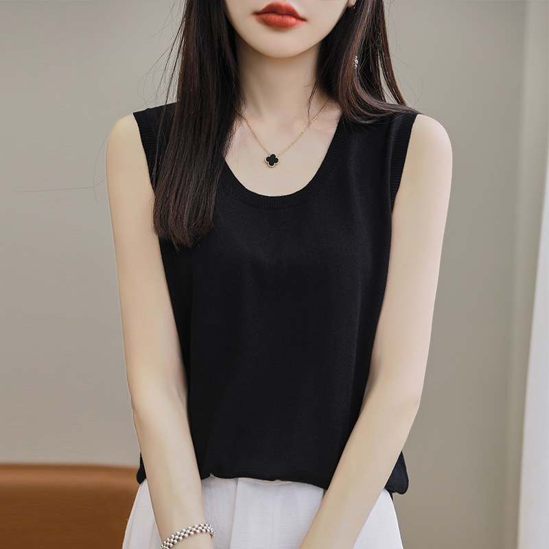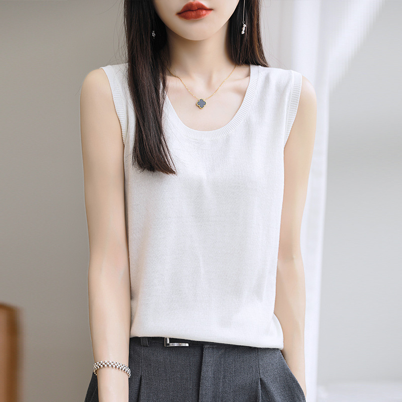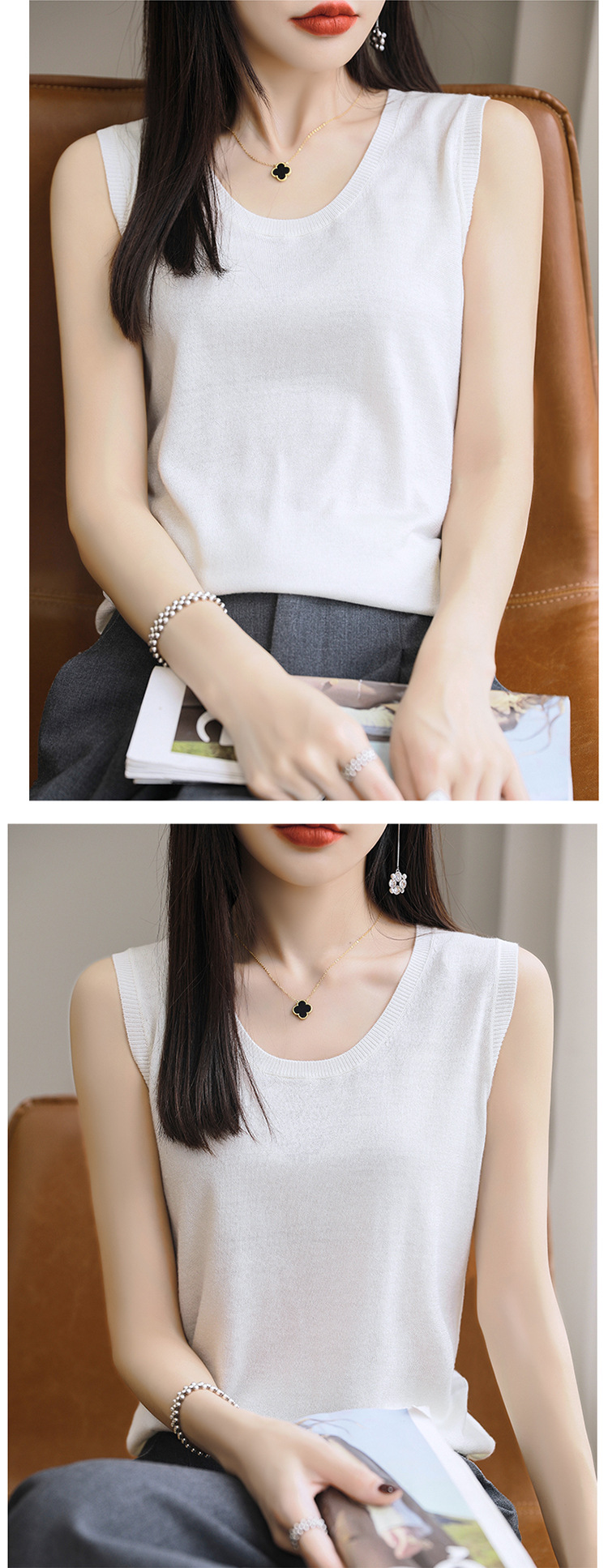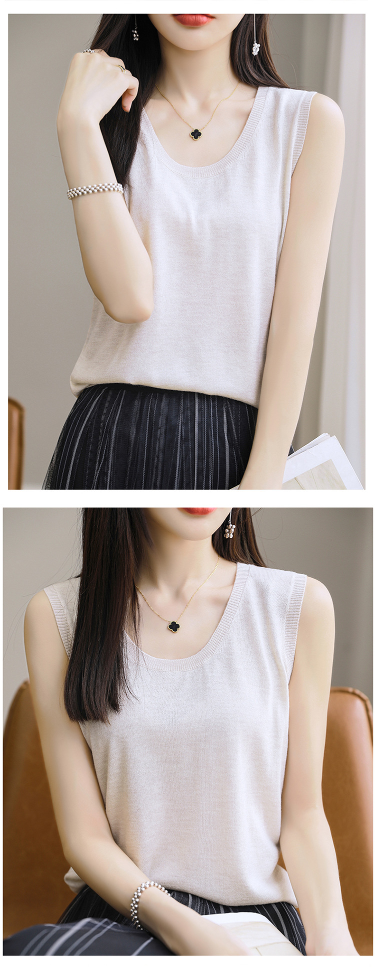 여름 새로운 뽕나무 실크 카미솔 여성의 단색 민소매 베이스 셔츠 탑 봄 둥근 목 세트스토어 가기