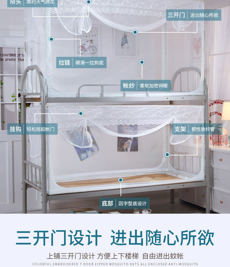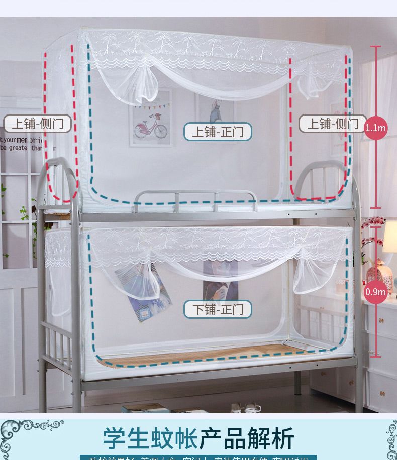 학생 기숙사 침실 이층 침대 범용 0.9m 투명 모기장 침대 커튼 상단 레벨 브래킷 개폐식 지퍼 모기장스토어 가기