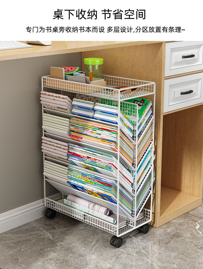 다층 도서 보관 이동식 책장 보관함 책상 바닥 교실 책장 바퀴가 달린 간단한 테이블 사이드 보관함스토어 가기