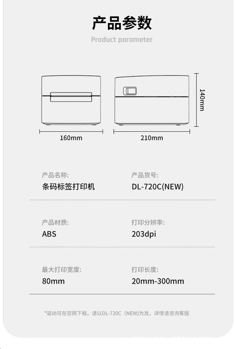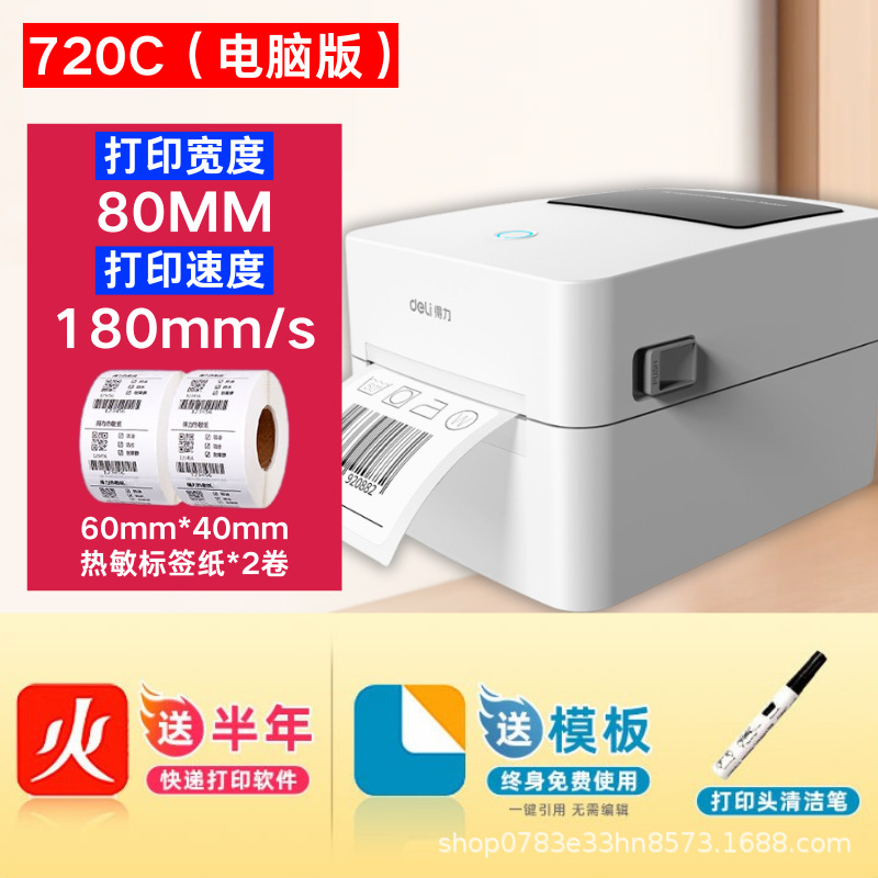 • [인기 판매 컴퓨터 모델 720C] 너비 20-80MM [무료 소프트웨어 + 청소 펜] + 라벨 용지 800개