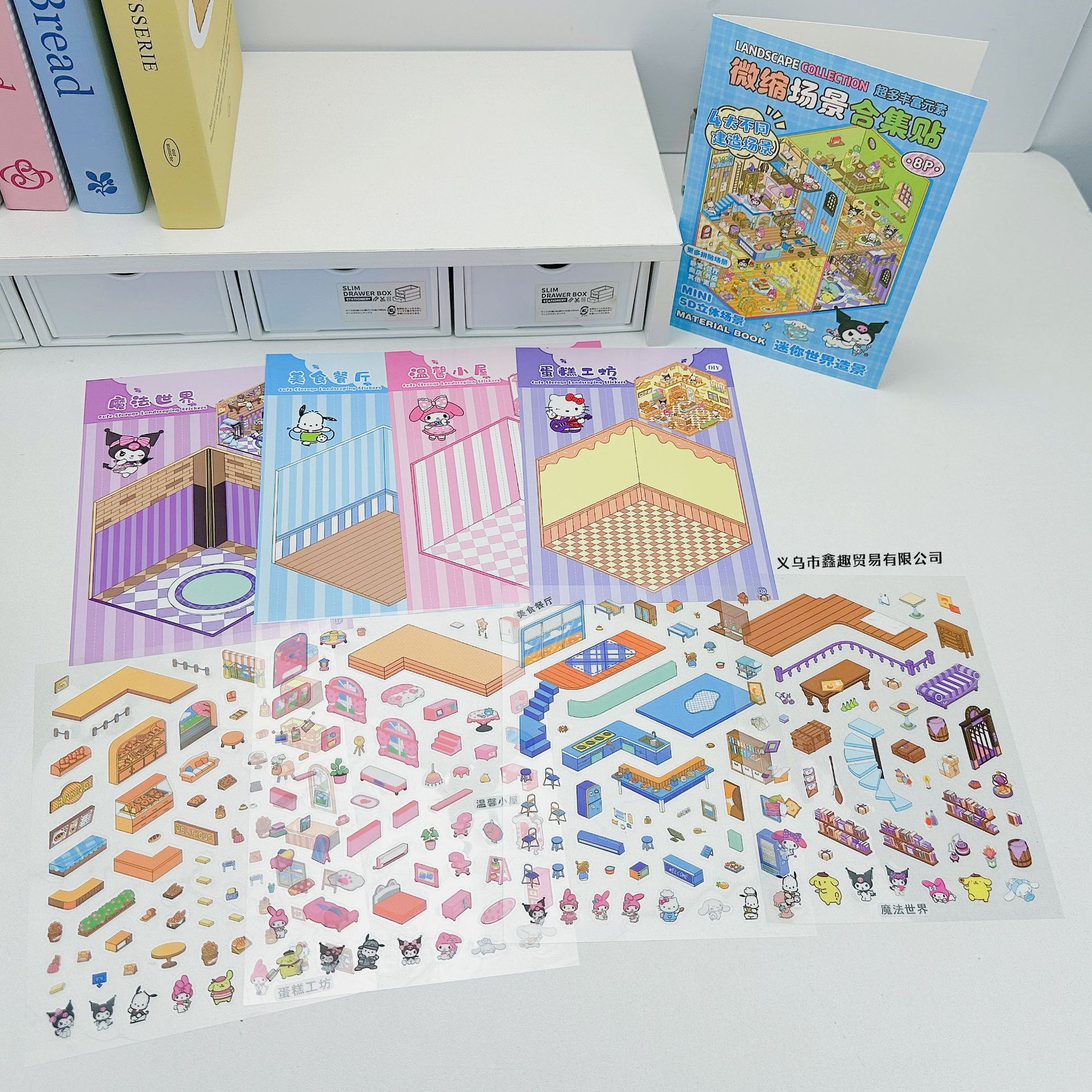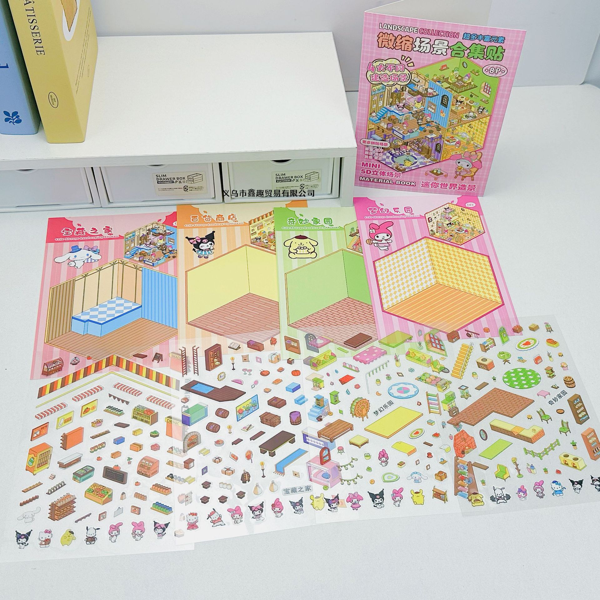 5D 미니어처 장면 수집 스티커 3 차원 장면 콜라주 스티커 DIY 감압 컷 무료 교육 어린이 장난감스토어 가기