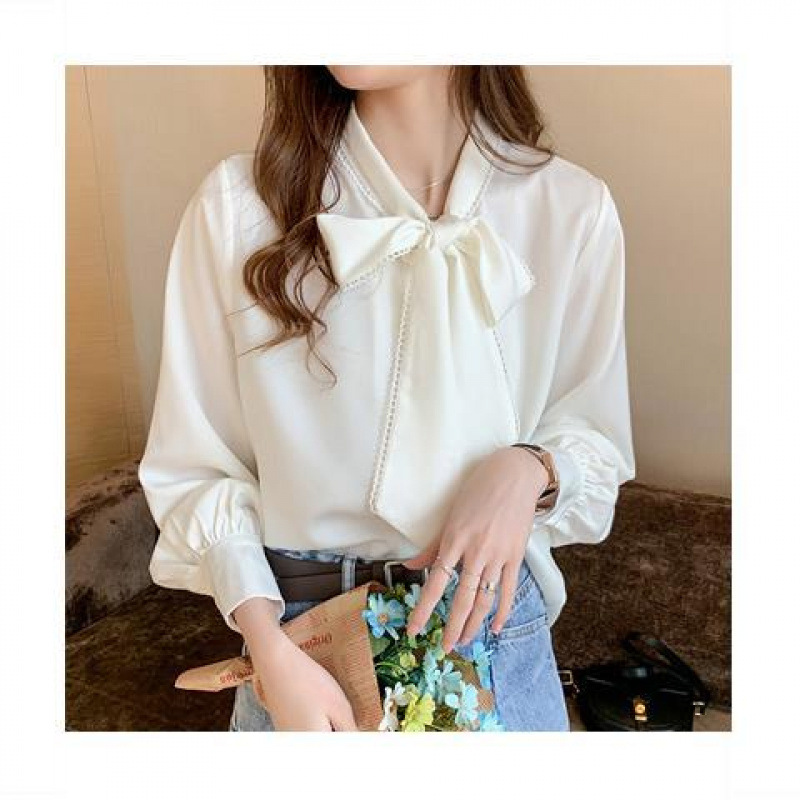 여성용 셔츠 2025 봄, 가을 새로운 한국식 새틴 쉬폰 셔츠 여성용 보우 루즈 긴팔 서양식 셔츠 탑스토어 가기
