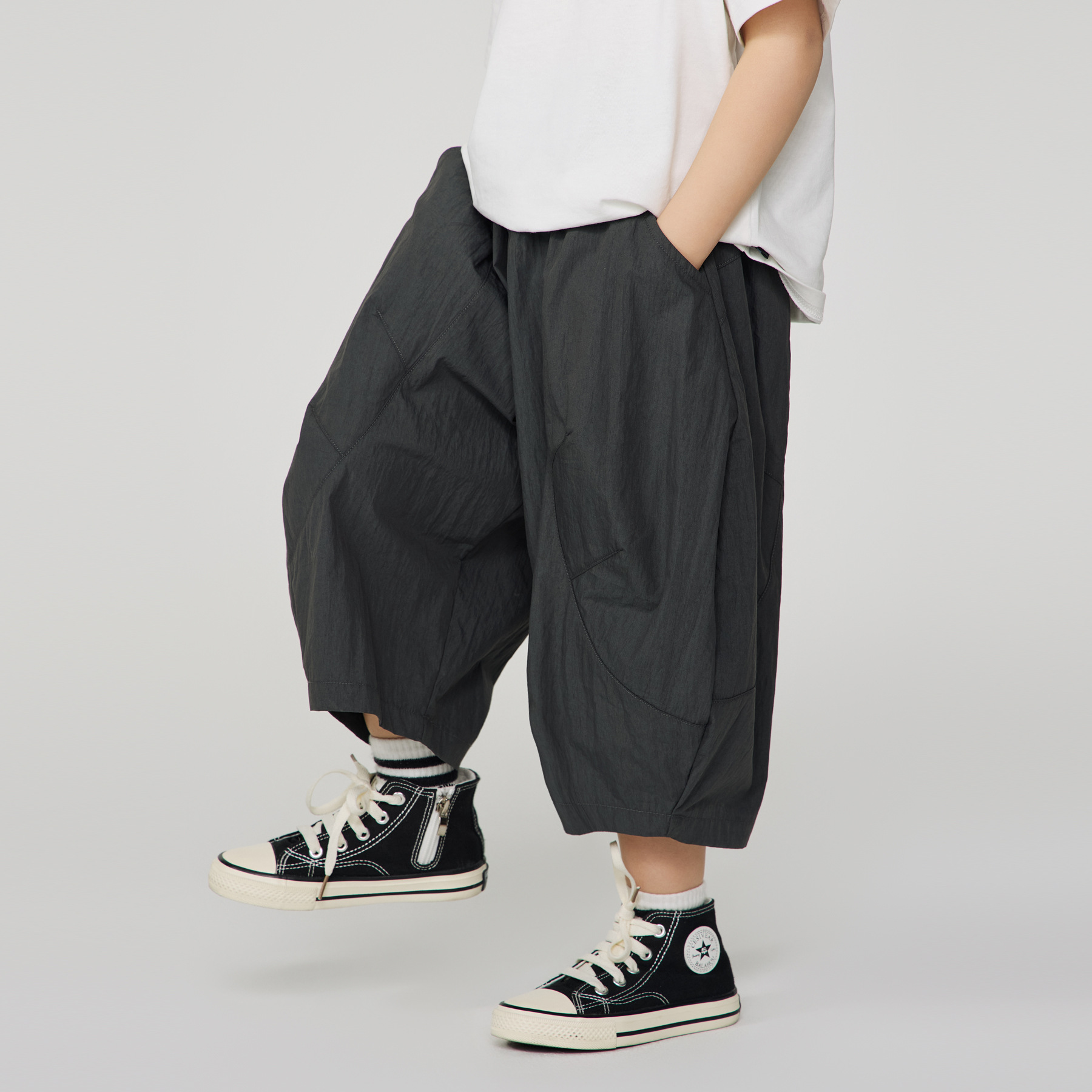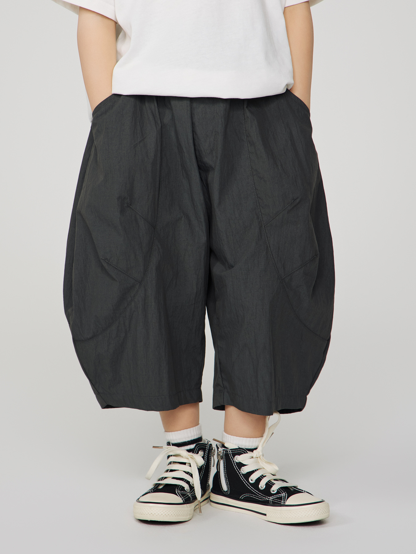 松紧腰设计,穿脱方便,气球大垮裤版型,时髦又好看.