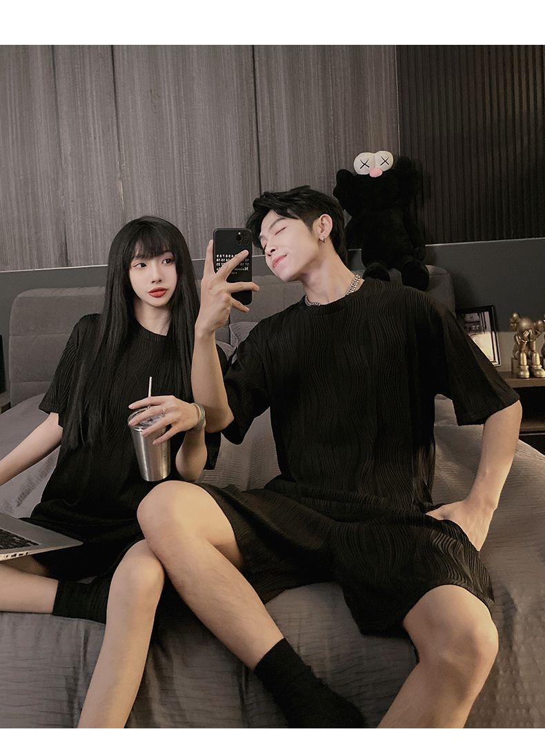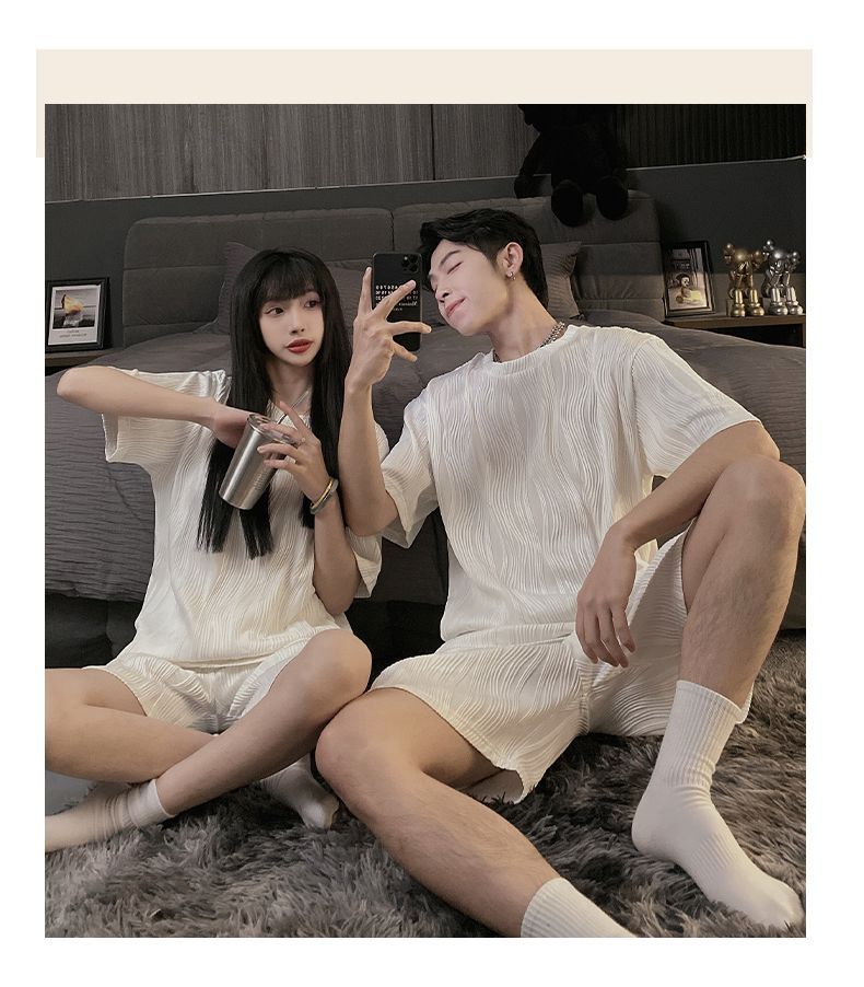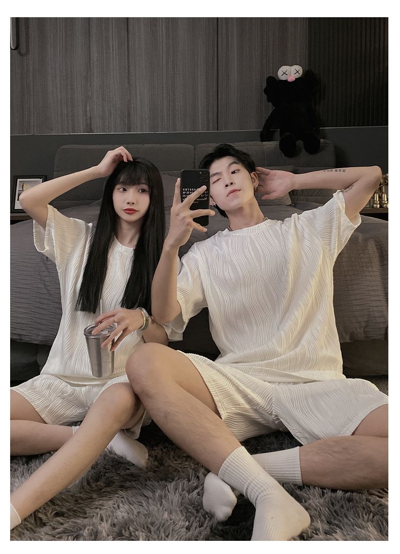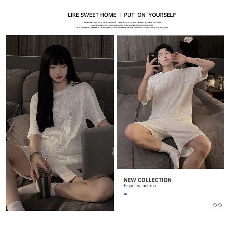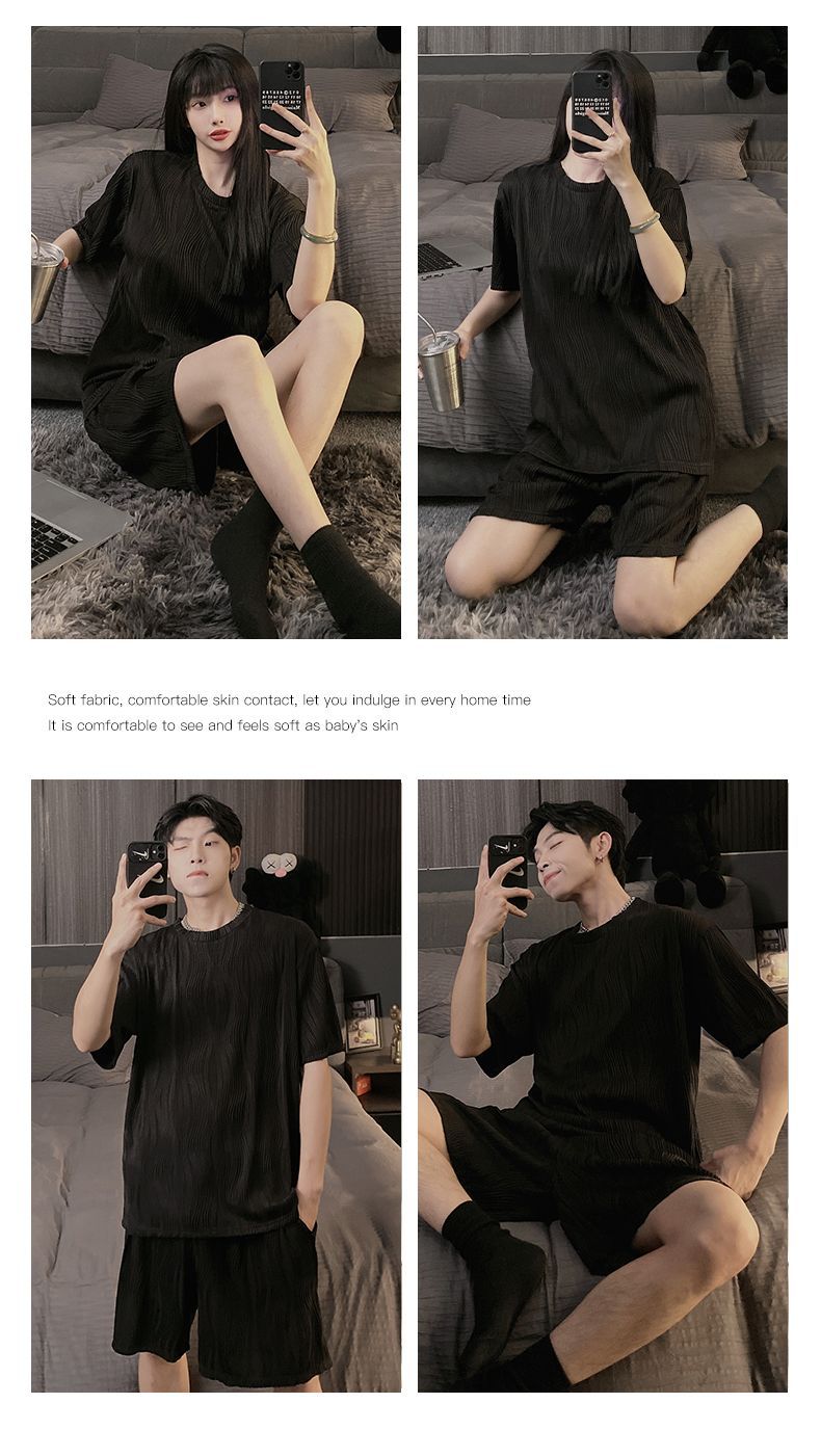 여름 반팔 반바지 파자마 커플 남녀 자카드 줄무늬 캐주얼 홈 느슨한 인터넷 연예인 라이브 홈 의류스토어 가기