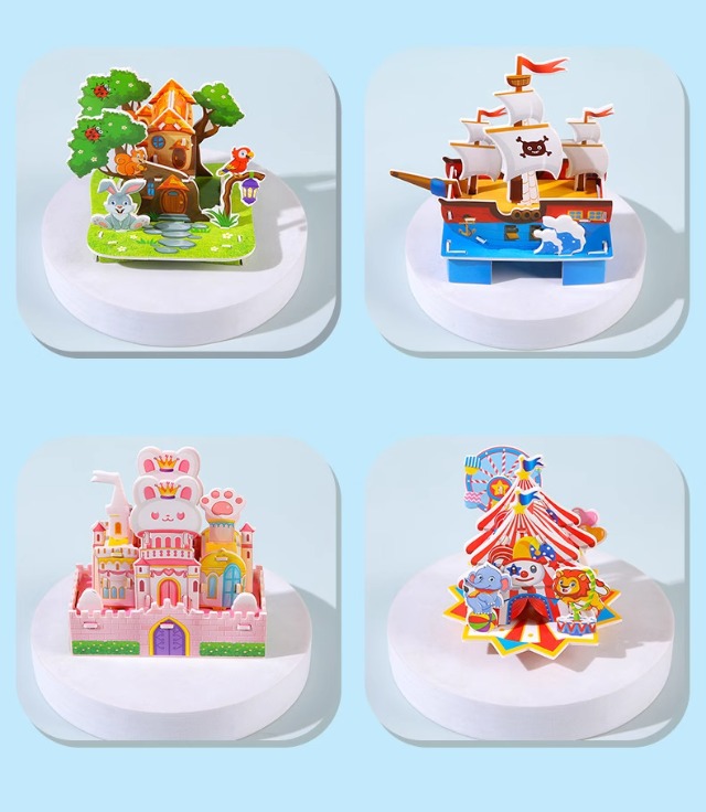 어린이 3D 입체 퍼즐 집 블록 퍼즐 DIY 수제 작은 집 교육용 장난감 국경일 학생 선물스토어 가기