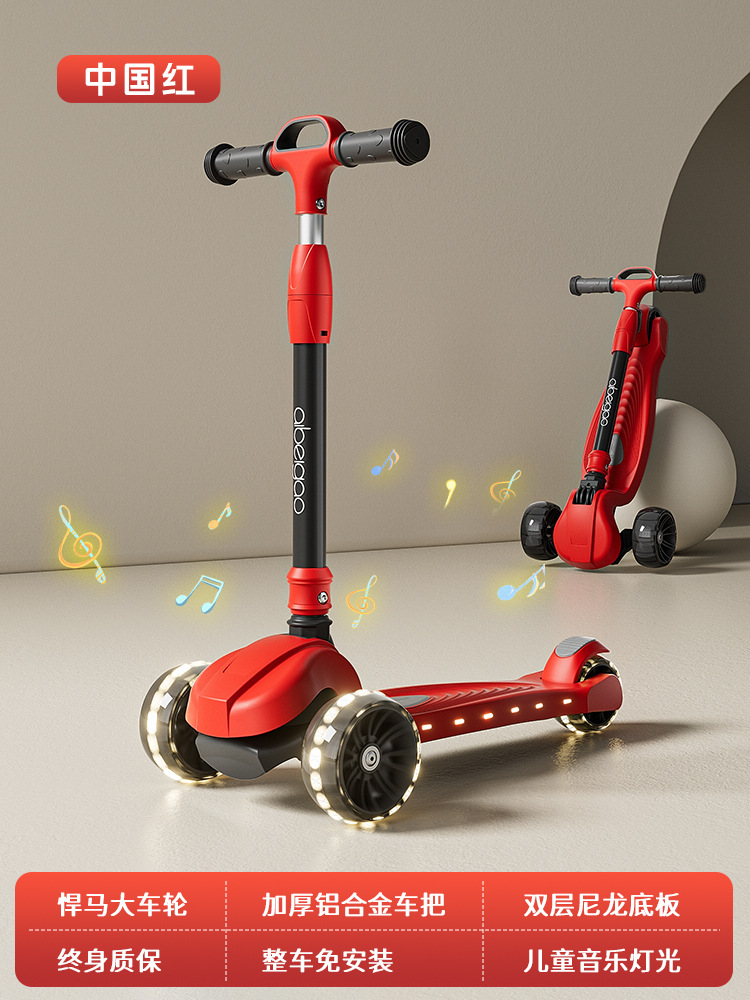 • [차이나 레드] 5CM 허머 플래시 휠 + 뮤직 마키 + 더블 레이어 나일론 플레이트 + 알루미늄 합금 핸들바