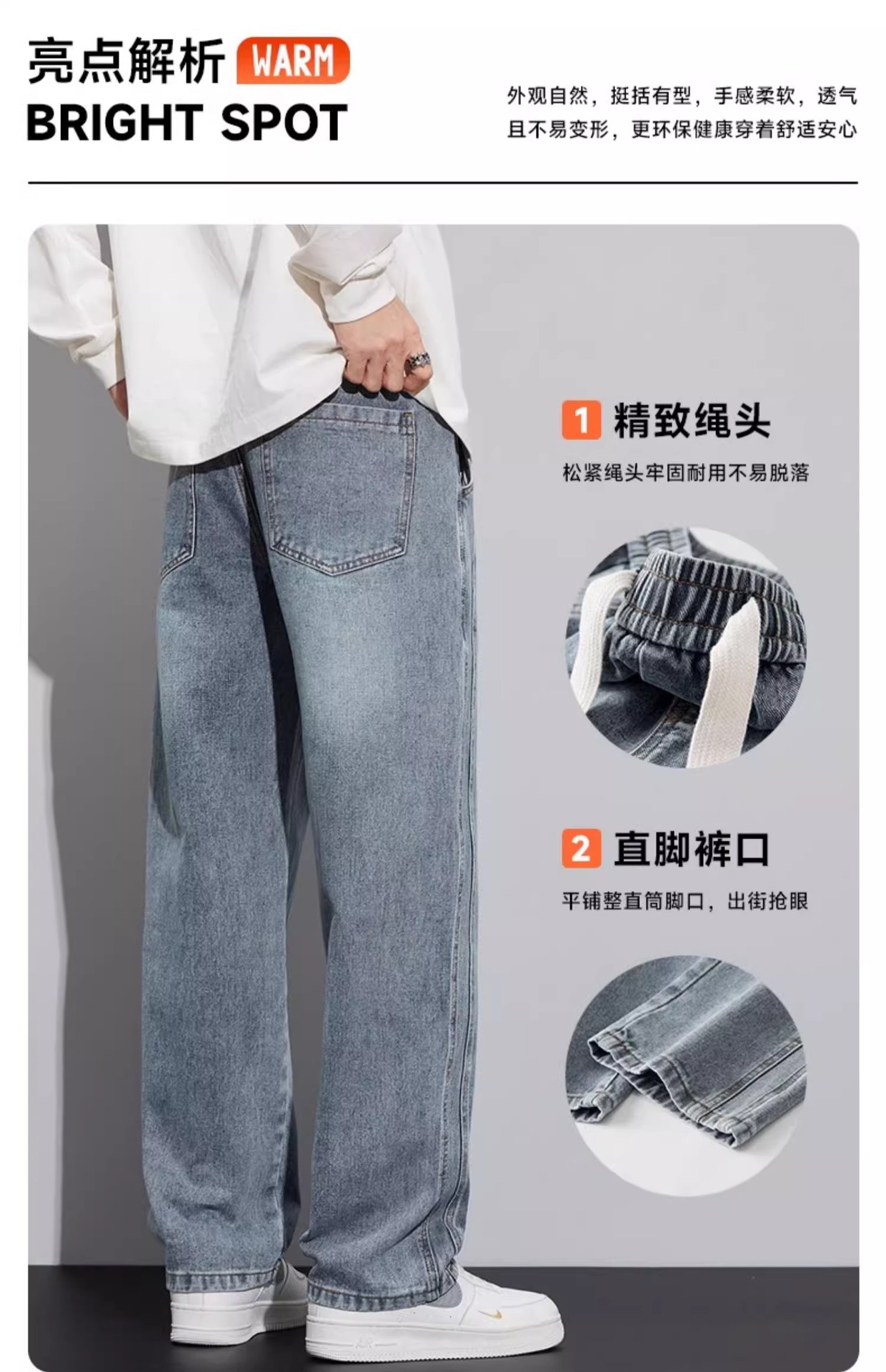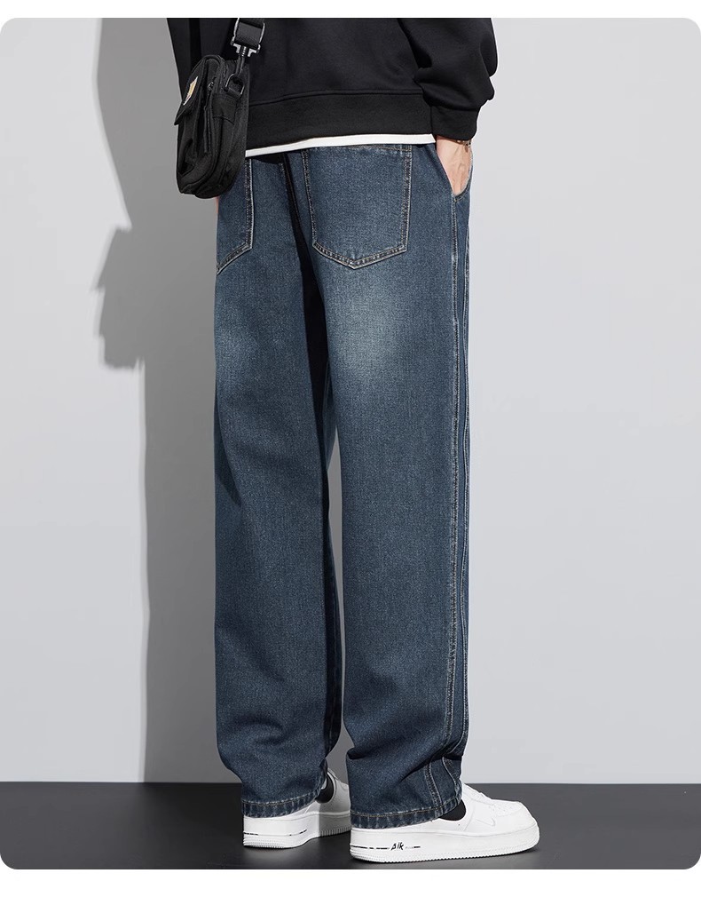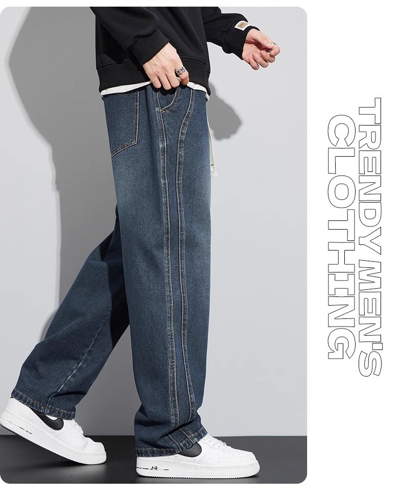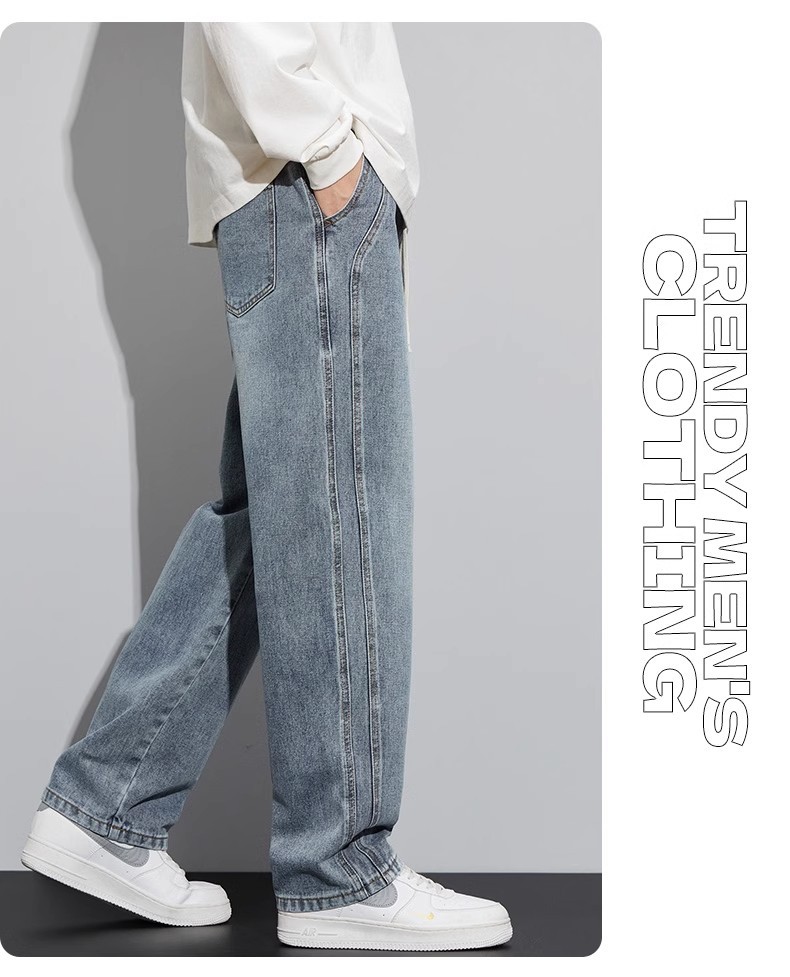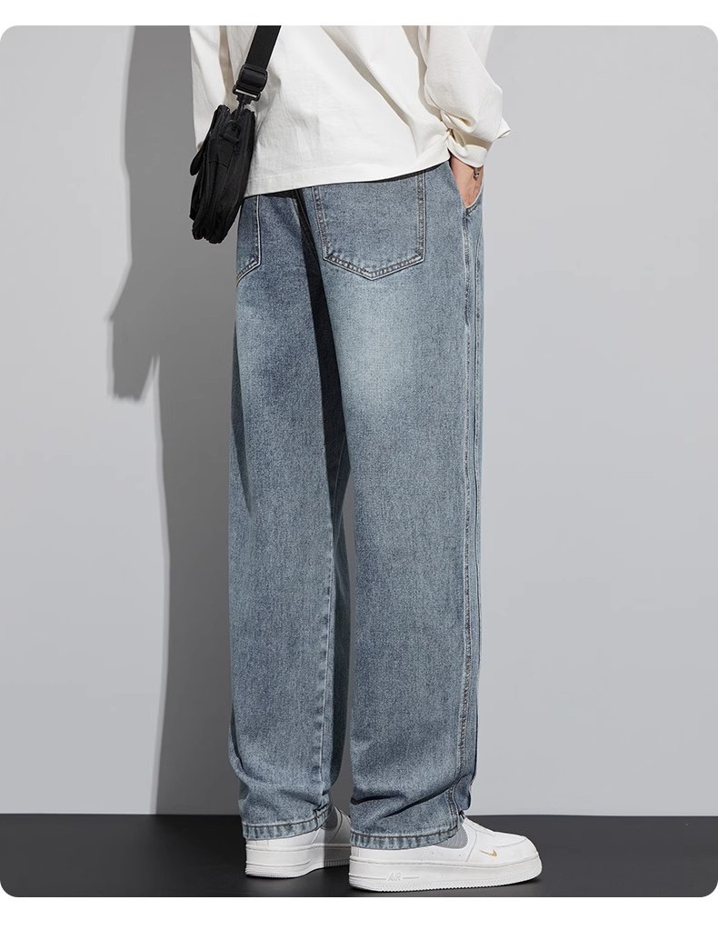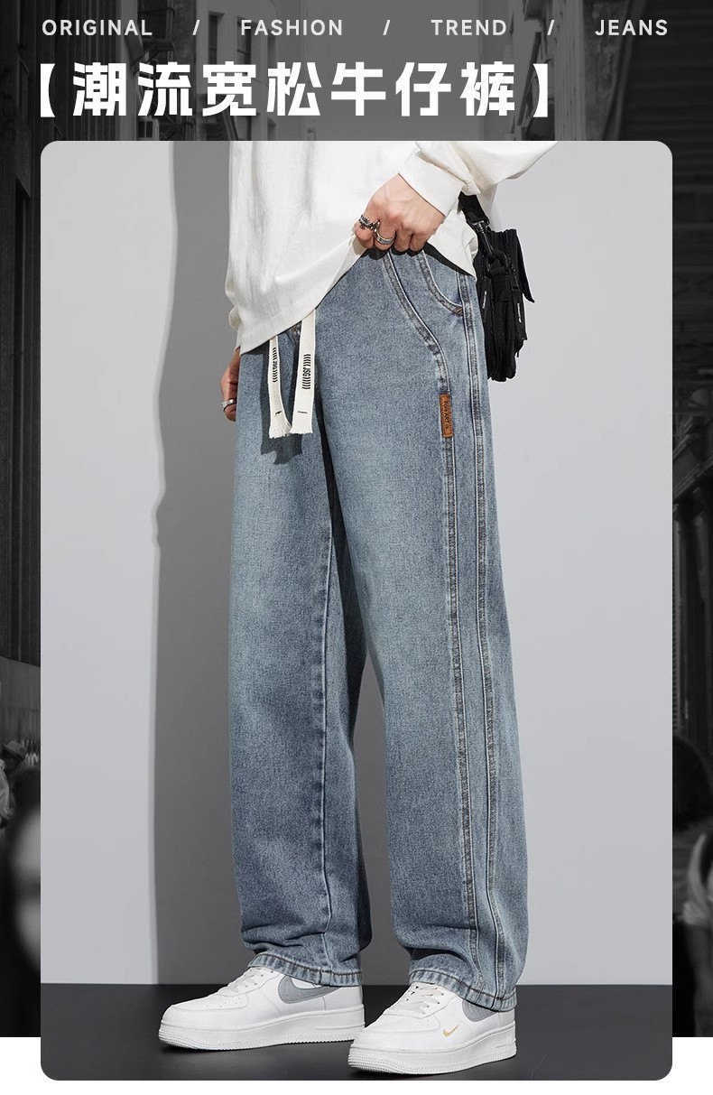 여름 루즈 스트레이트 청바지 남자 2025 남자 아메리칸 스타일 하이 스트리트 작업복 와이드 레그 캐주얼 바지 남성 신제품스토어 가기