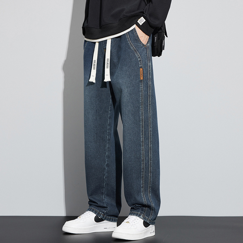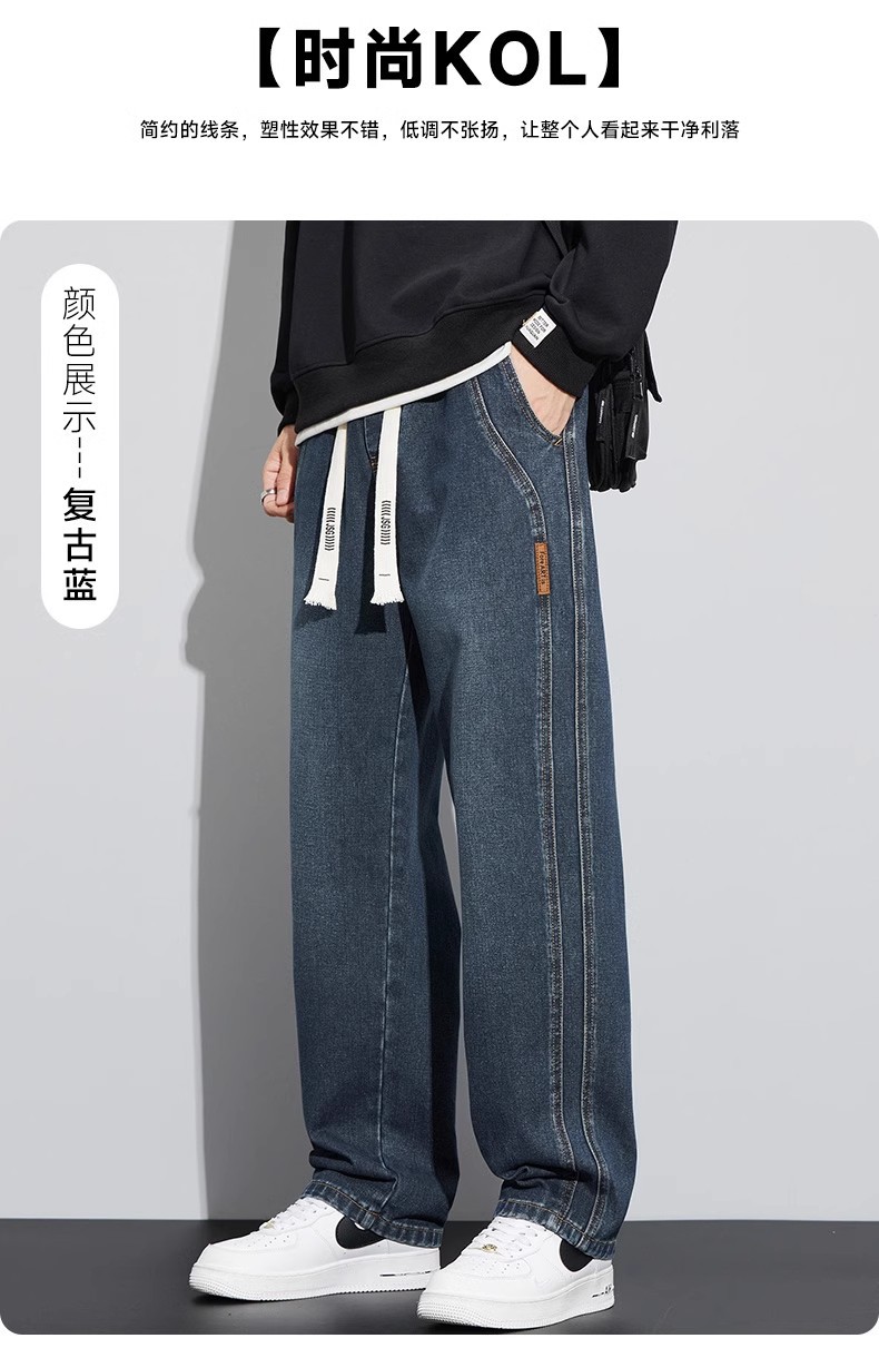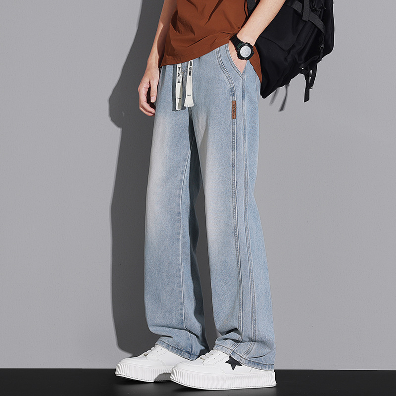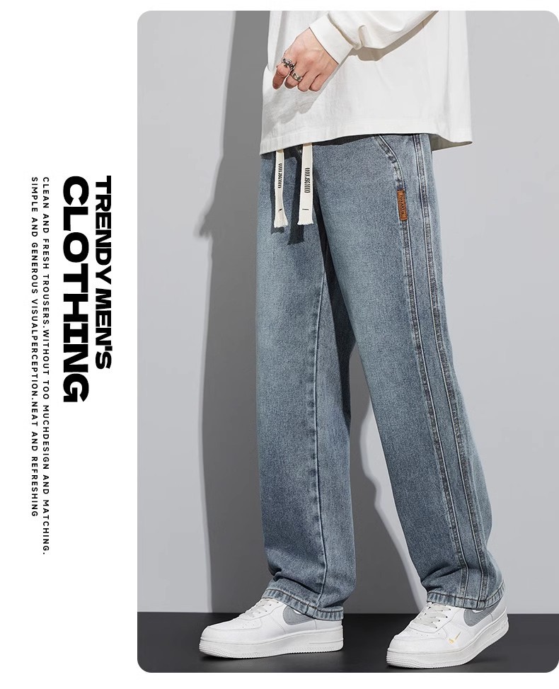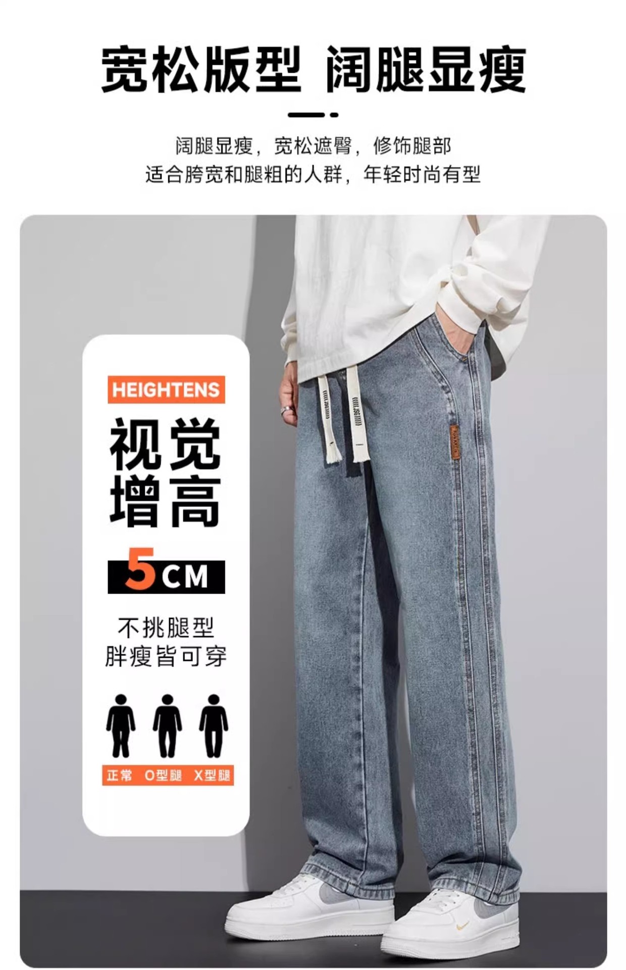 여름 루즈 스트레이트 청바지 남자 2025 남자 아메리칸 스타일 하이 스트리트 작업복 와이드 레그 캐주얼 바지 남성 신제품스토어 가기
