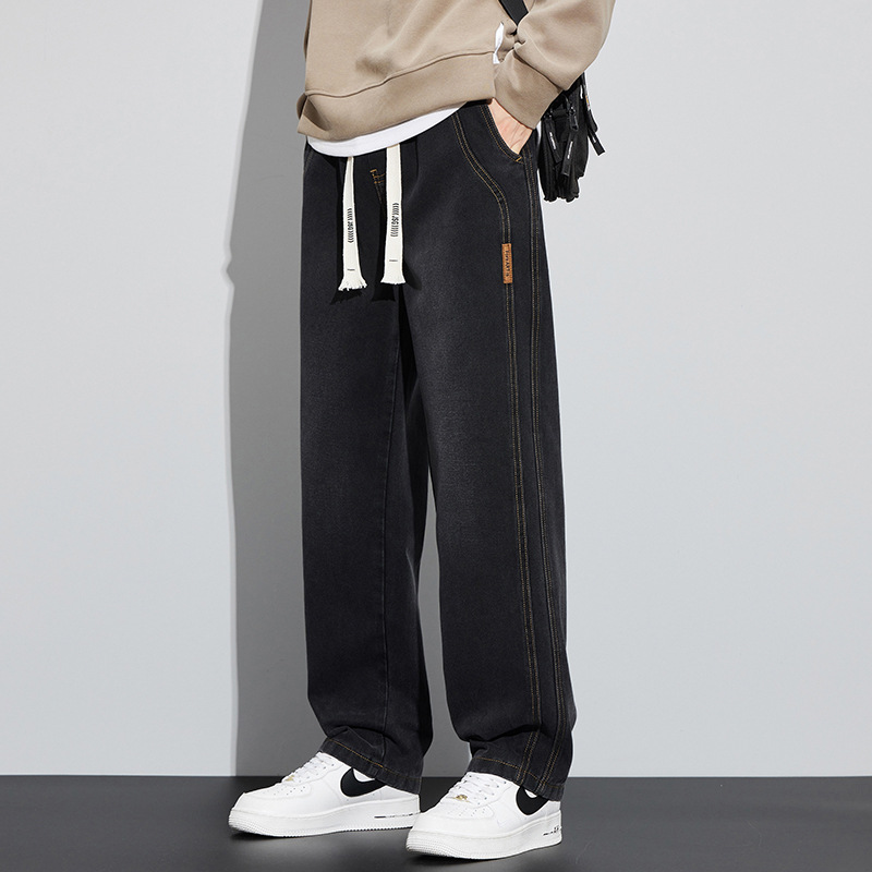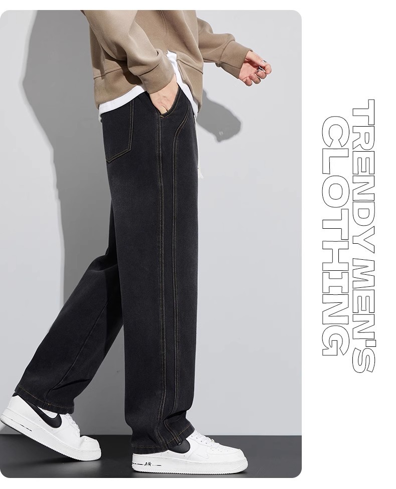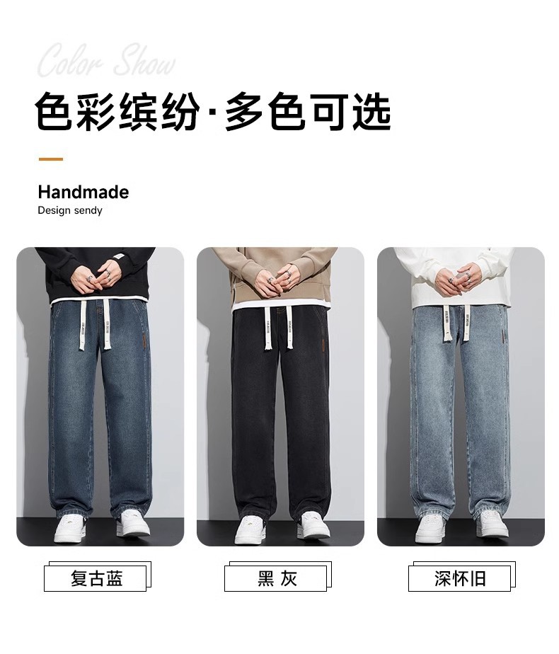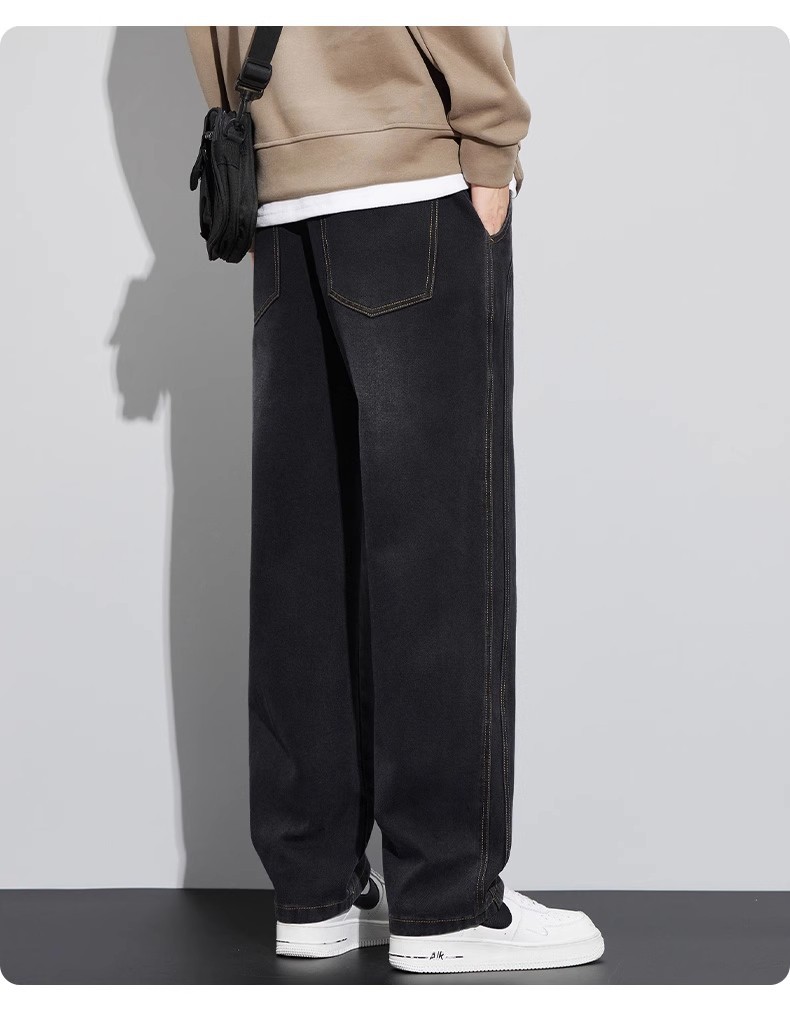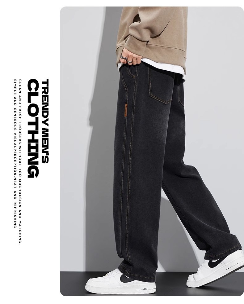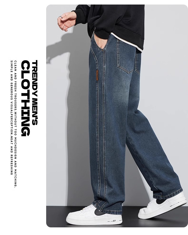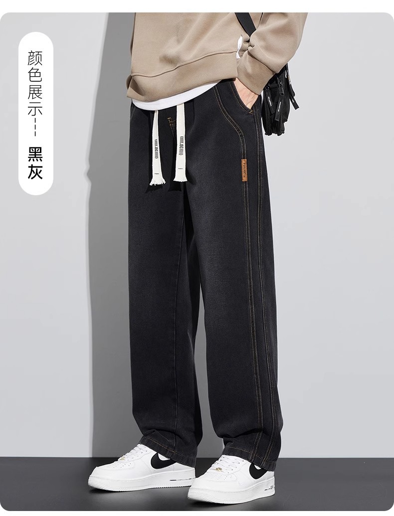 여름 루즈 스트레이트 청바지 남자 2025 남자 아메리칸 스타일 하이 스트리트 작업복 와이드 레그 캐주얼 바지 남성 신제품스토어 가기