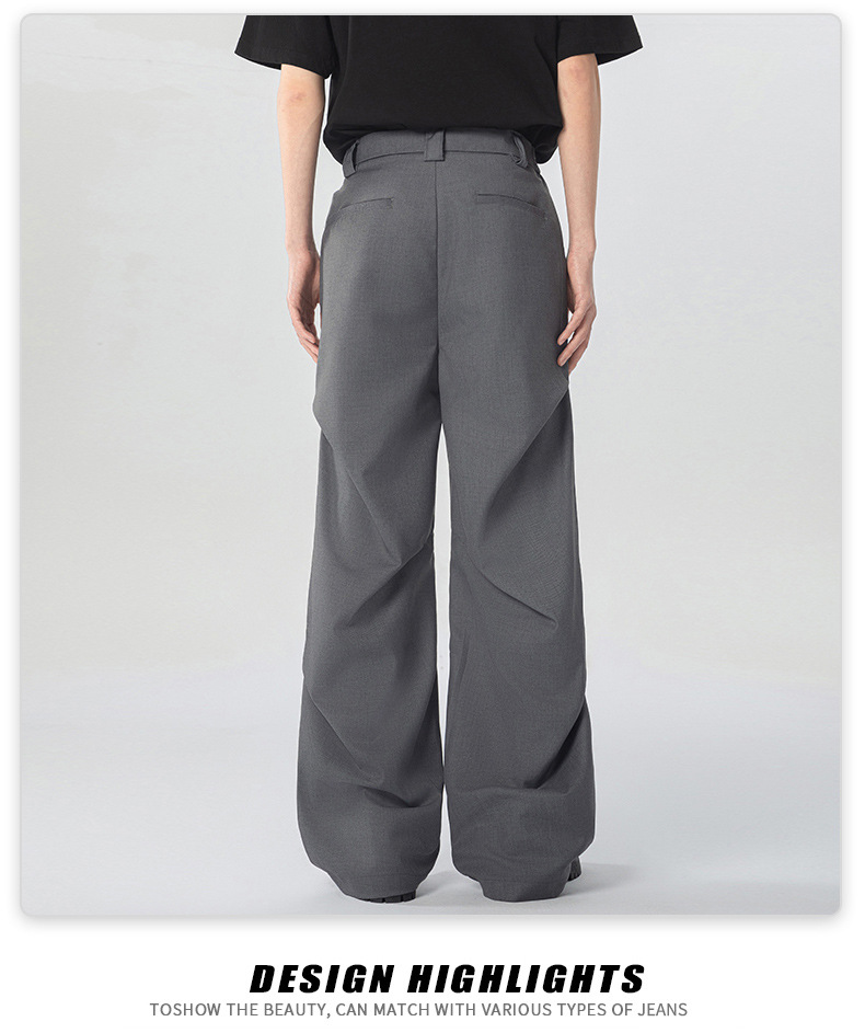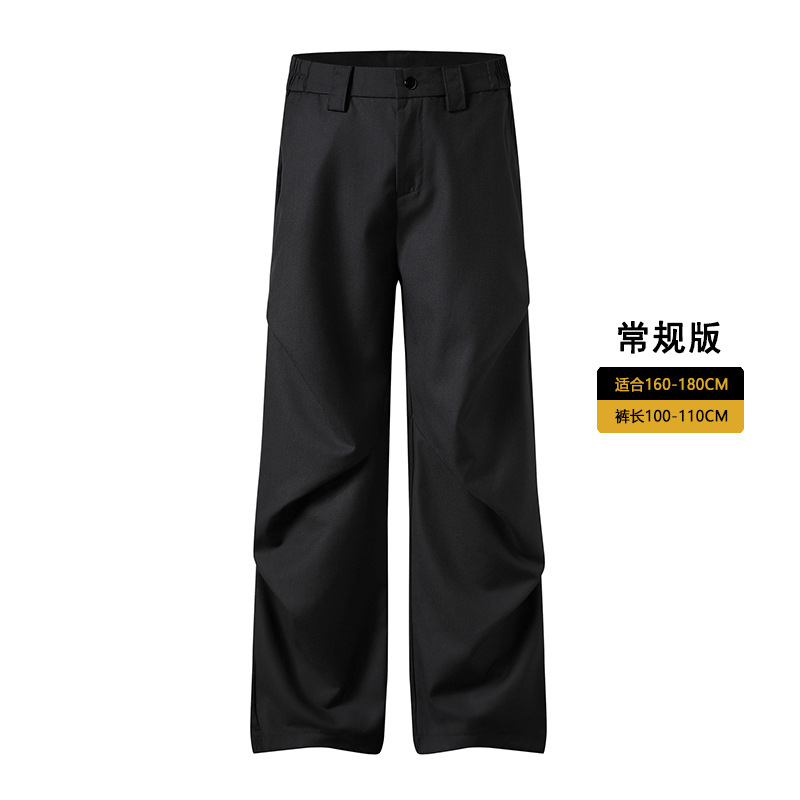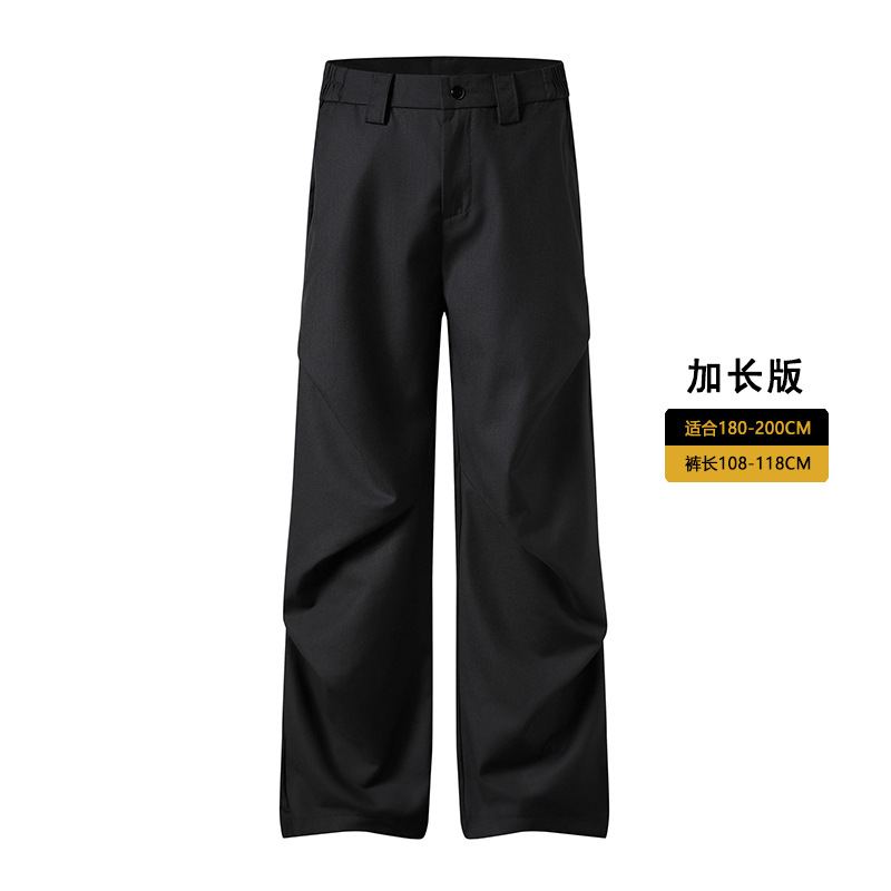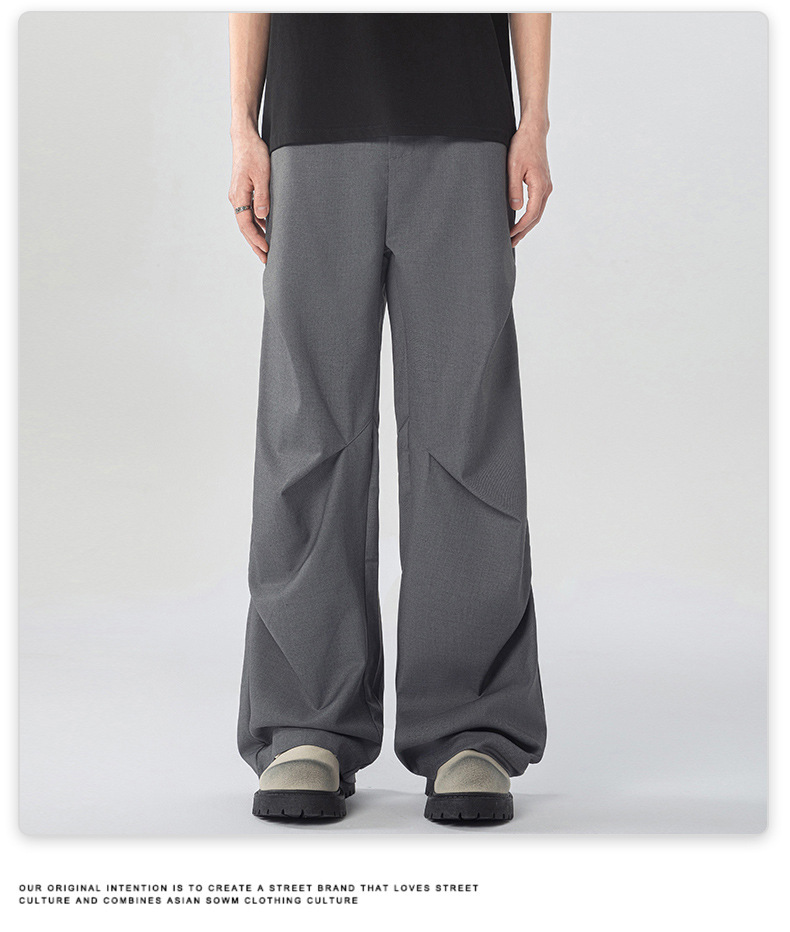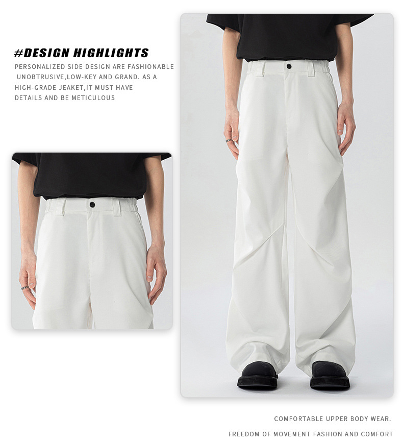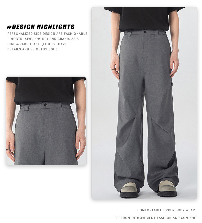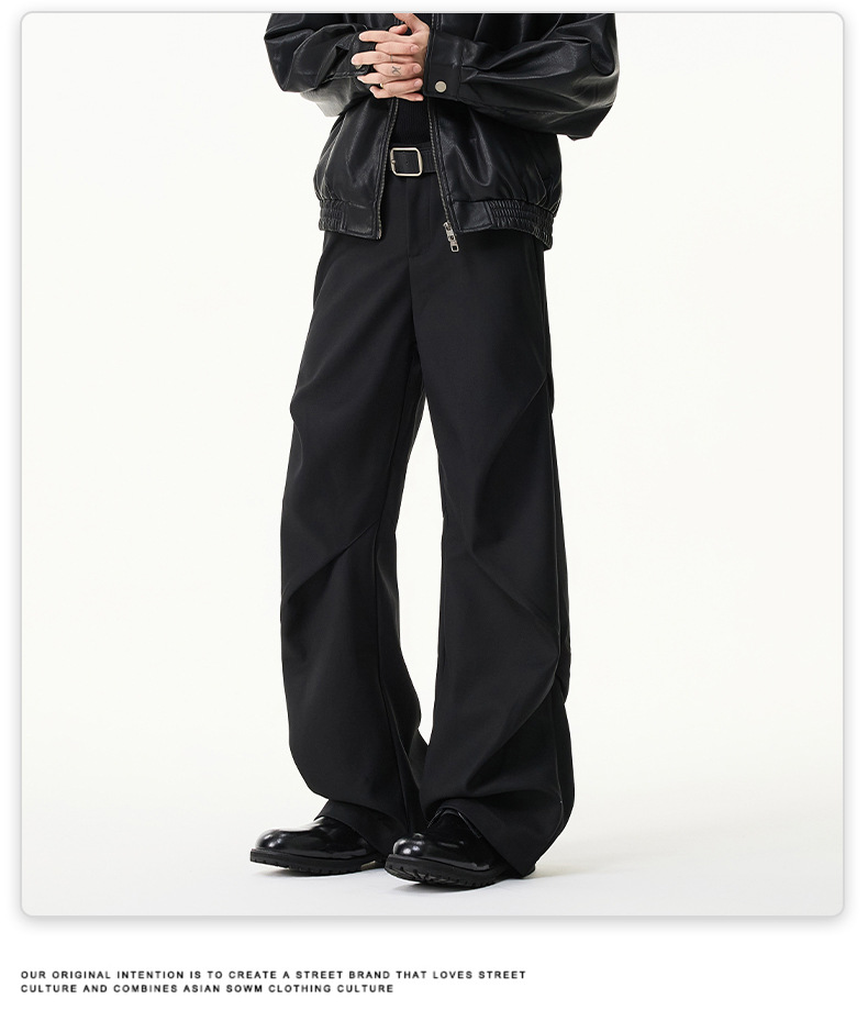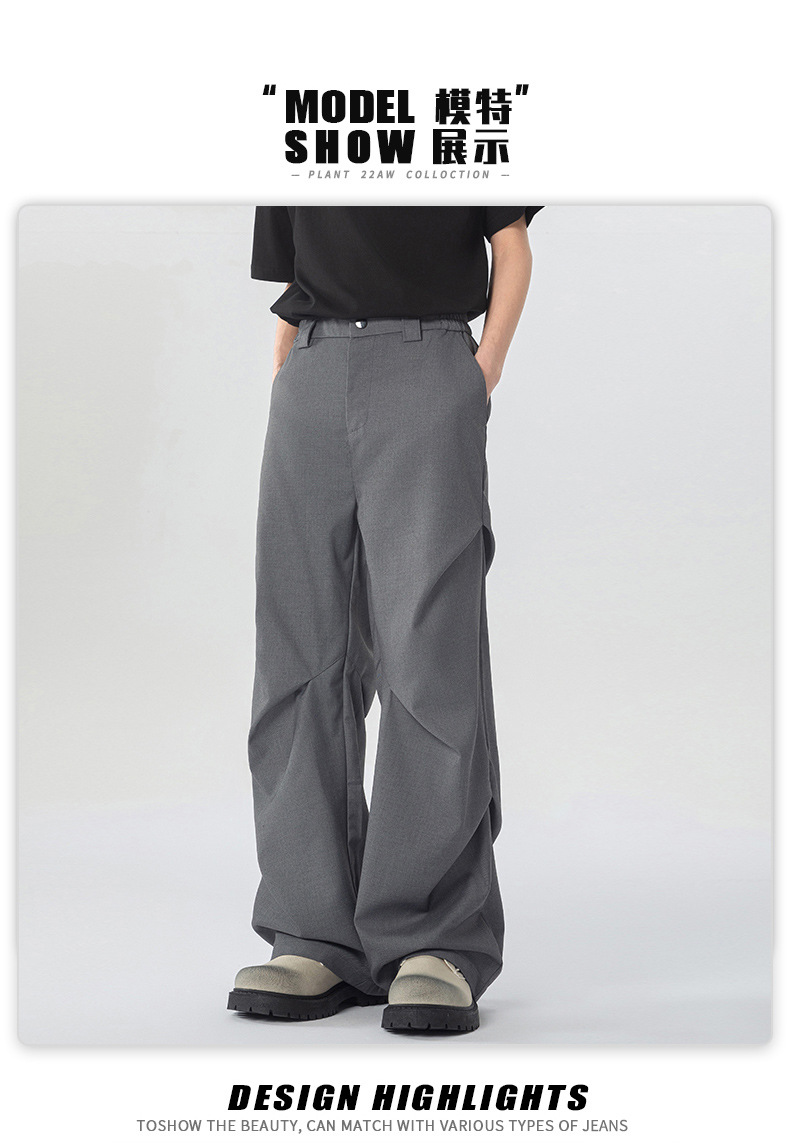 무위안 남성복 2026 봄/여름 클린핏 플리츠 마이크로 플레어 팬츠 남성 키높이 캐주얼 루즈핏 와이드 팬츠