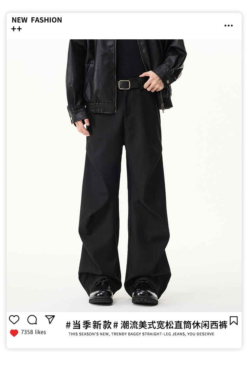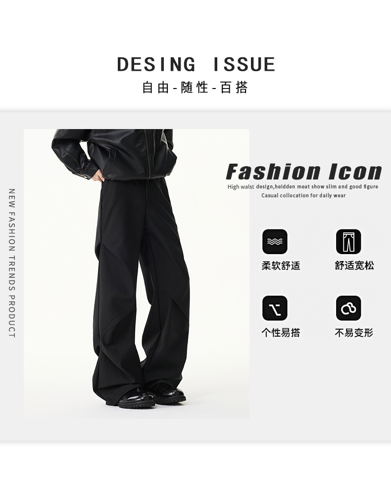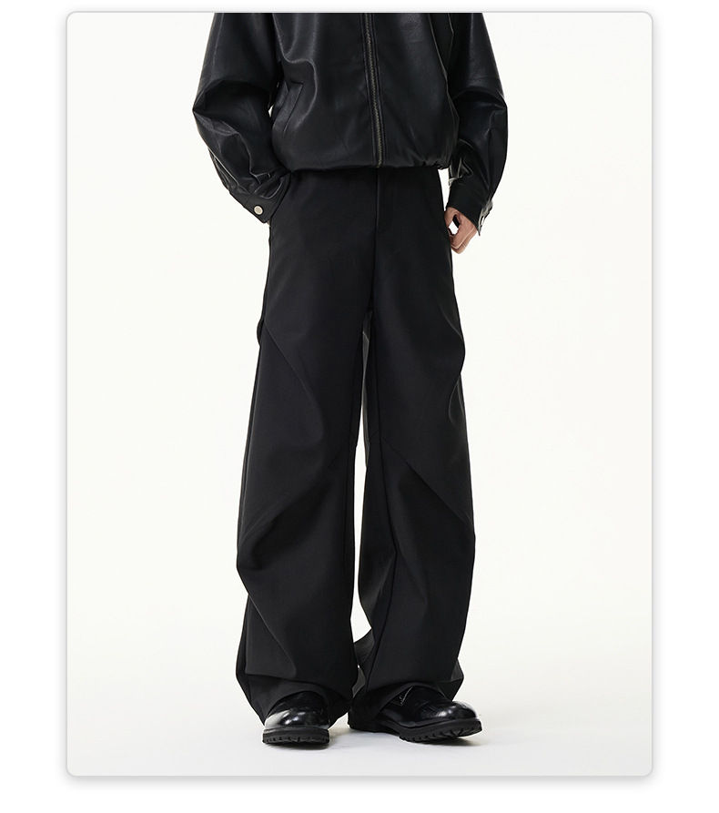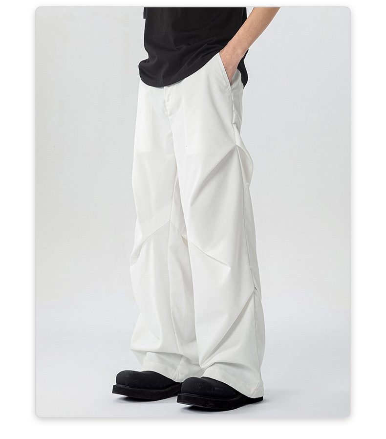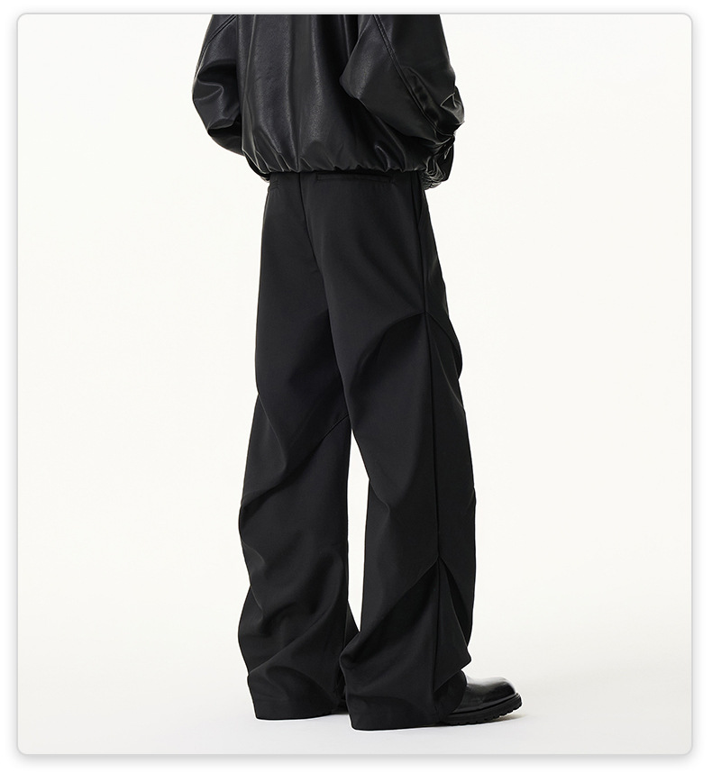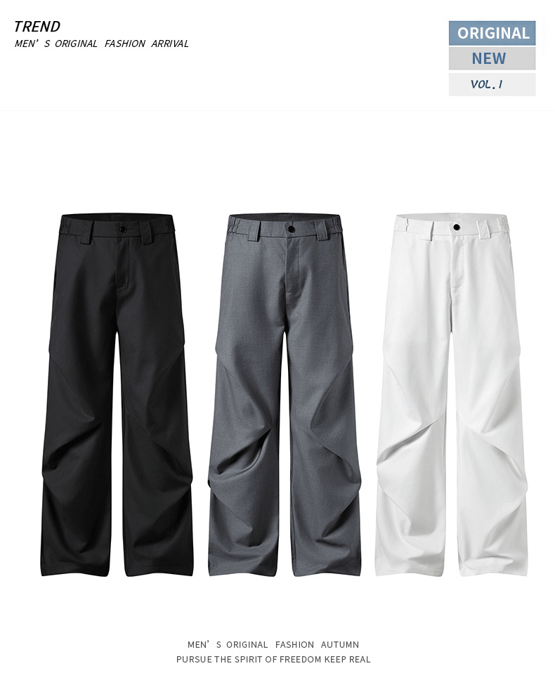 무위안 남성복 2026 봄/여름 클린핏 플리츠 마이크로 플레어 팬츠 남성 키높이 캐주얼 루즈핏 와이드 팬츠스토어 가기