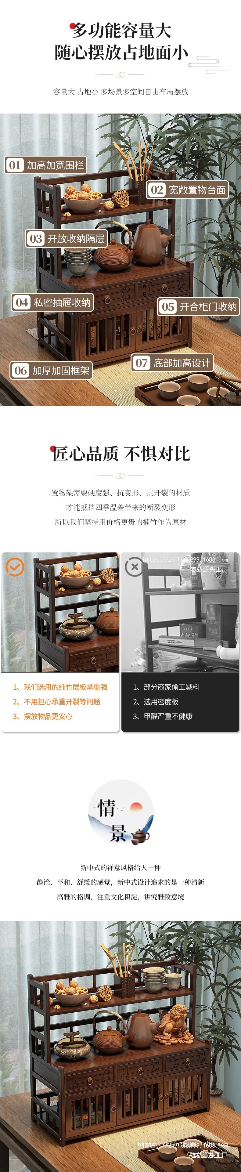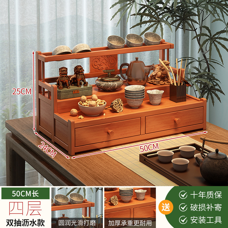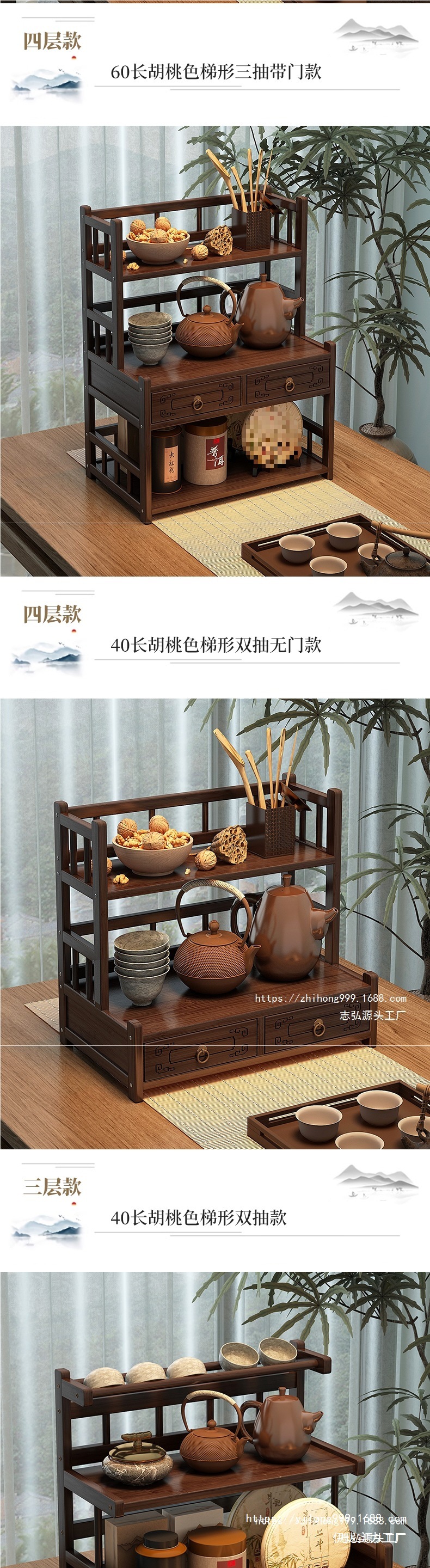 데스크탑 골동품 랙 작은 새로운 중국 차 세트 보라색 모래 냄비 저장 선반 장식품 테이블 차 배치 랙 저장 캐비닛스토어 가기
