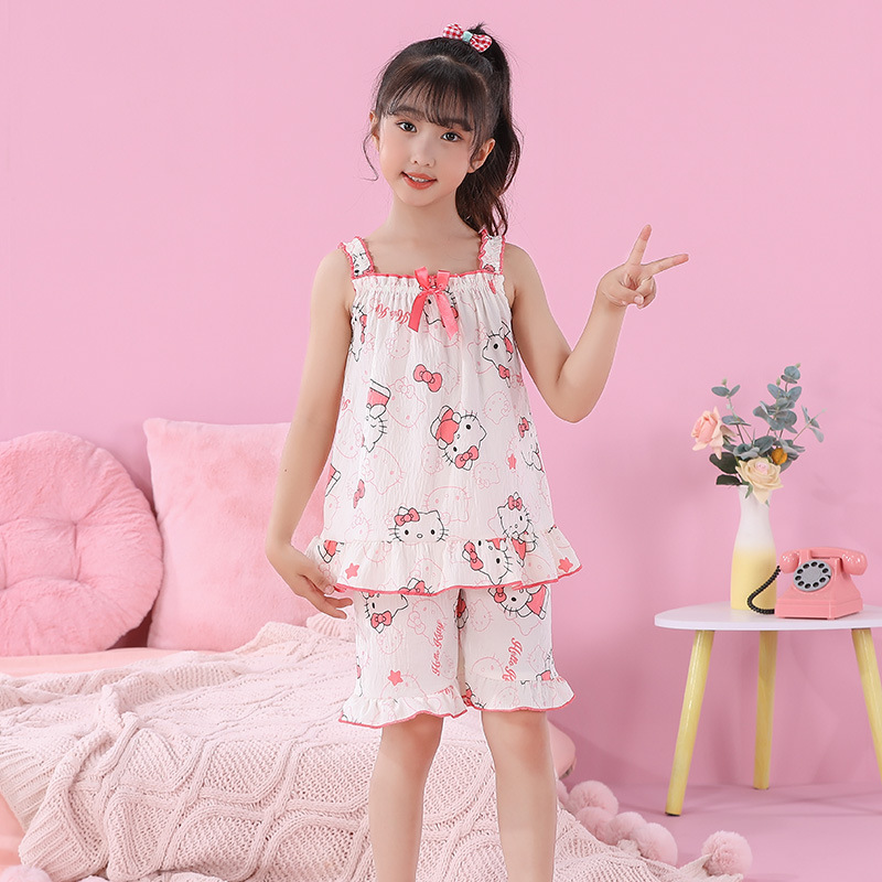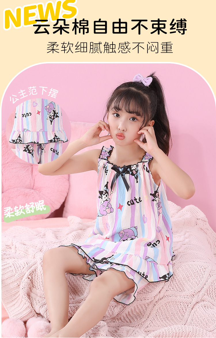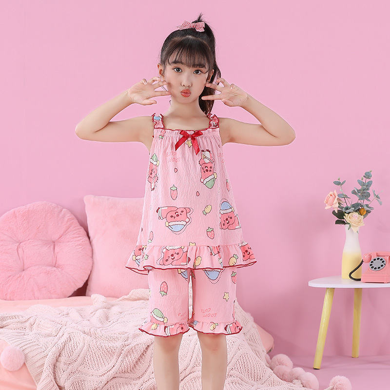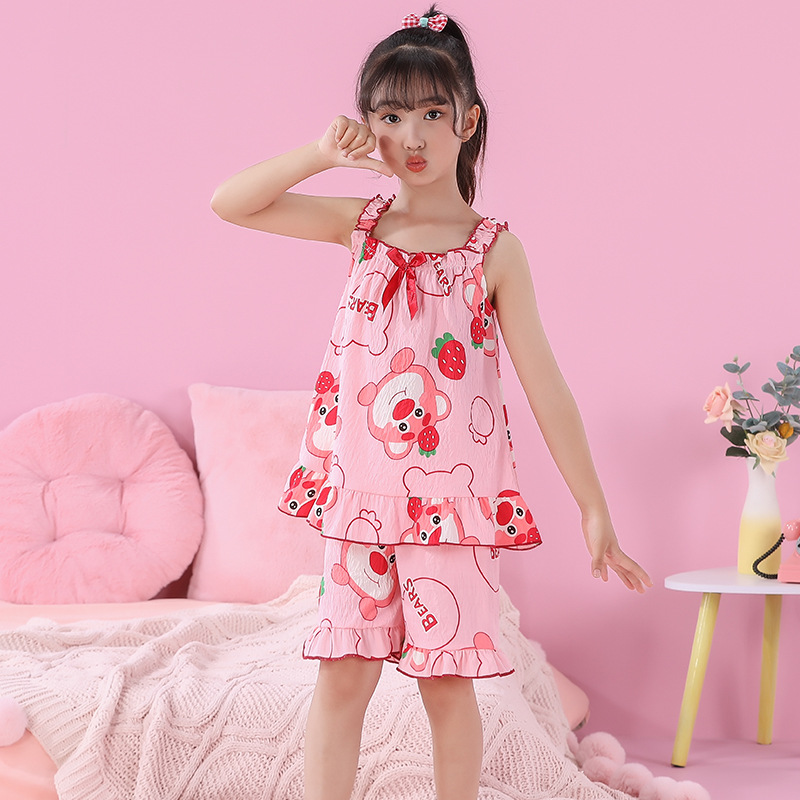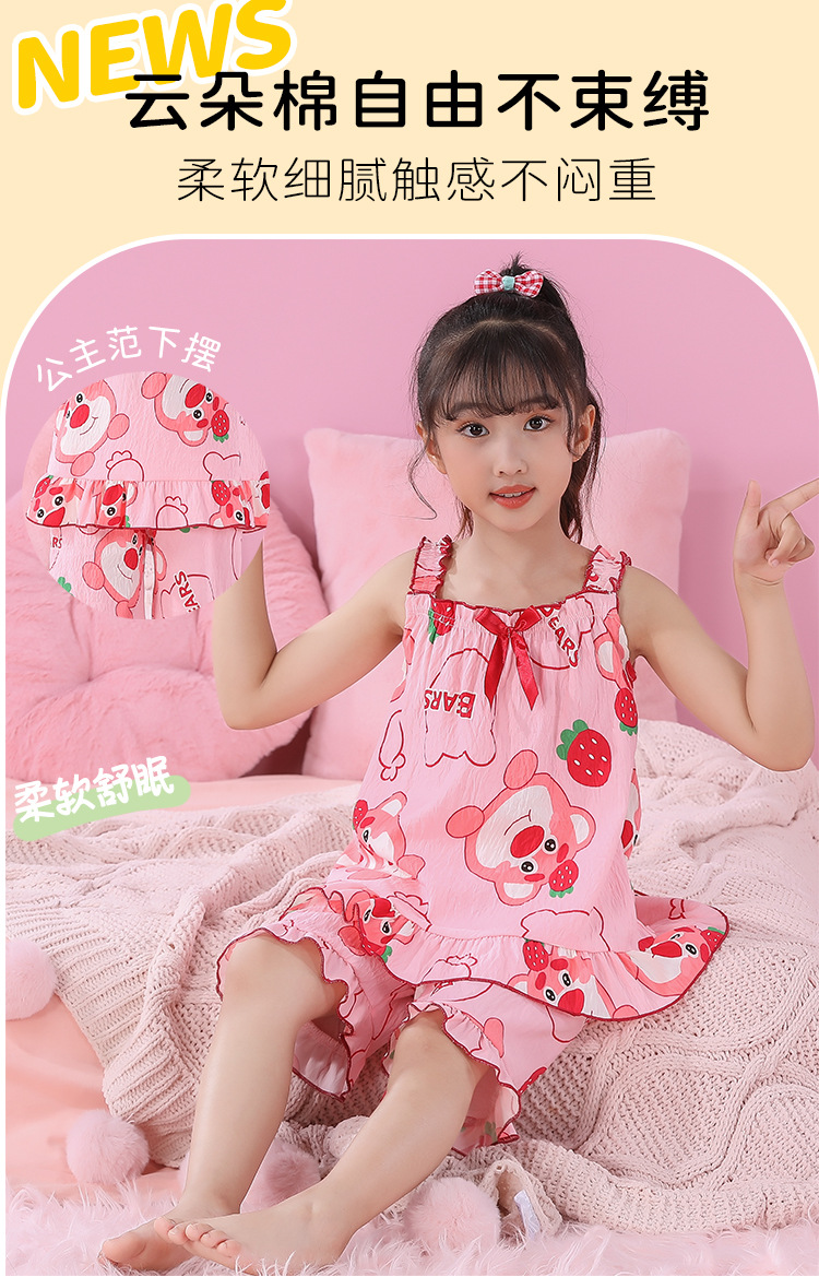 여름 조끼 슬링 잠옷 소녀 만화 달콤하고 귀여운 학생 홈웨어 세트 여성 클라우드 코튼 홈웨어스토어 가기